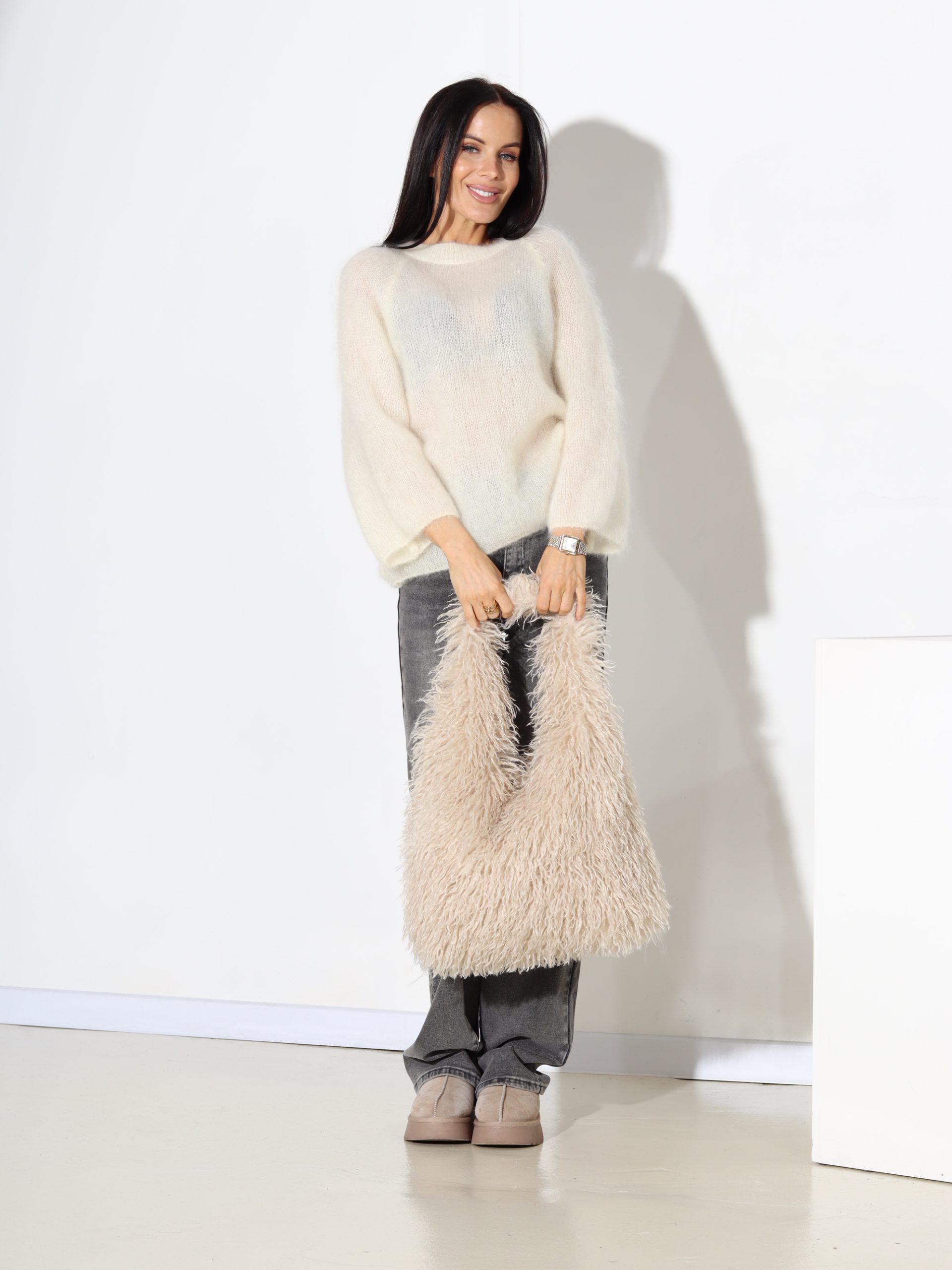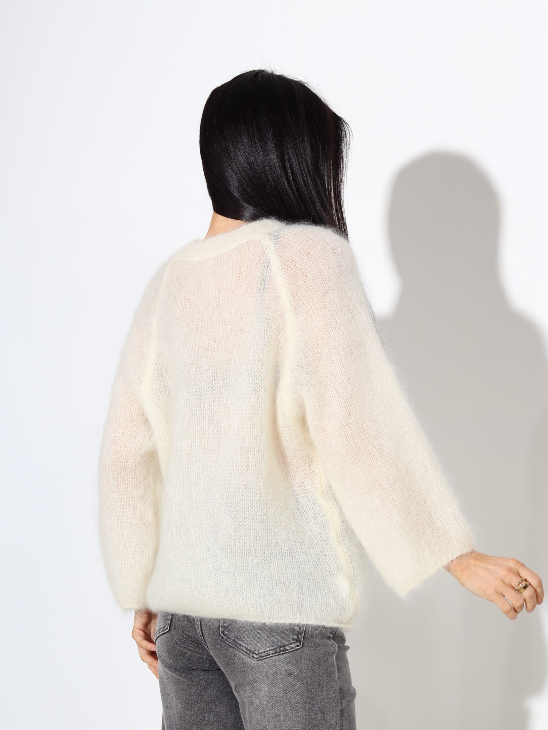 Balts mohēras džemperis ar slīpu plecu daļu – 17705