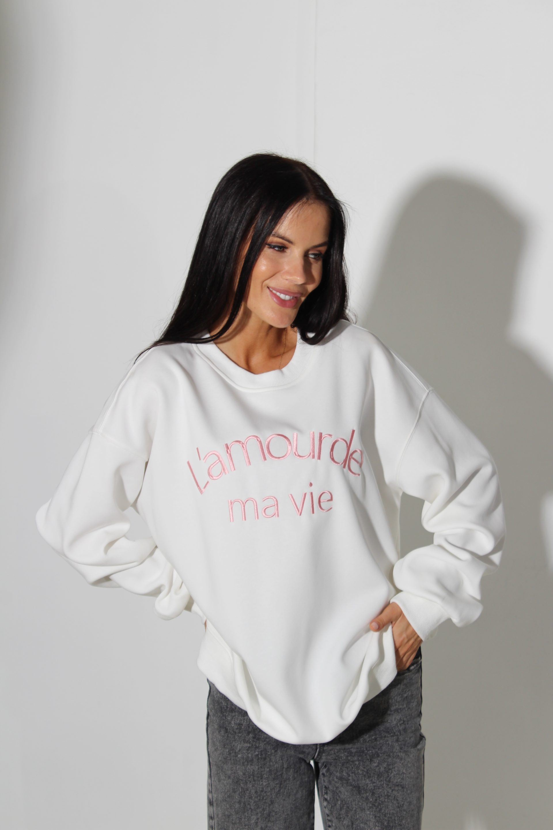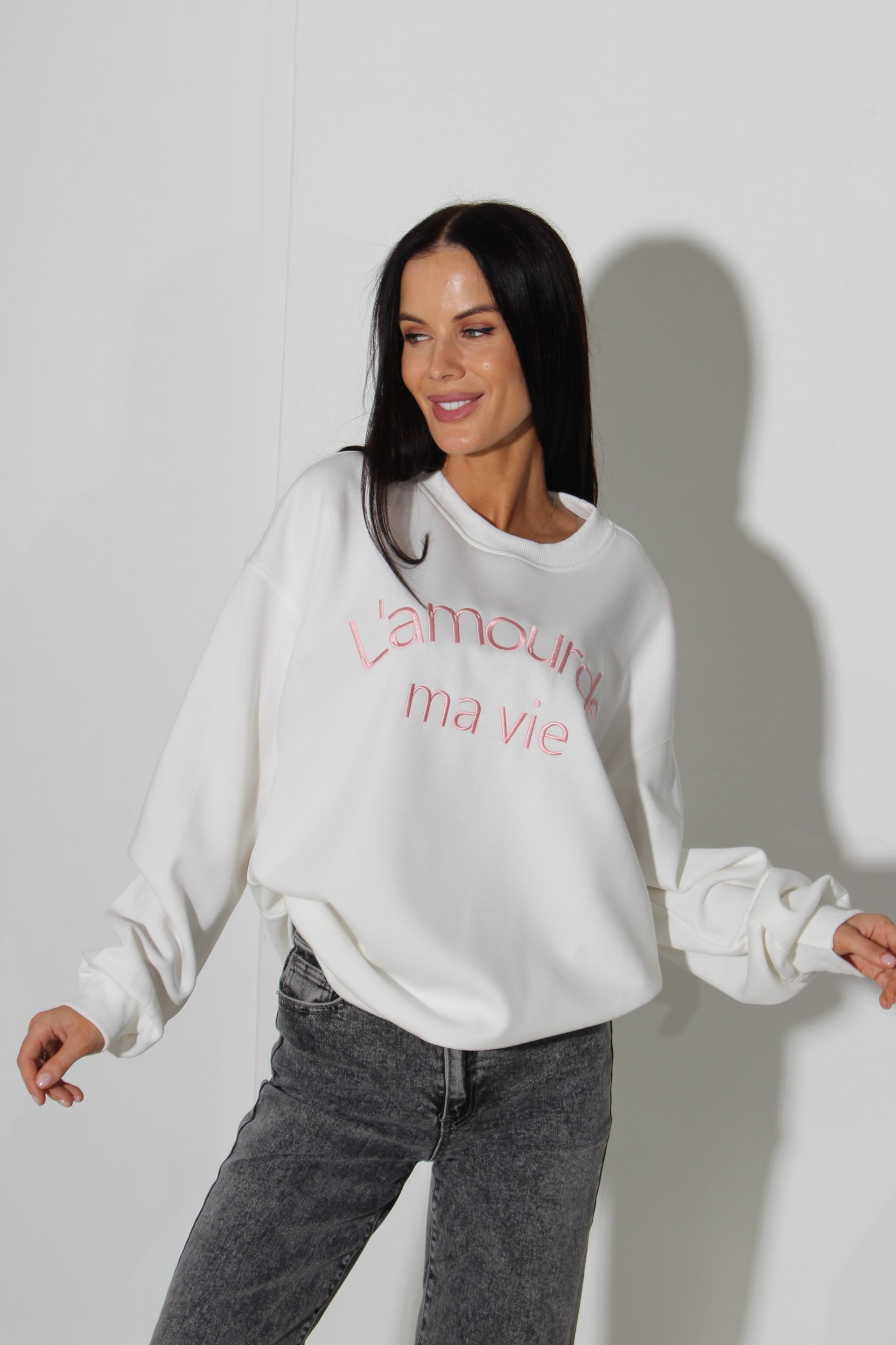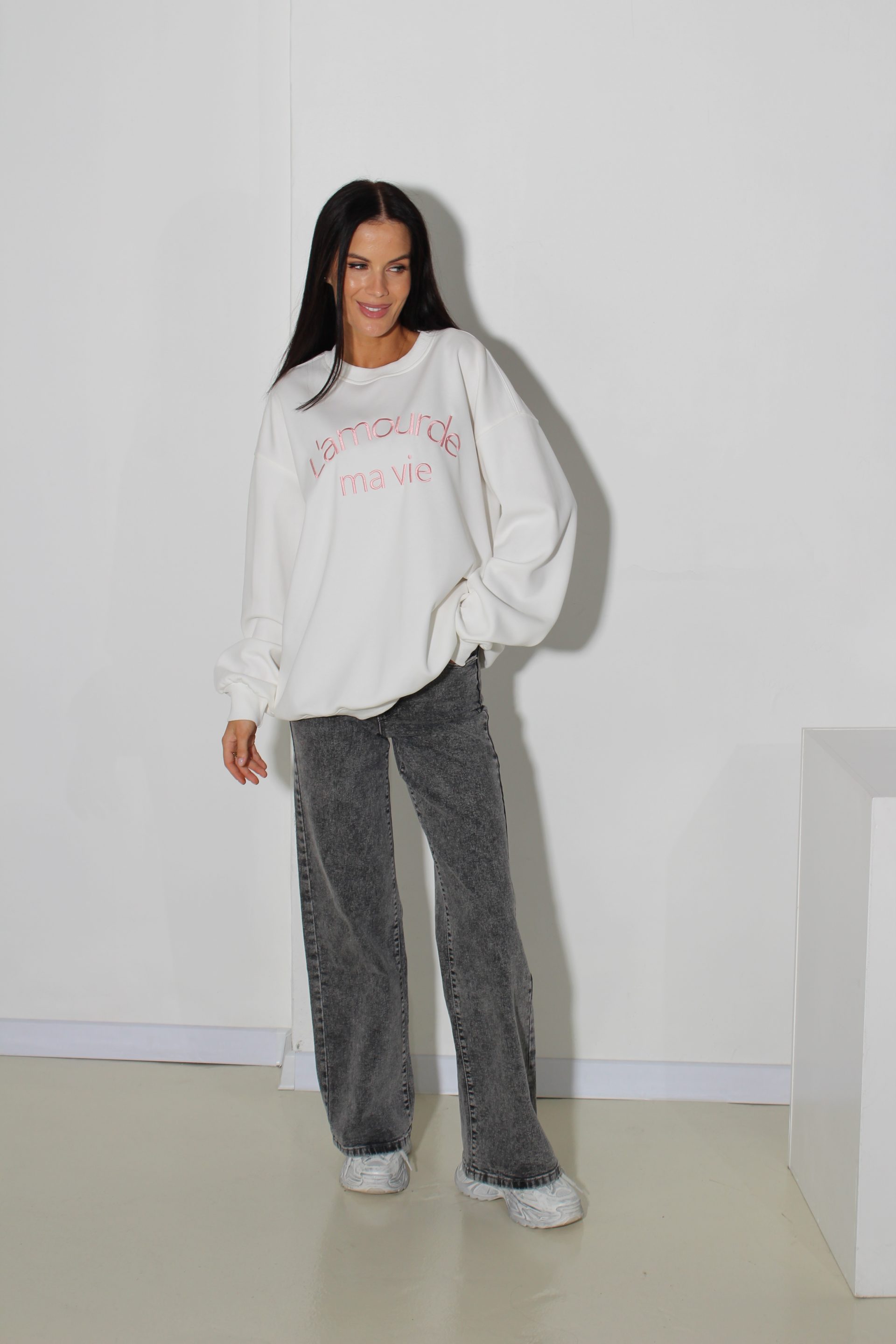 Balts oversize džemperis “L’amourde” – 16031
