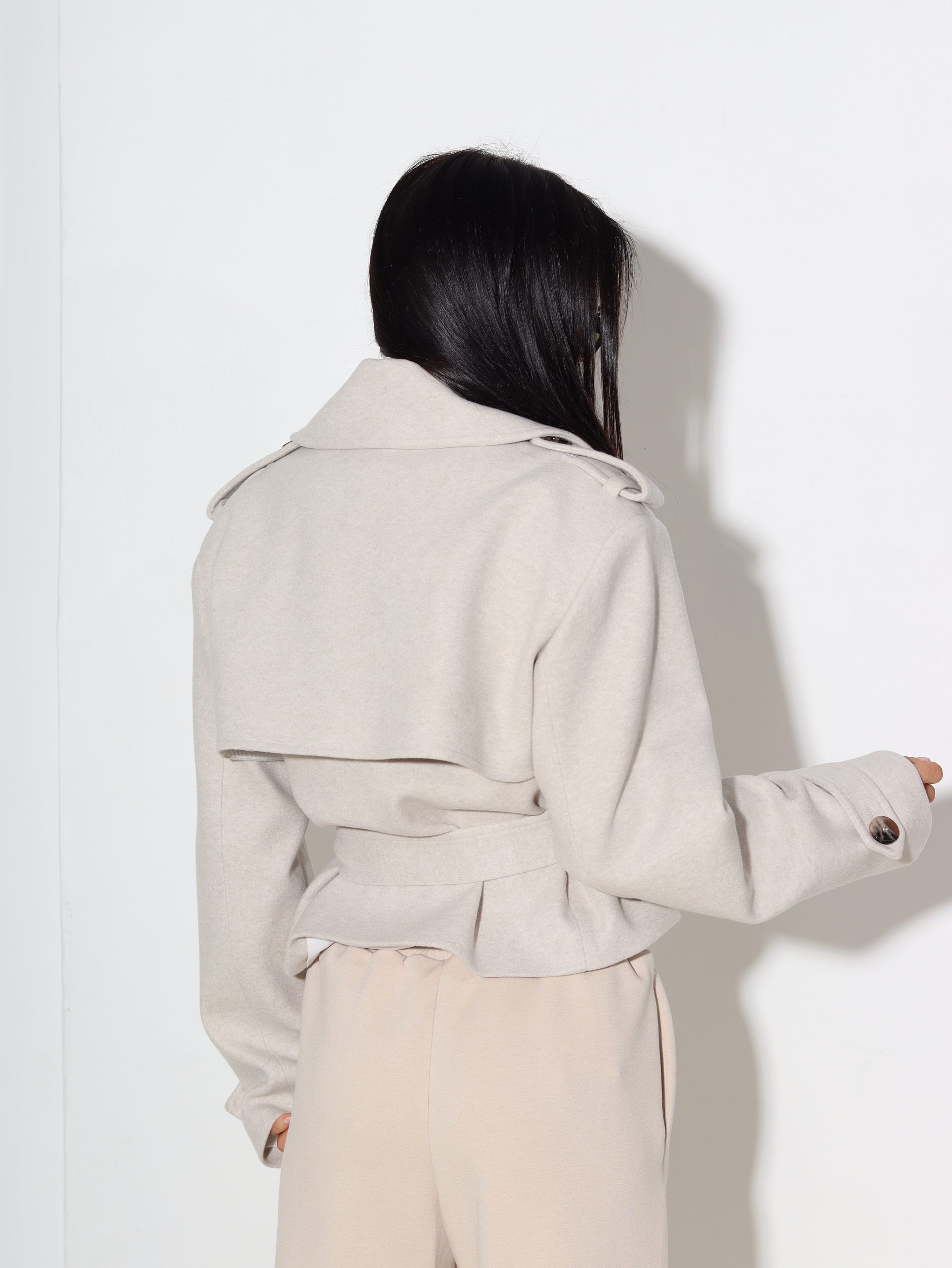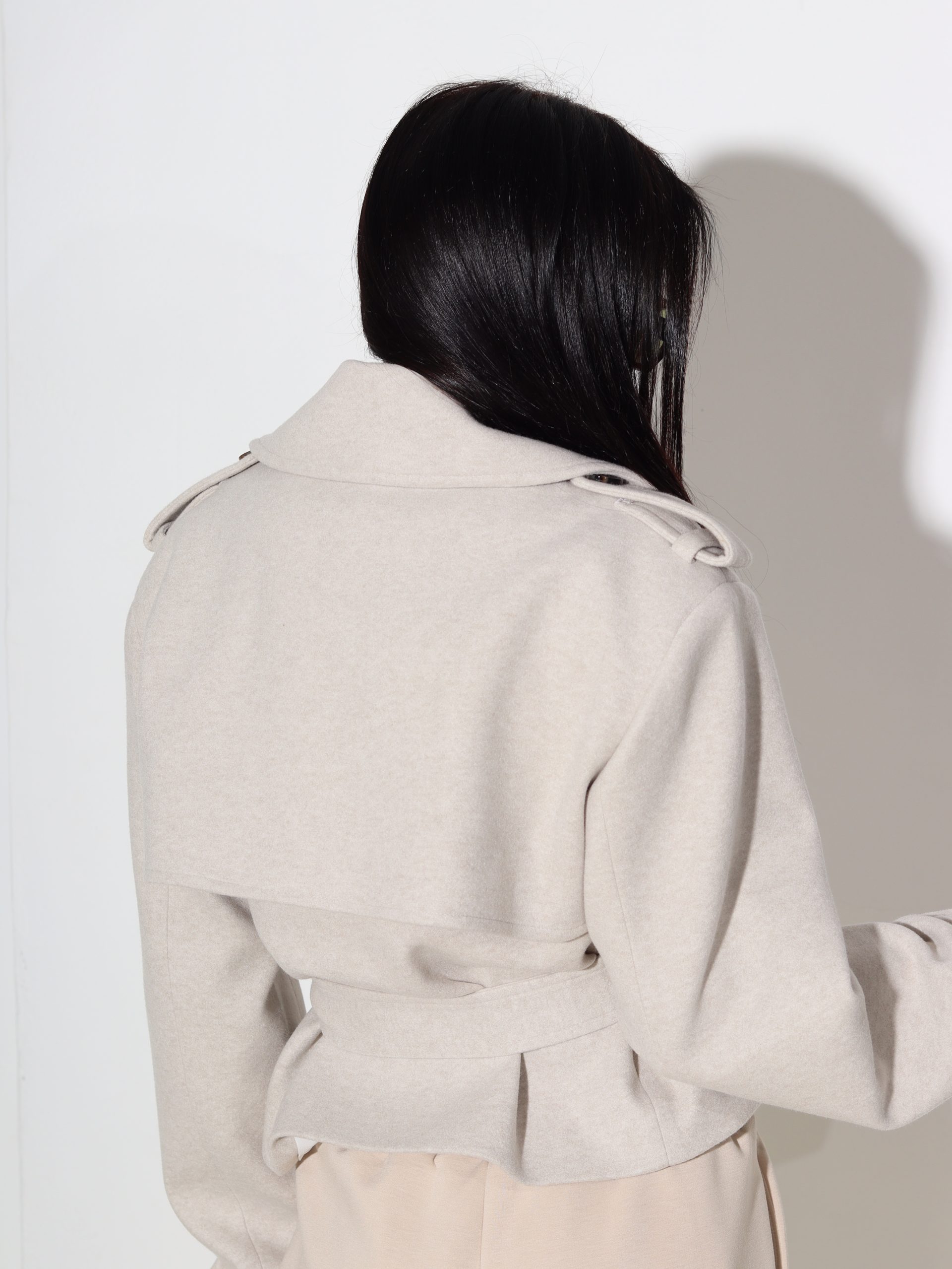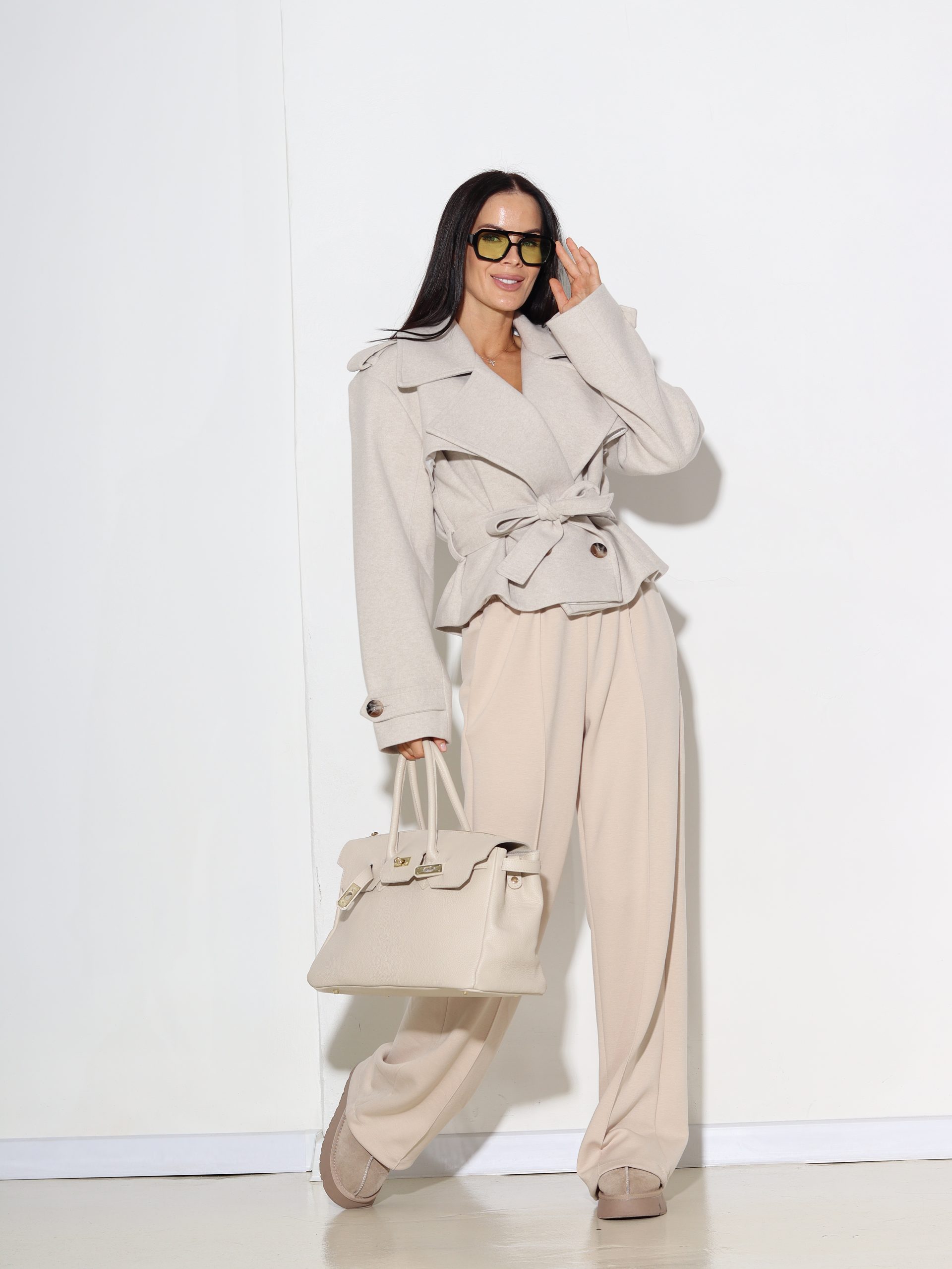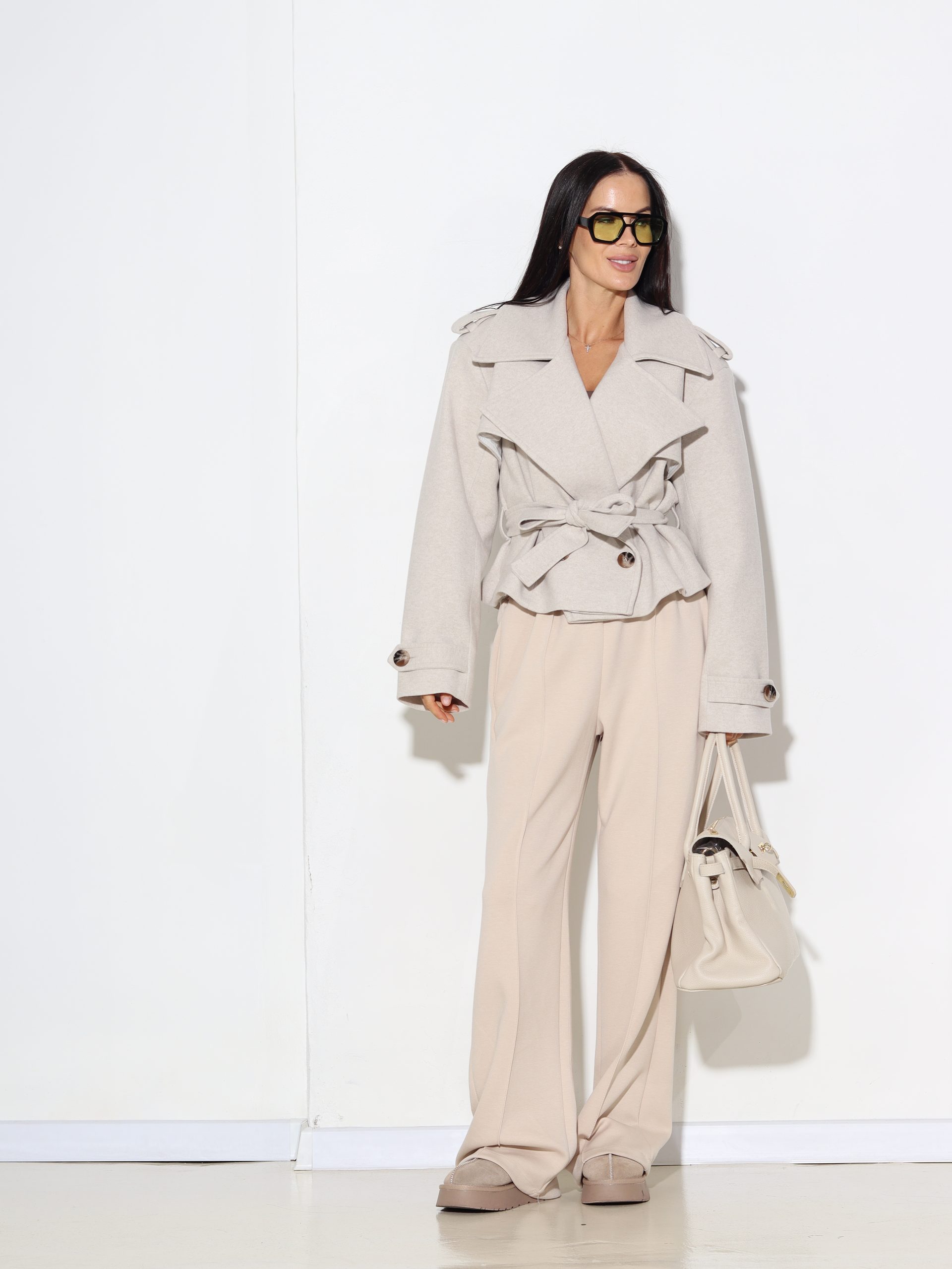 Bēša auduma virsjaka, īsa ar jostiņu – 16328