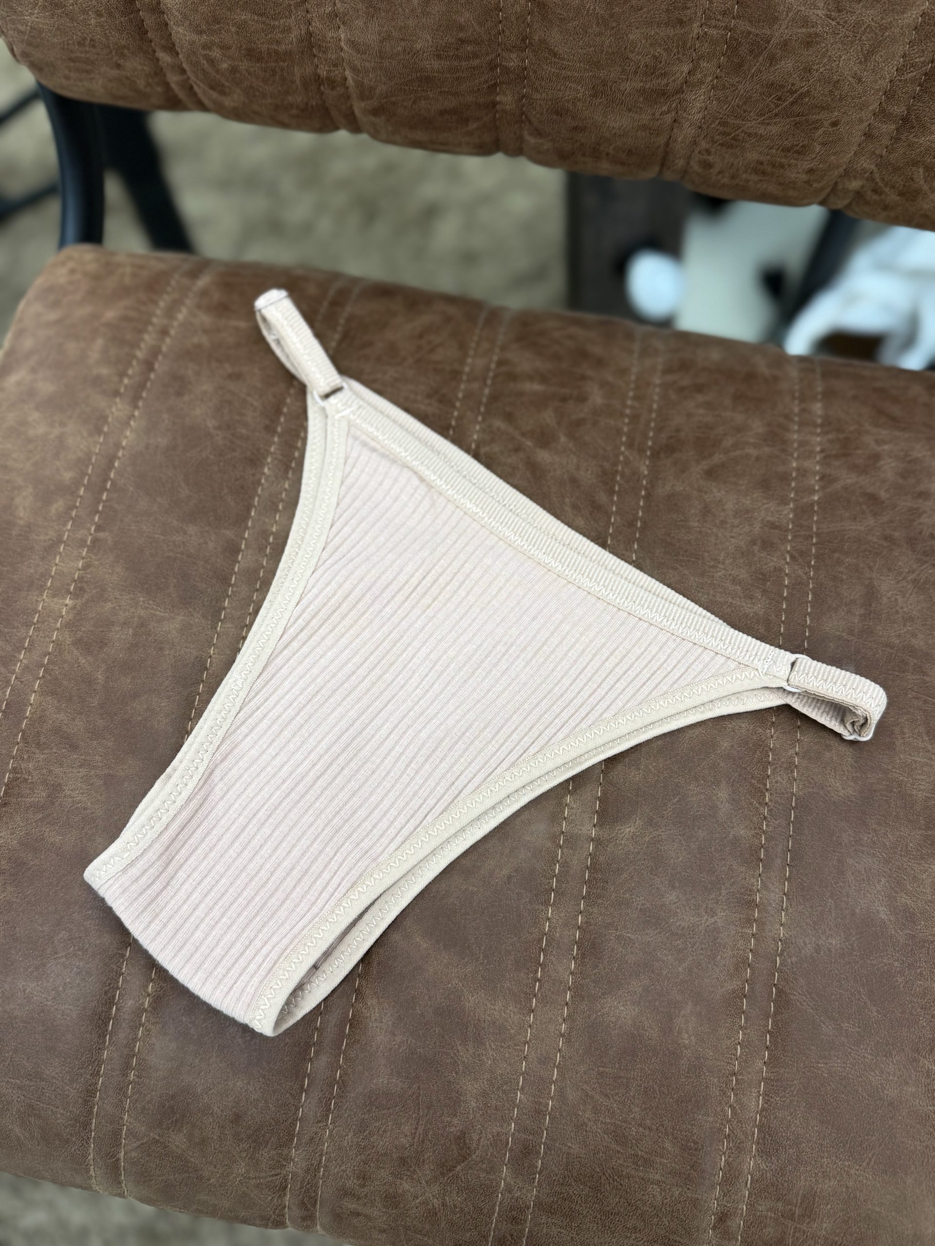 Rievota auduma, brazīļu tipa string biksītes ar sānos iestrādātu daļu, kuru varat regulēt, pielāgojot nepieciešamajam apkārtmēram