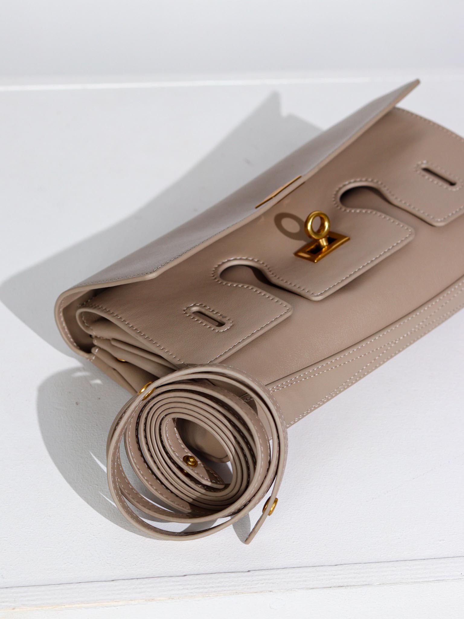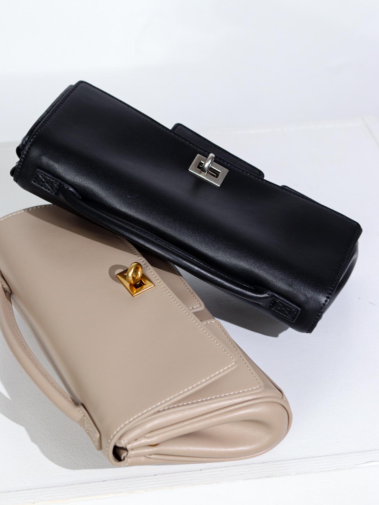 Maza klačveidīga somiņa ar dekoratīvu ādas aizdari , somiņai malā ir mazi nodalījumi kredītkartēm un klāt nāk gara , ādas lence.