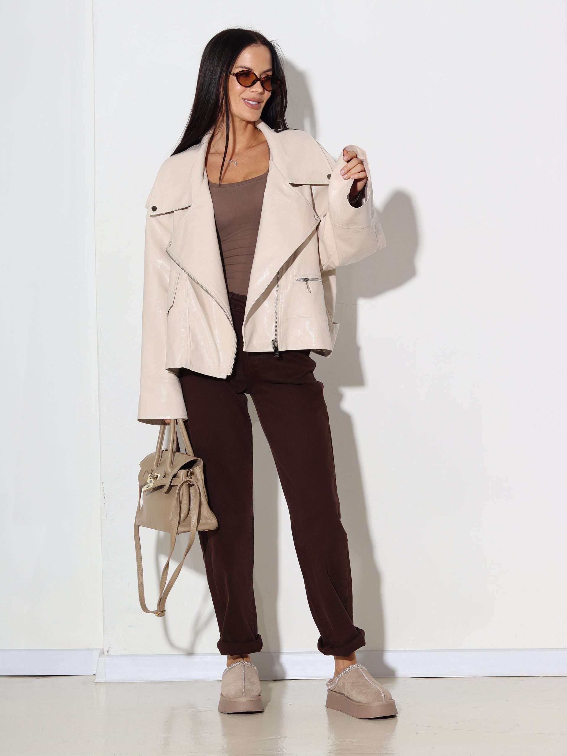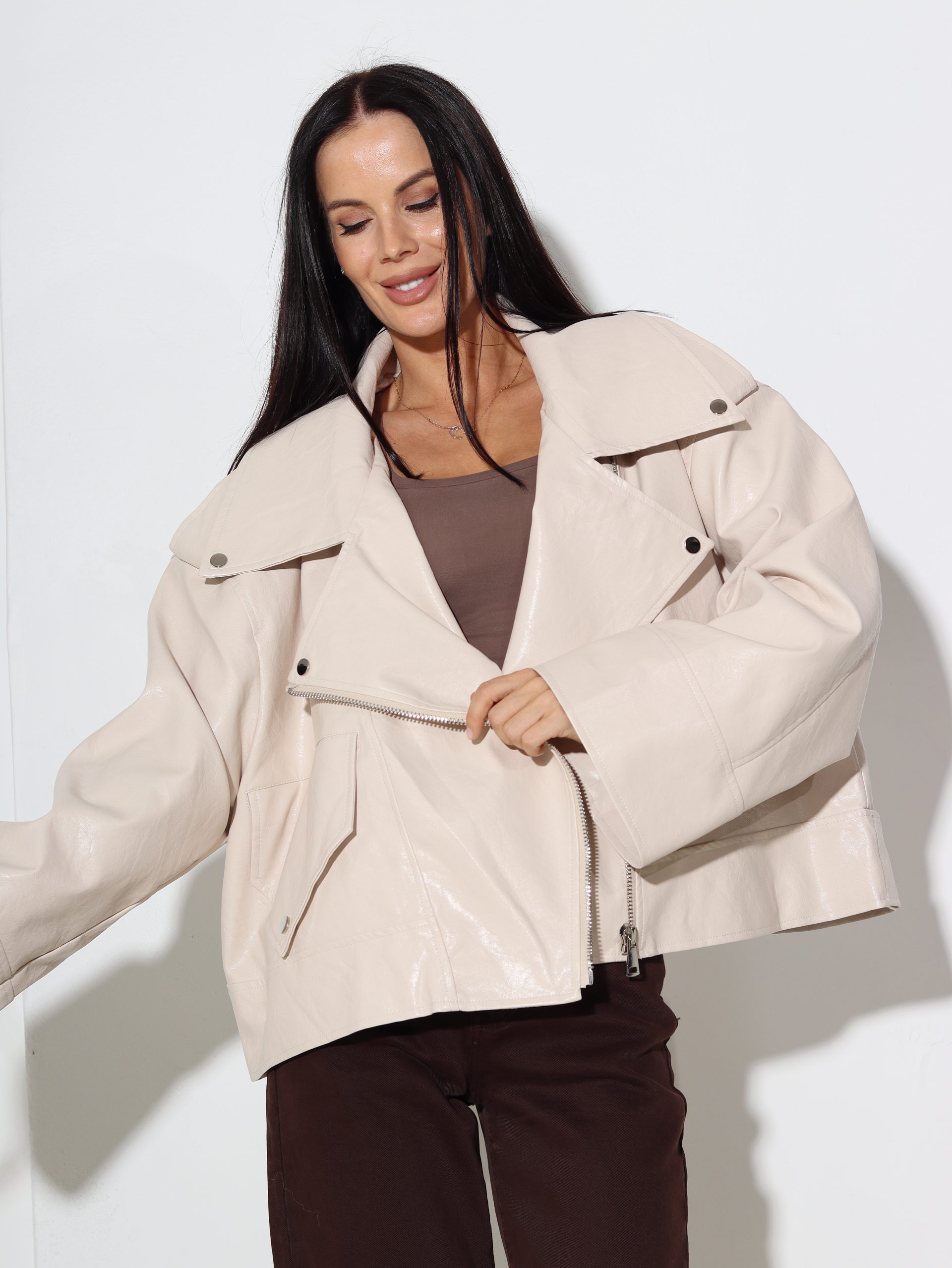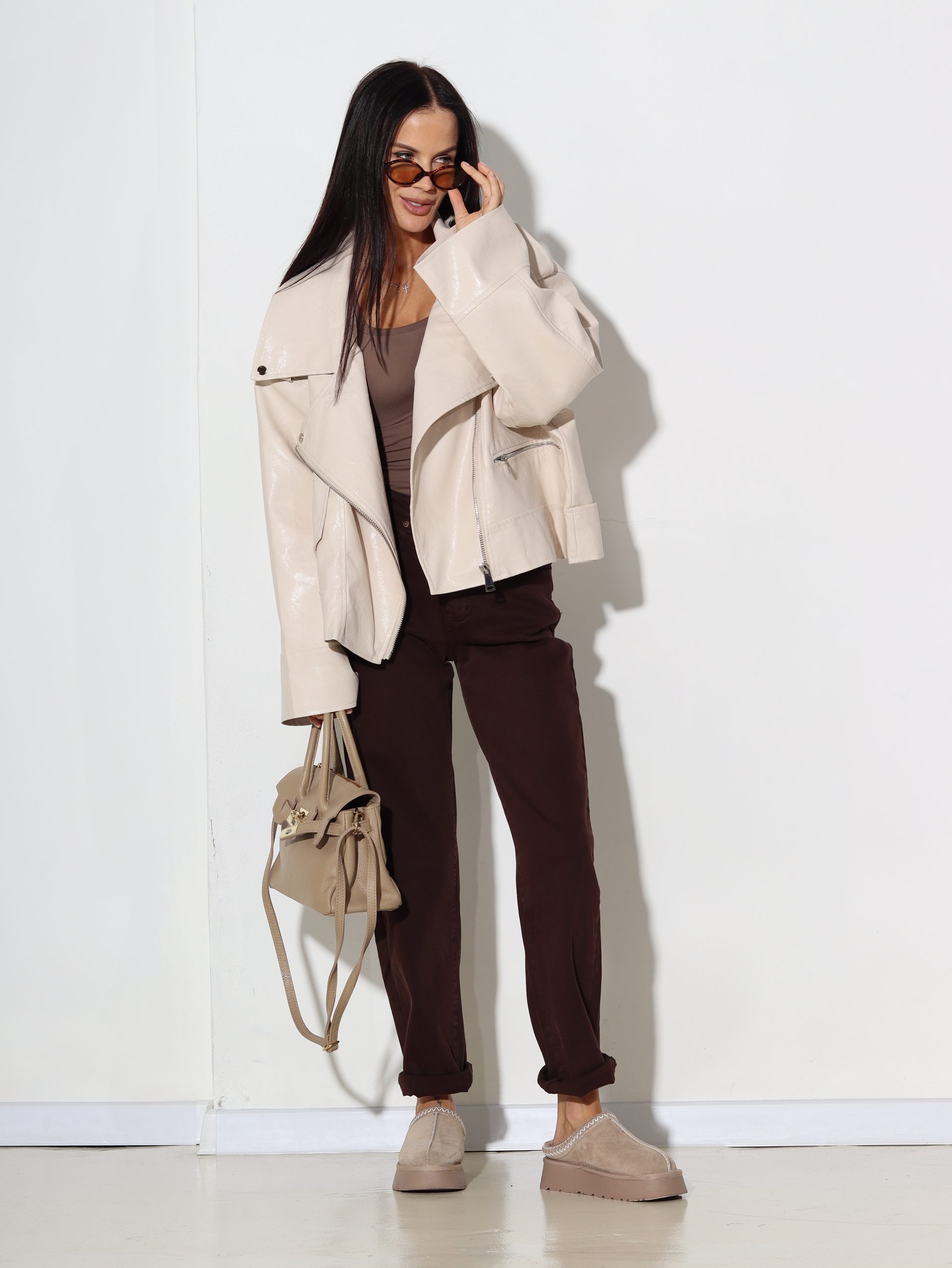 Bēša, eco ādas paplatināta īsā jaka – 16301