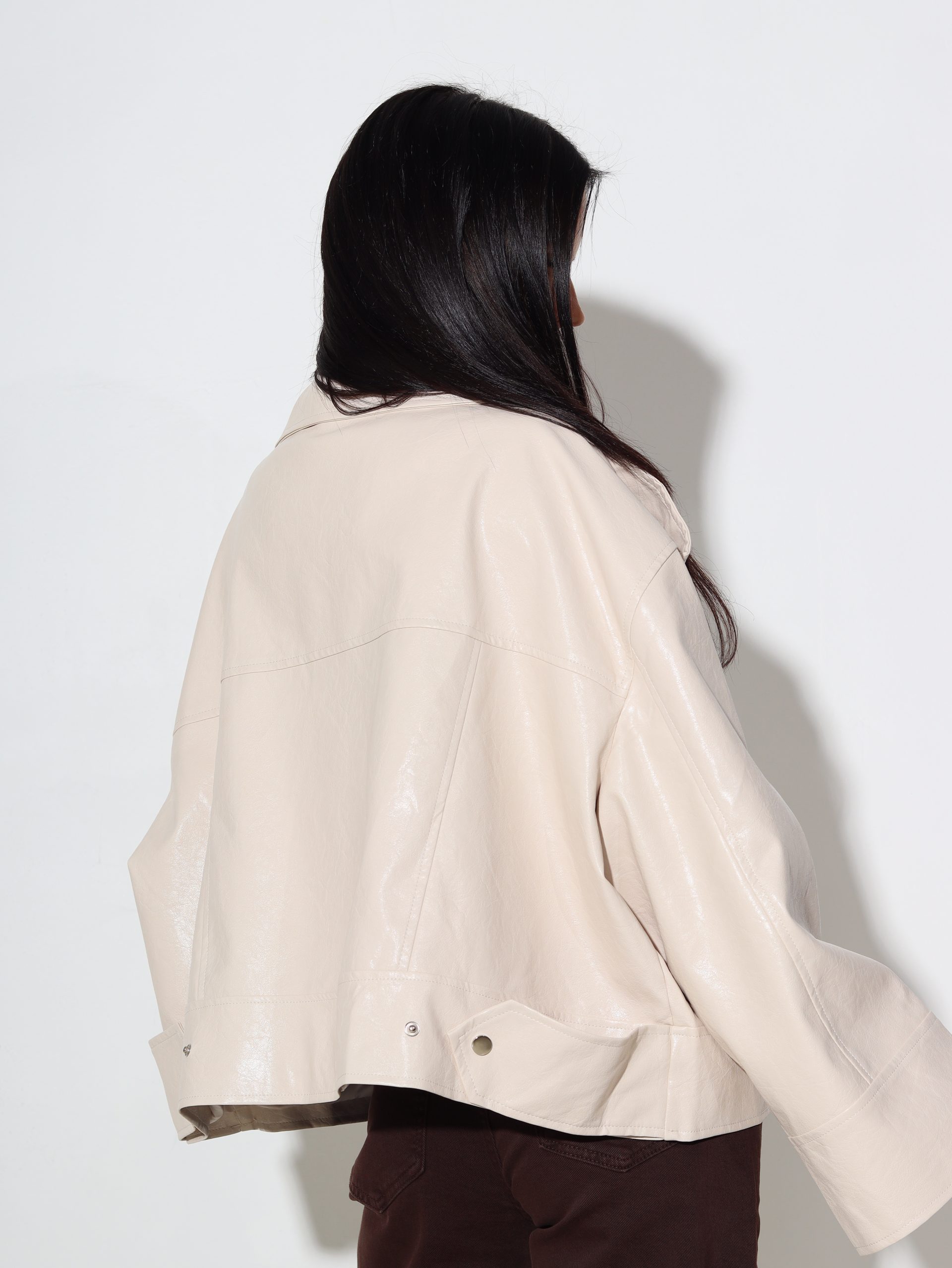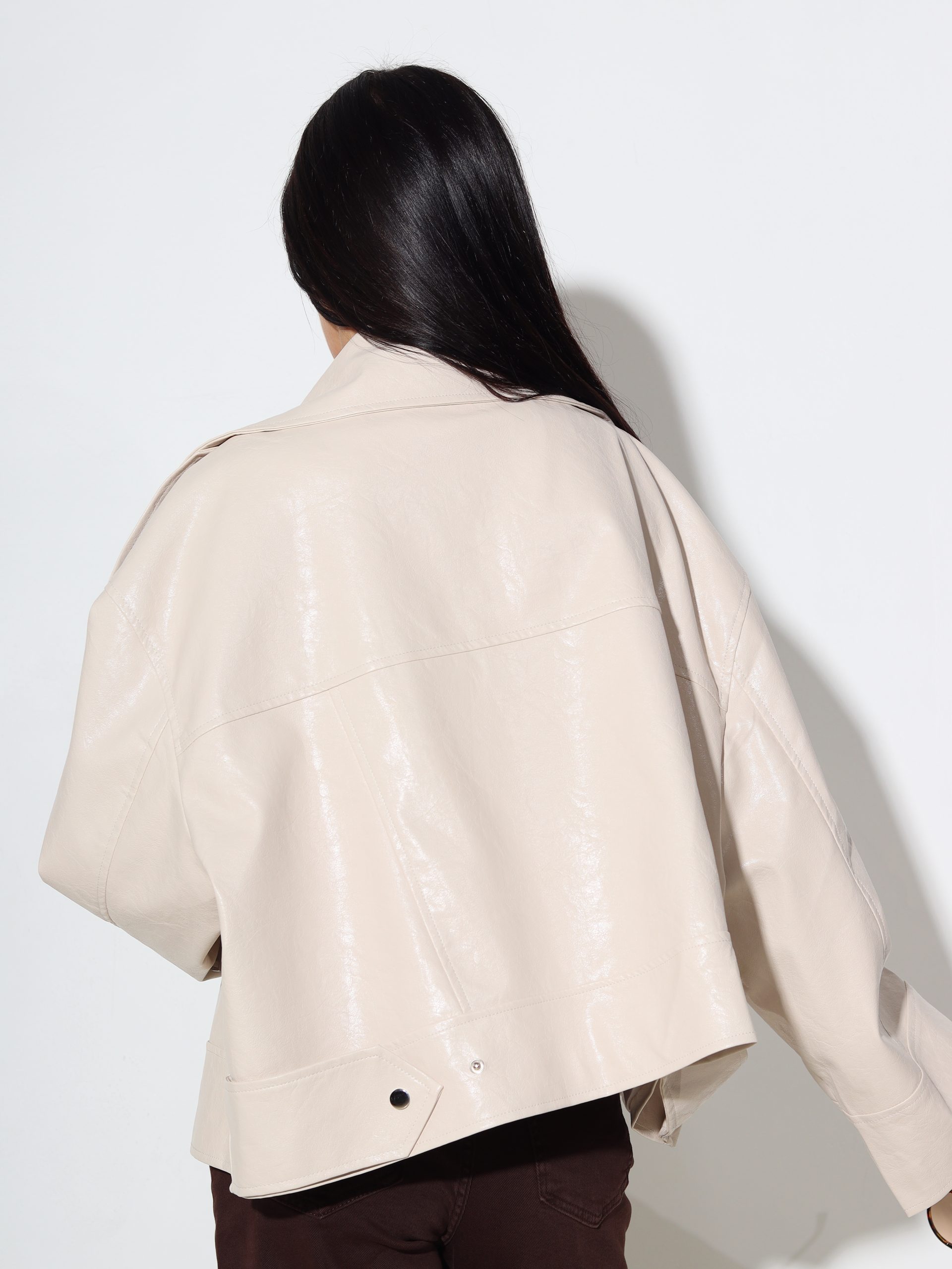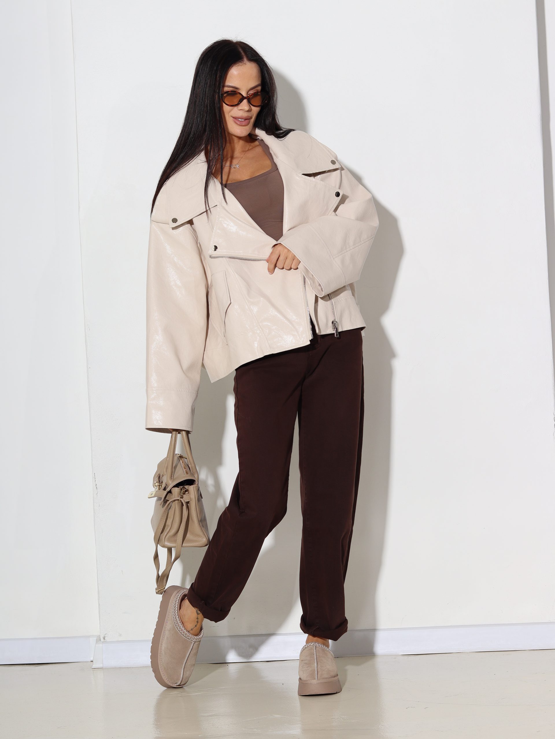 Bēša, eco ādas paplatināta īsā jaka – 16301