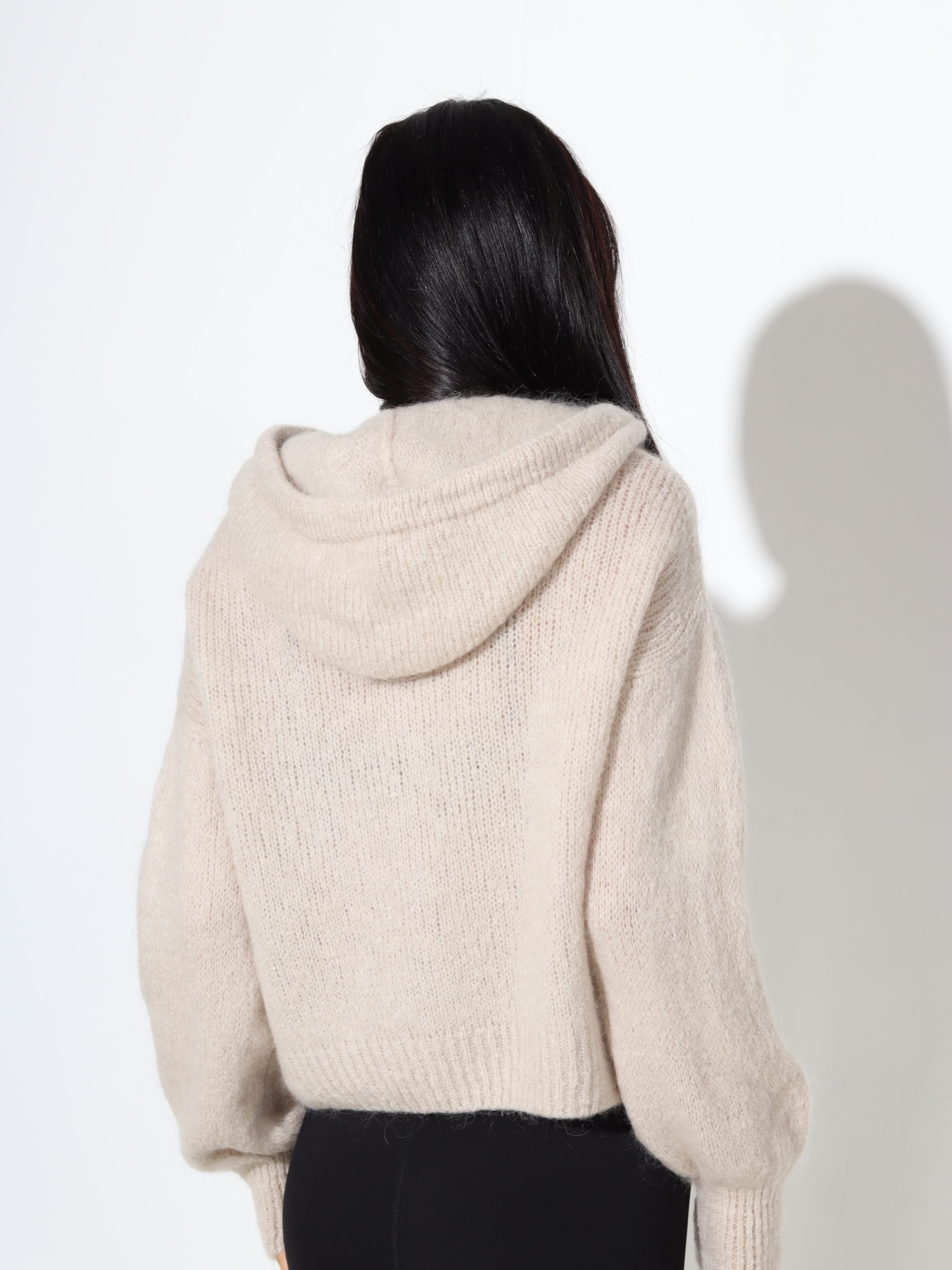 Mohēras jaka ar garām piedurknēm un kapuci, rāvējslēdzēja aizdare