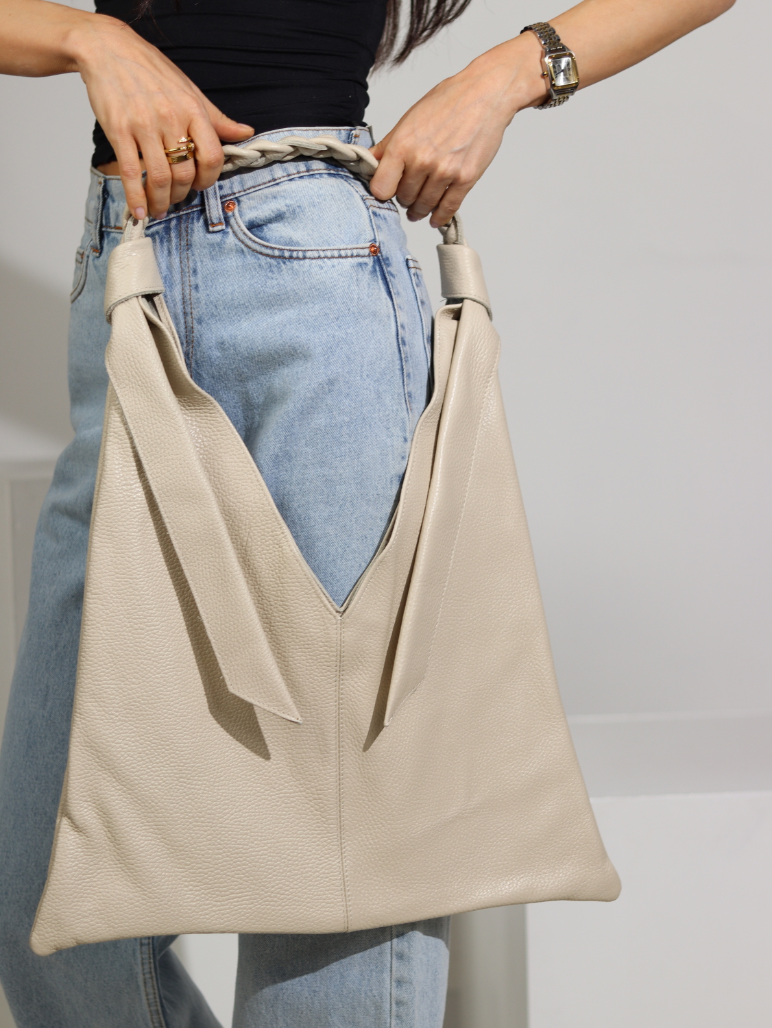 Bēša plāna d/a soma ar pītu ādas rokturi – 15758