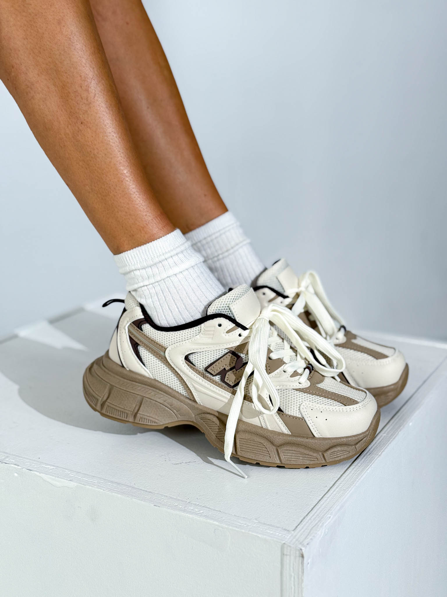 Bēši ar brūnu zoli, sportiska stila apavi ‘N’ – 16045