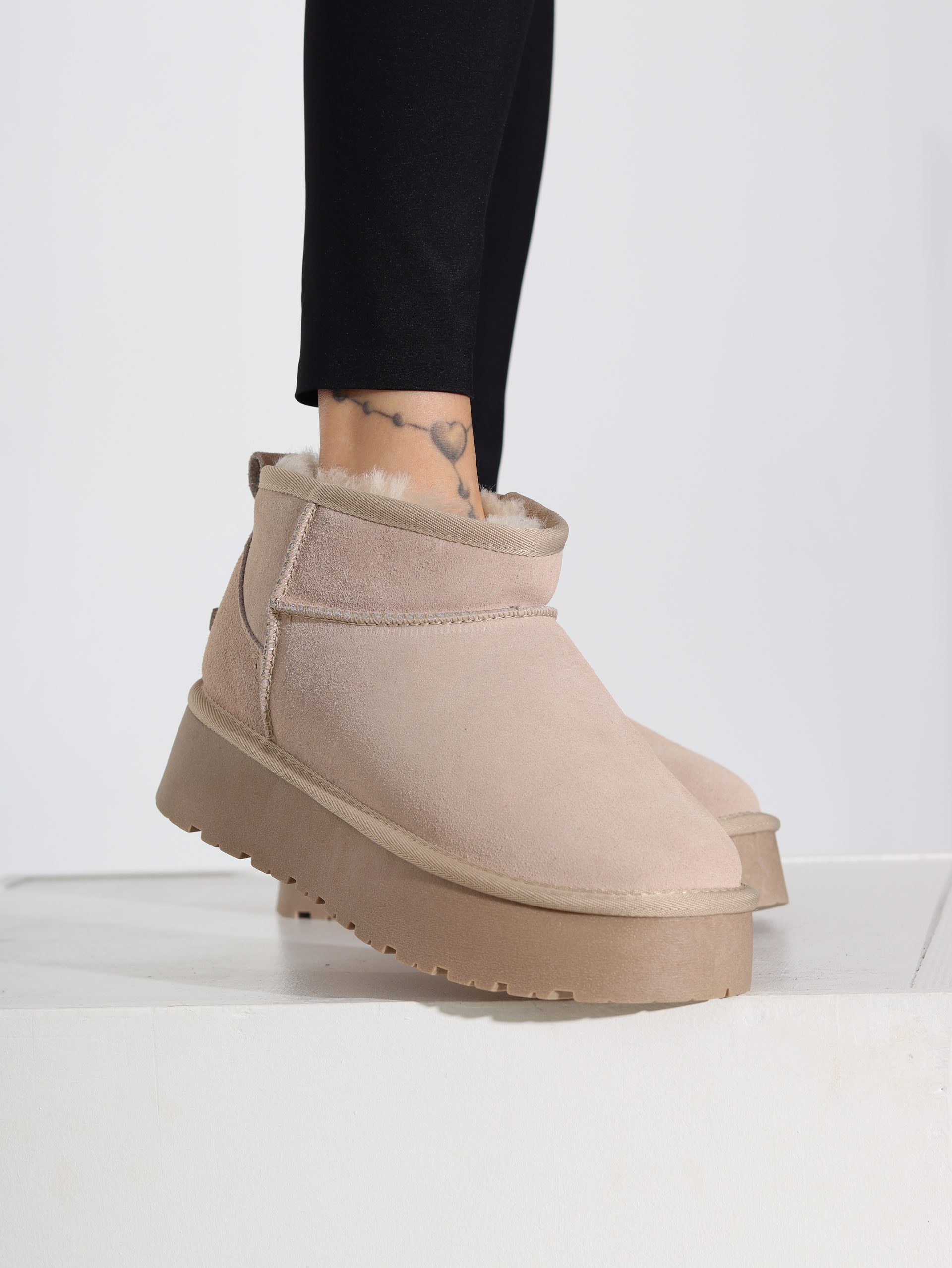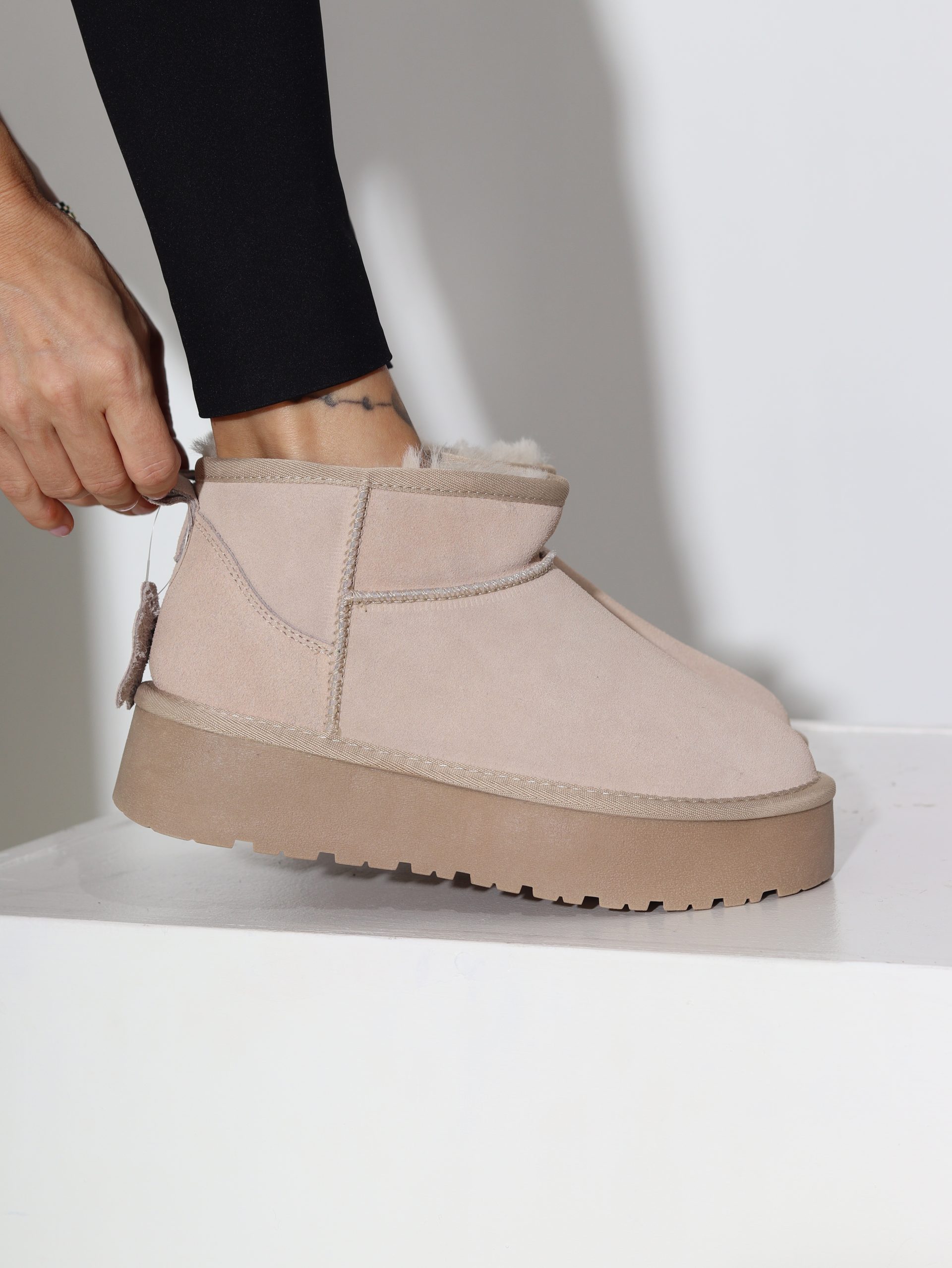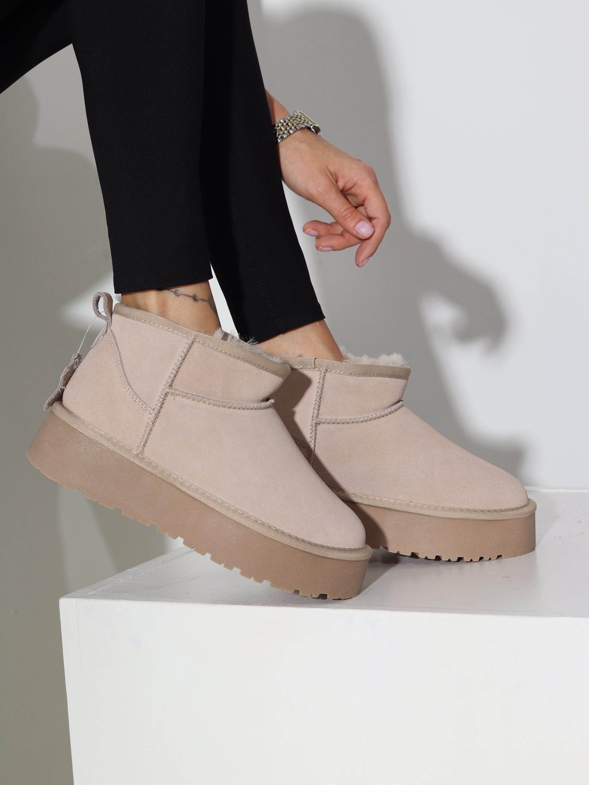 Bēši, d/zamšādas mini ‘UGG’ tipa zābaki – 16475
