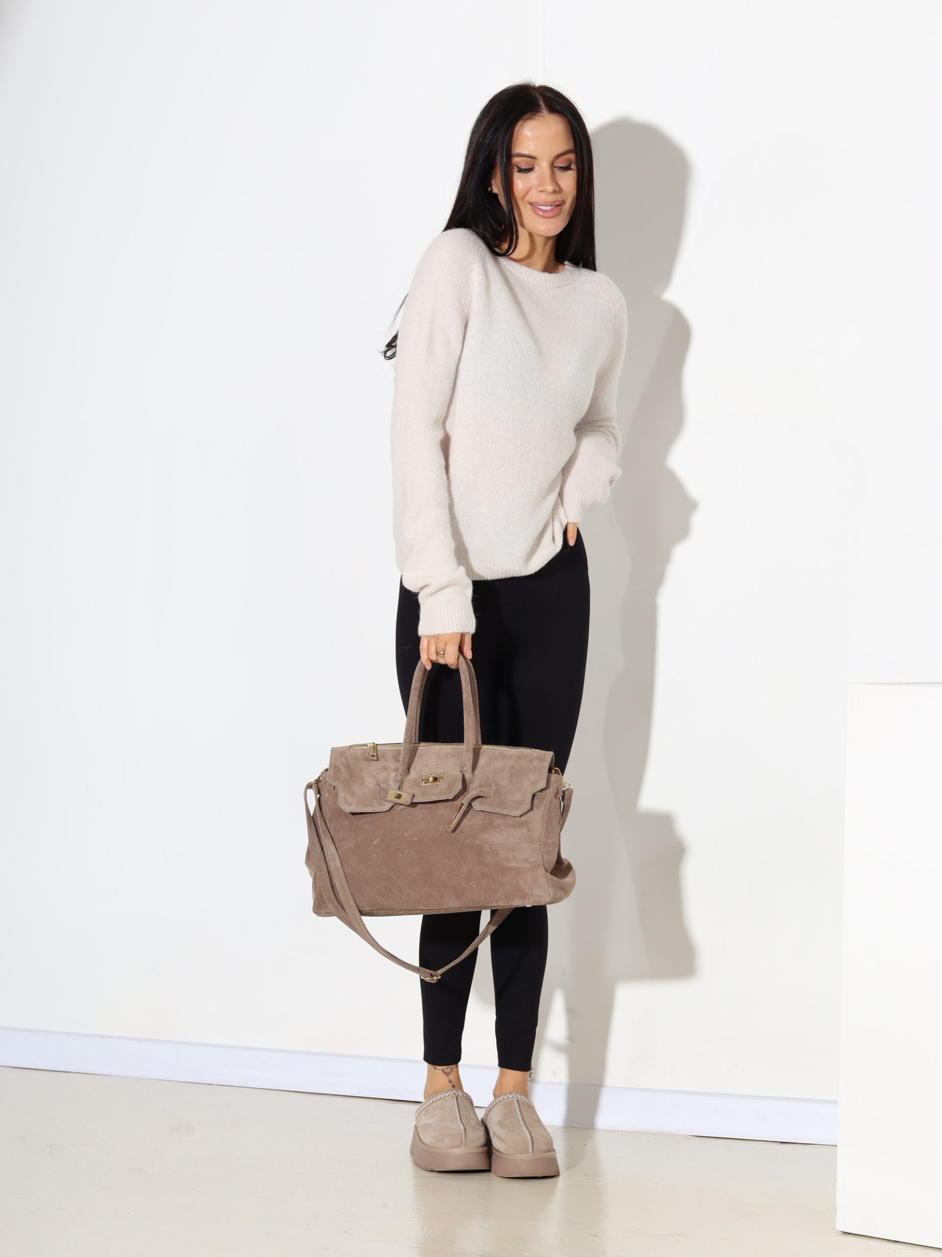 Bēšs klasisks smalka adījuma alpakas džemperis – 17718