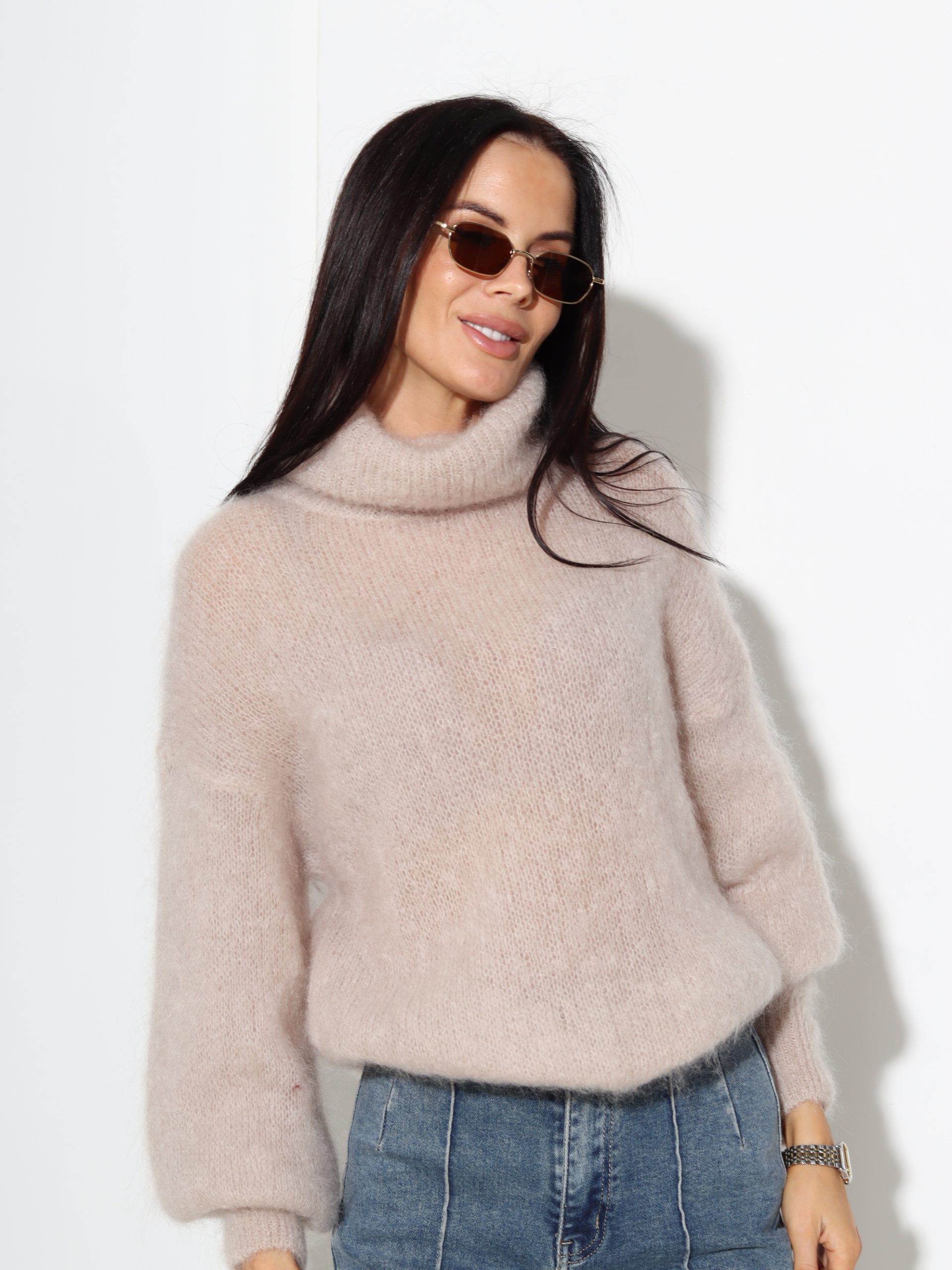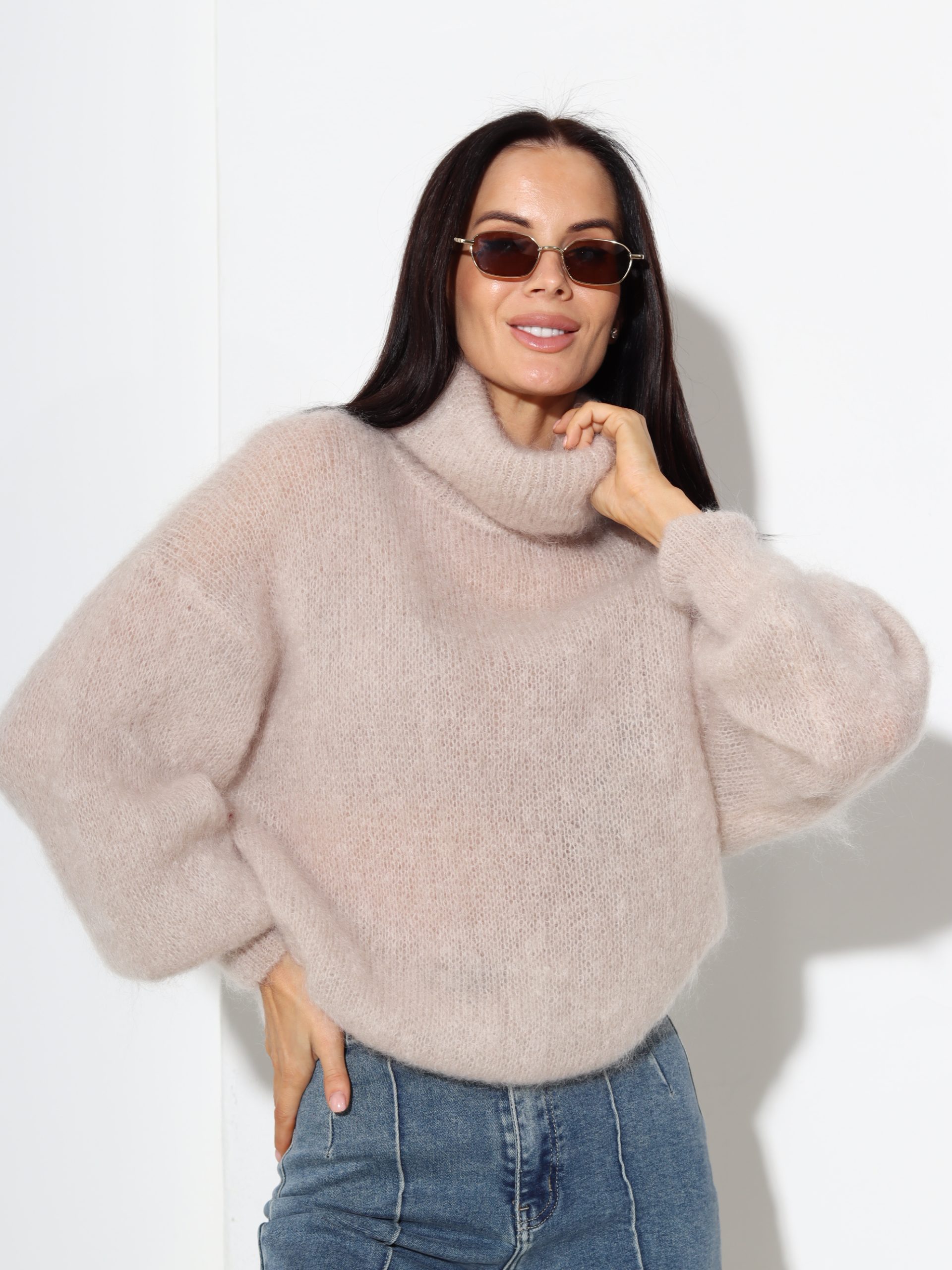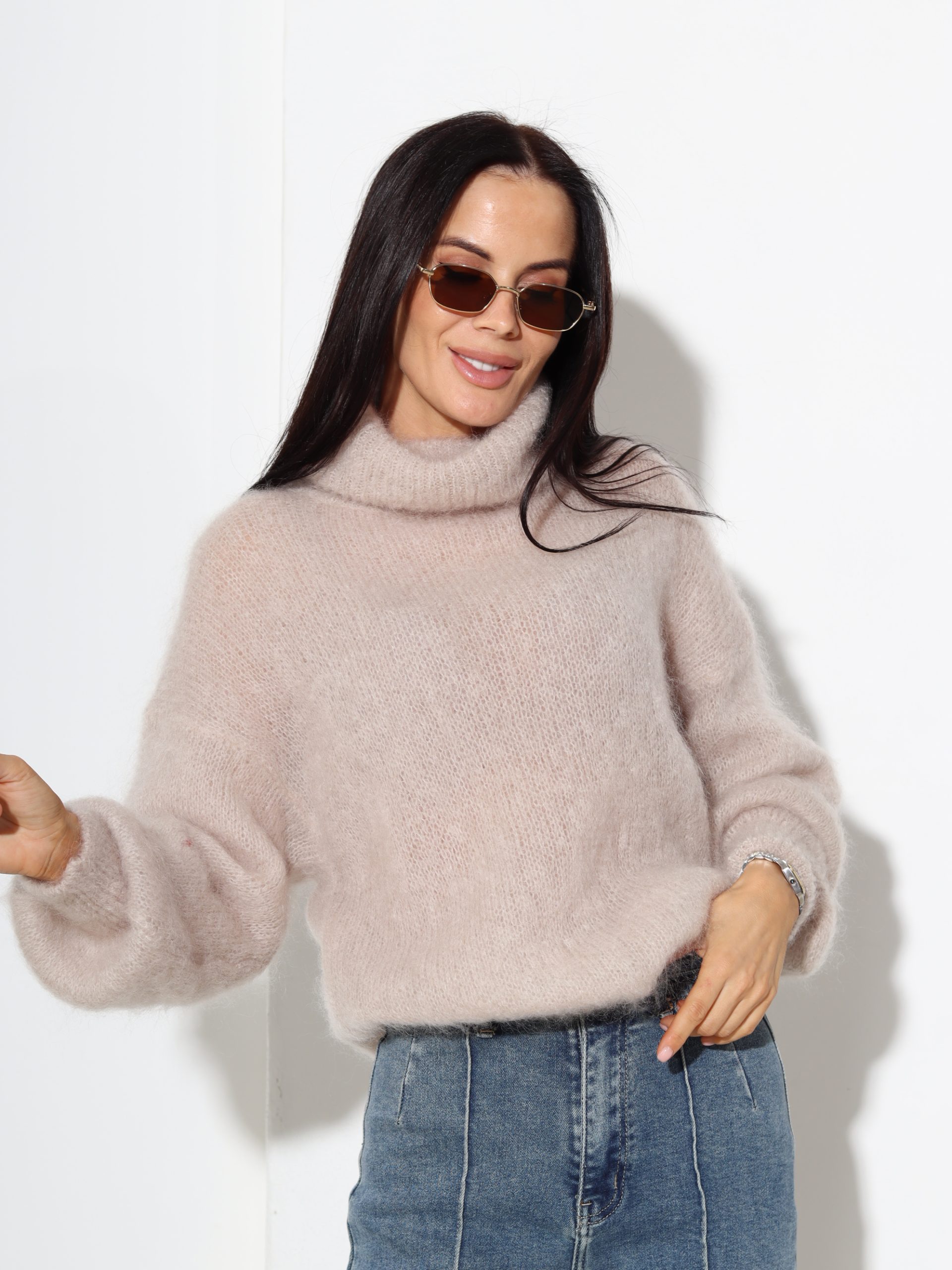 Bēss mohēras džemperis ar augstu kaklu – 17531