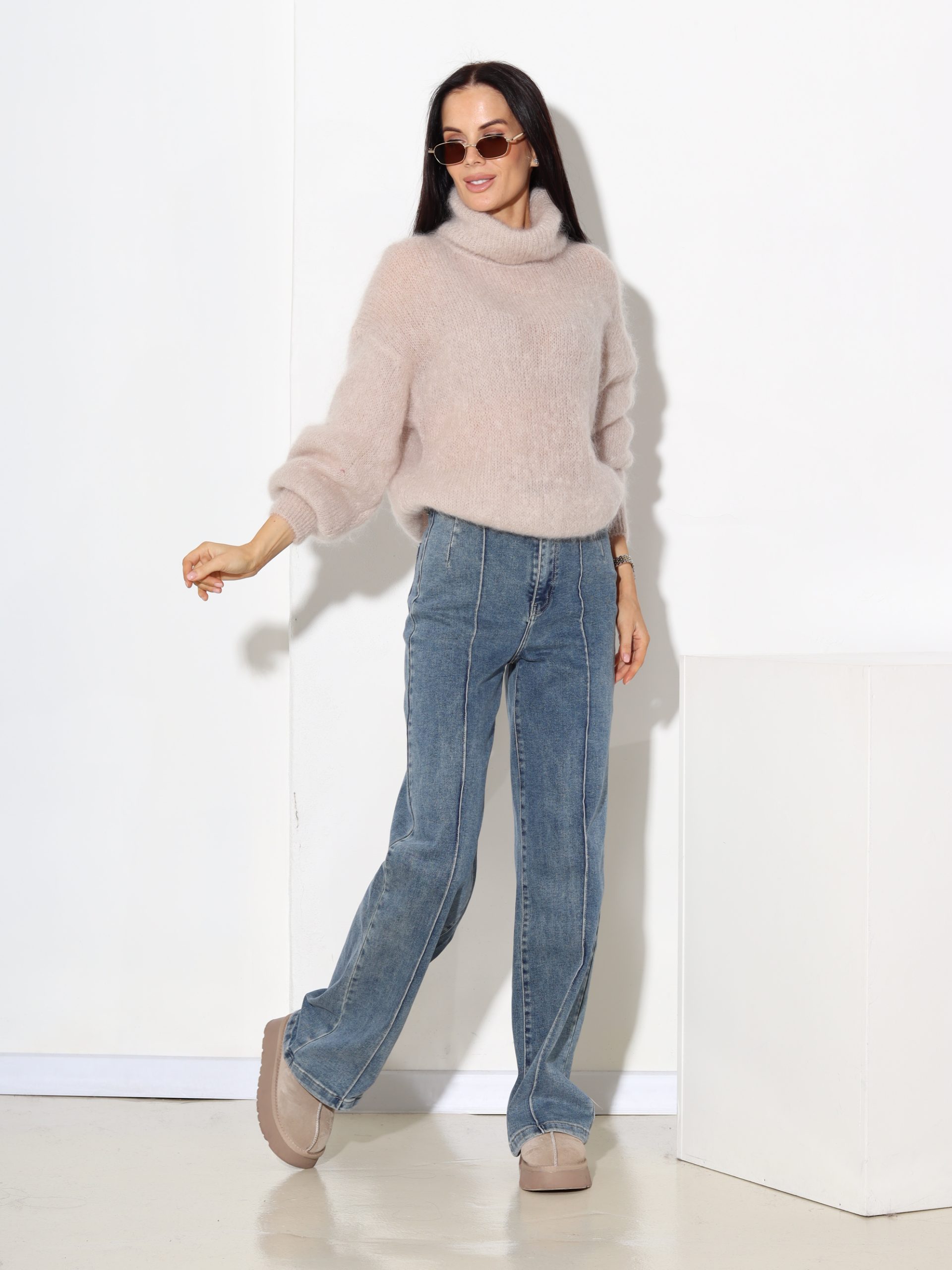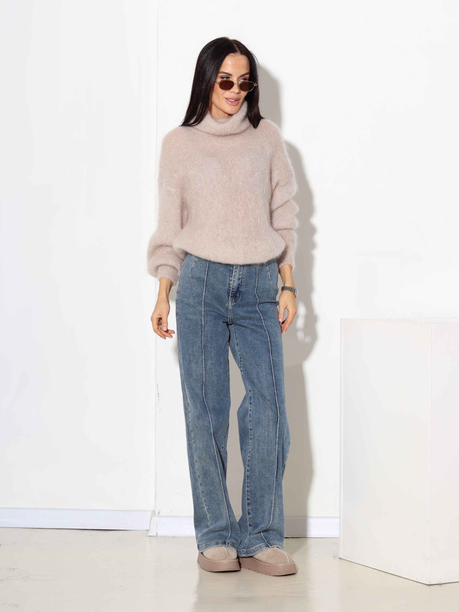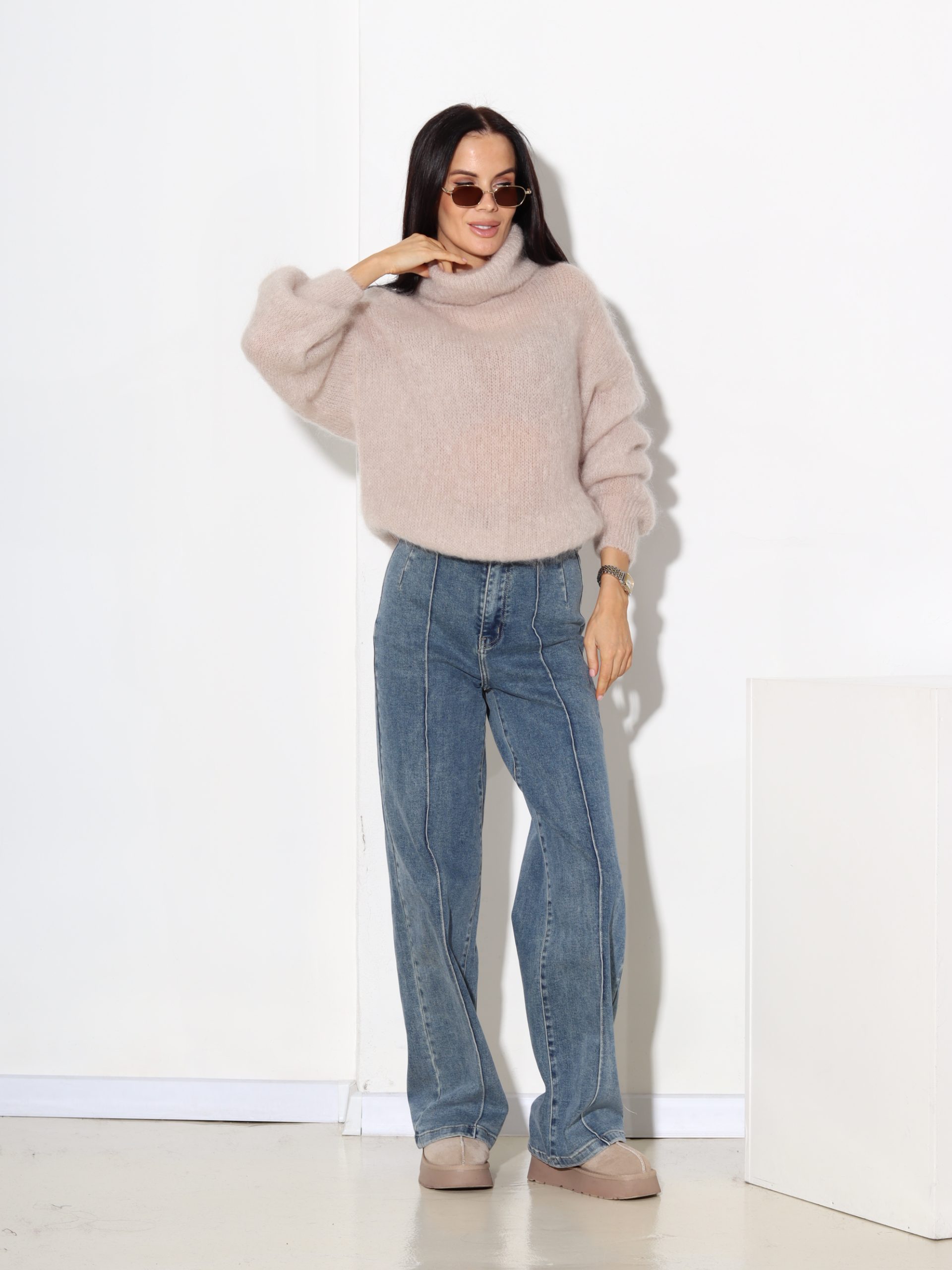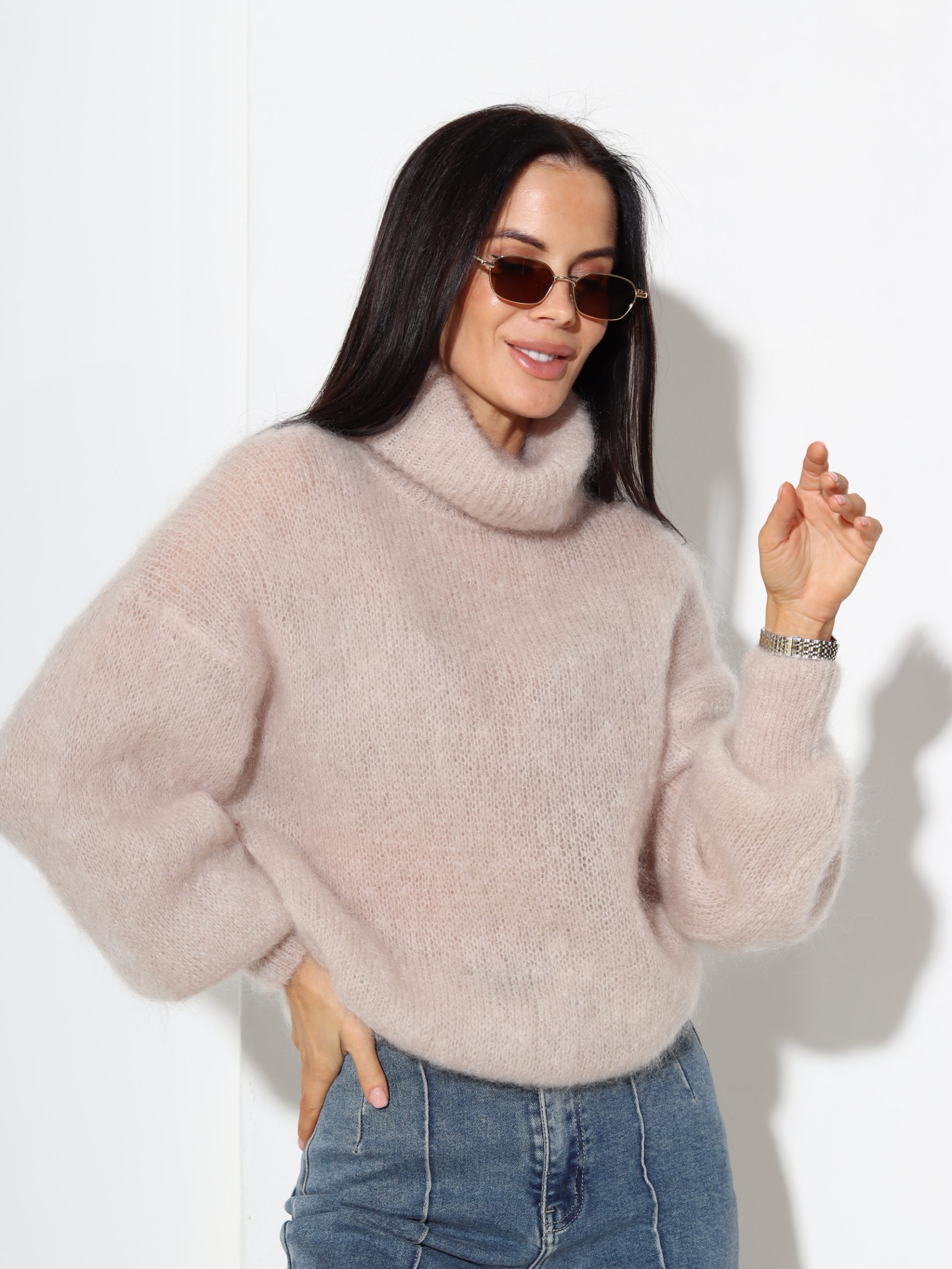 Bēss mohēras džemperis ar augstu kaklu – 17531