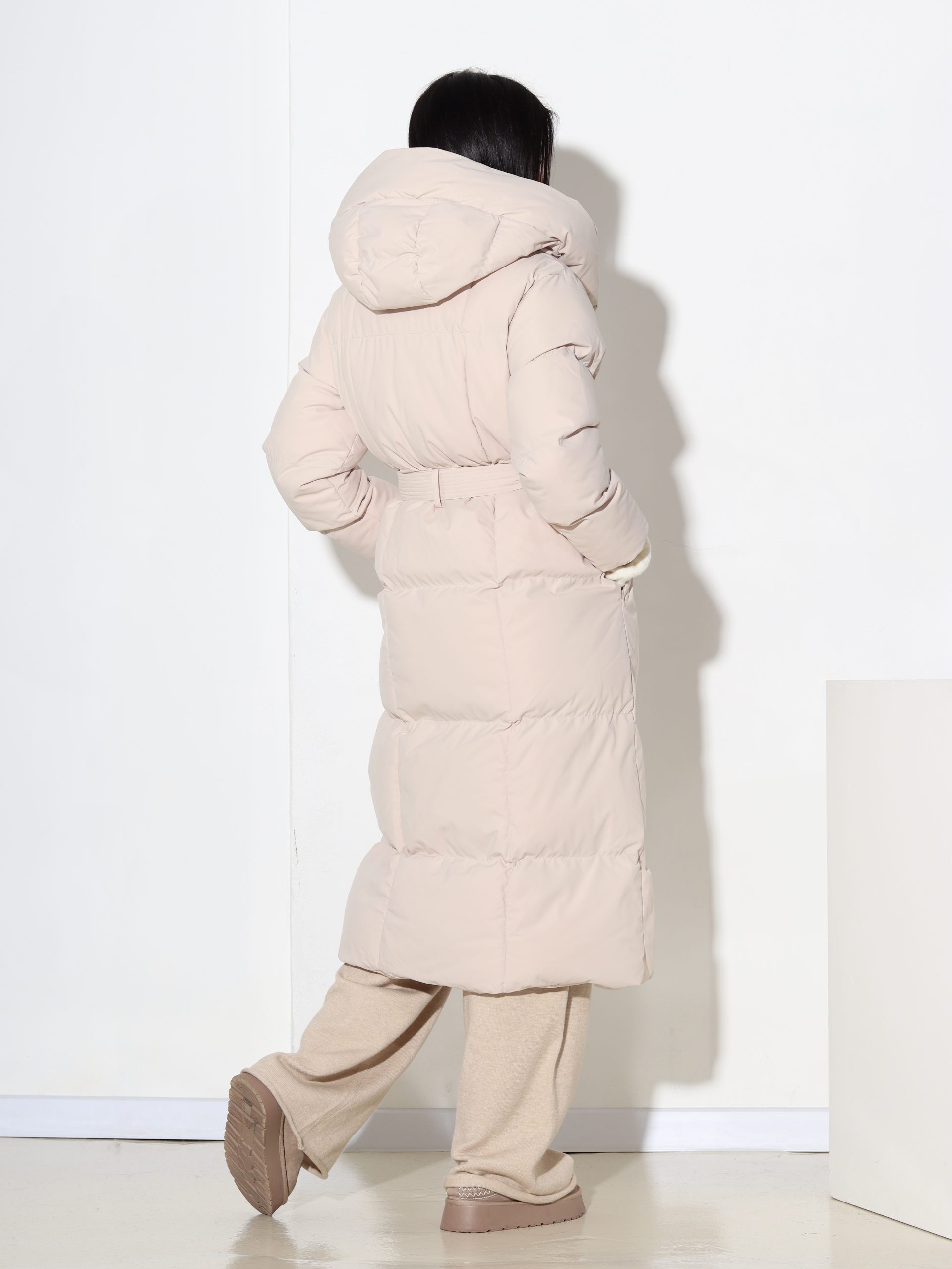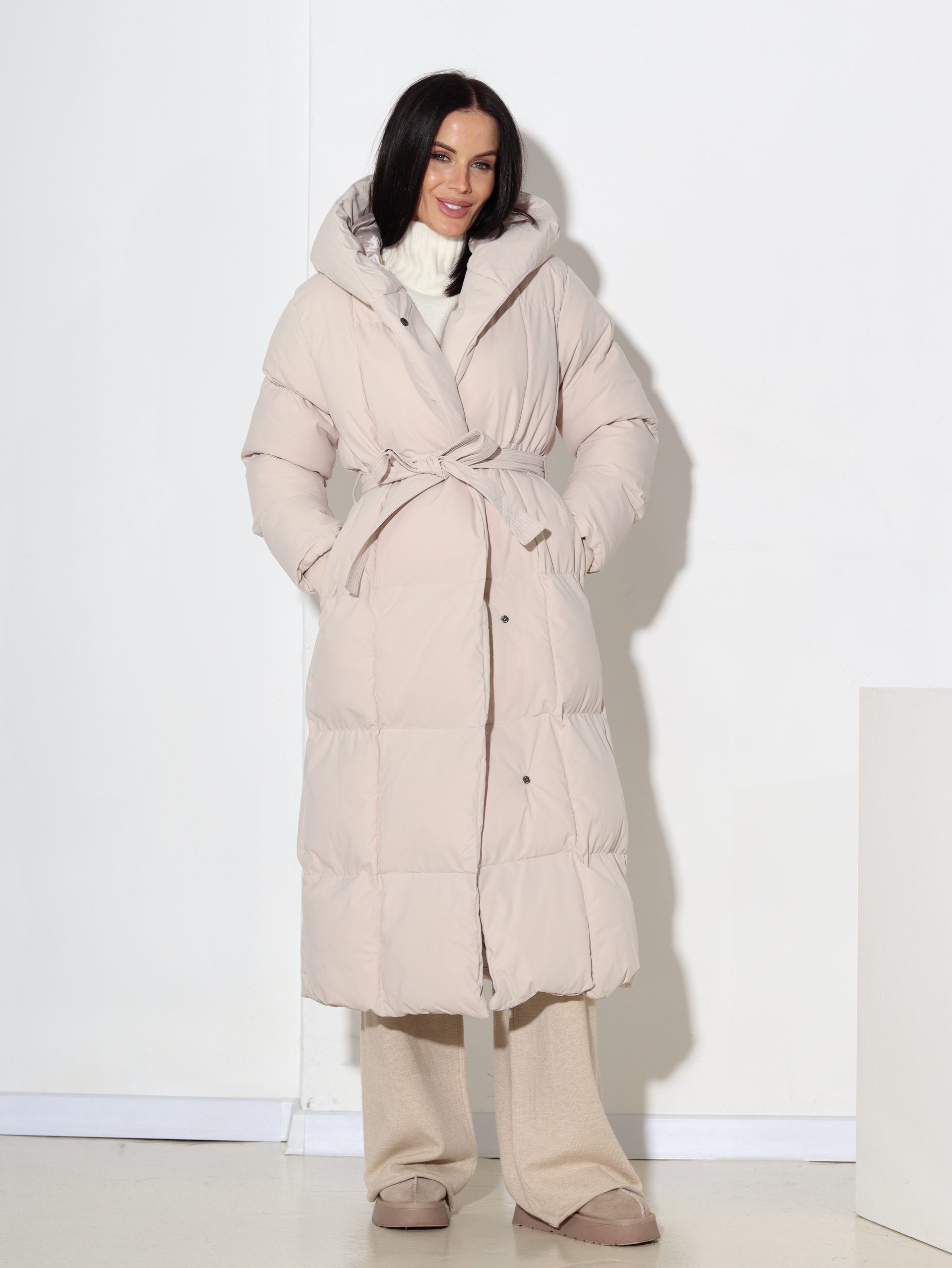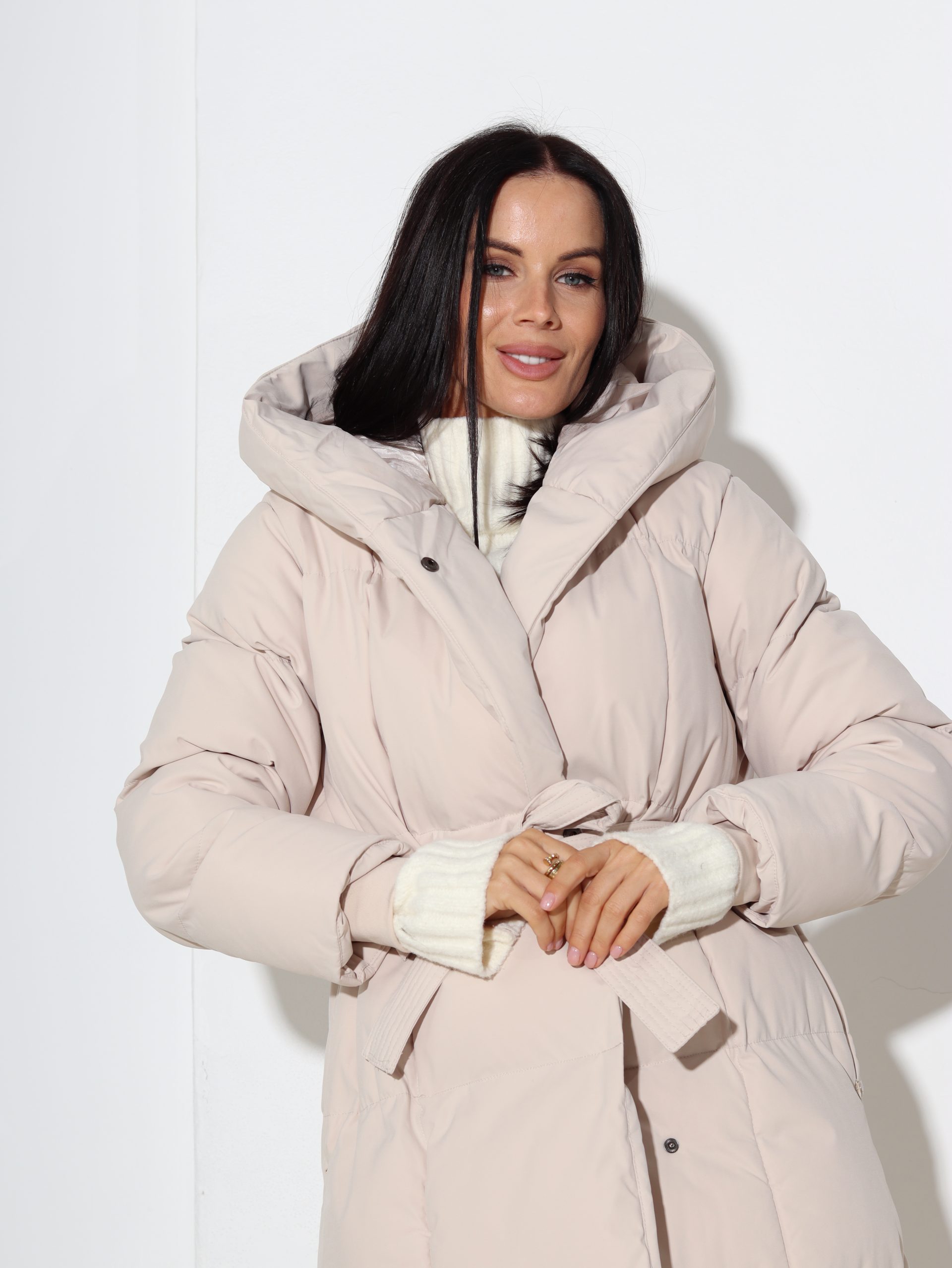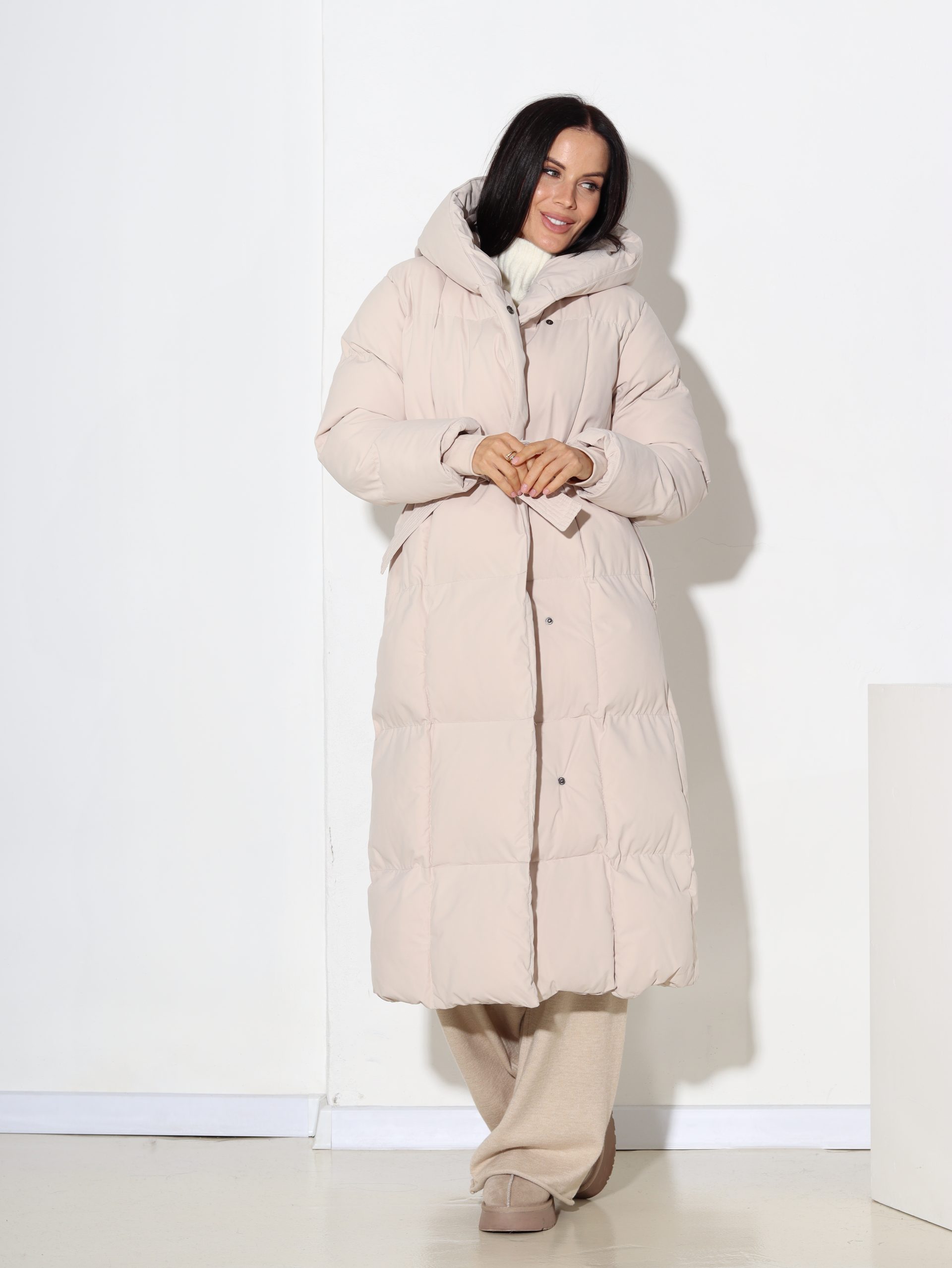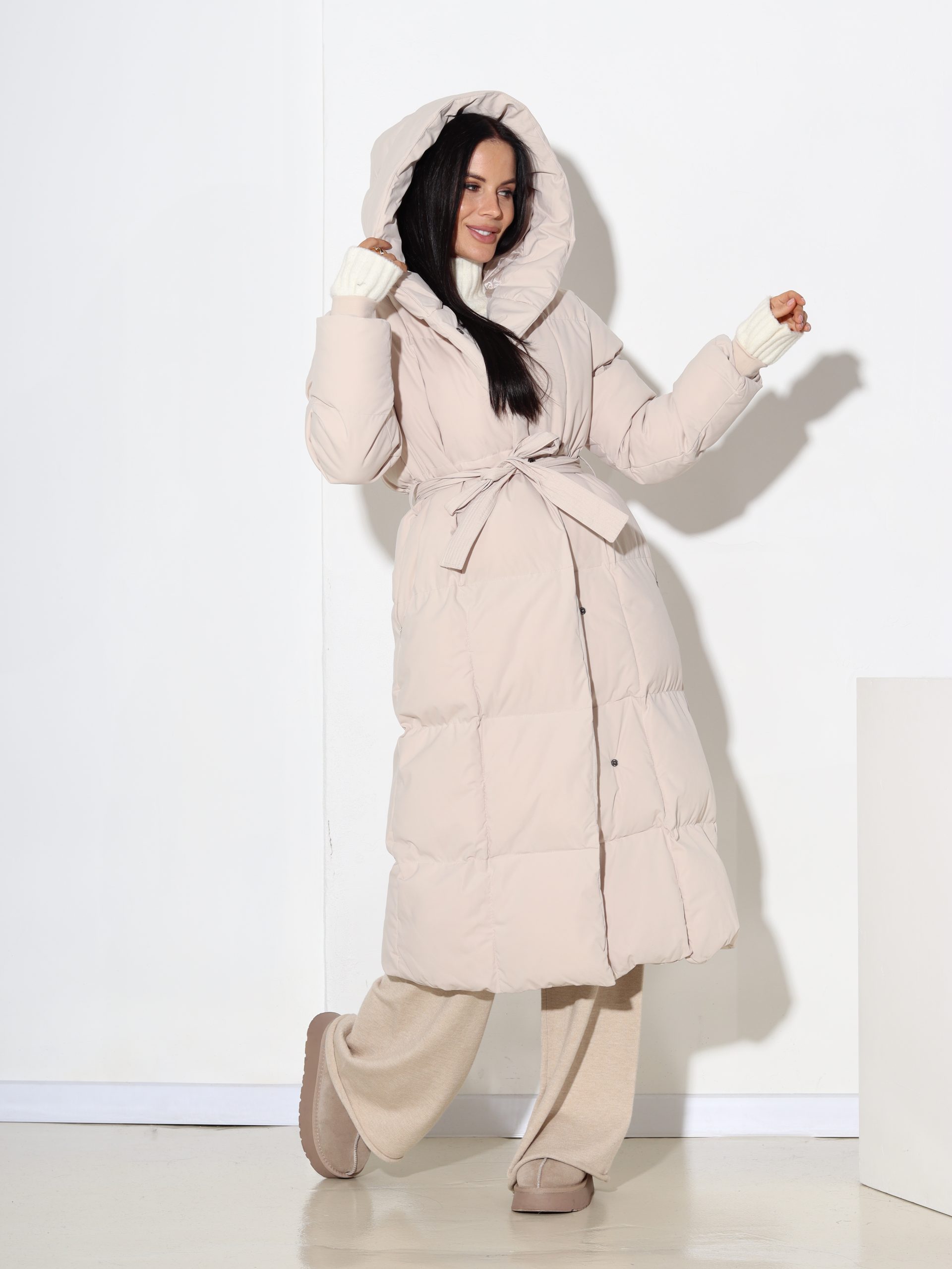 Bēšs, rudens/ziemas midi garuma virsjaka ar kapuci- 17079