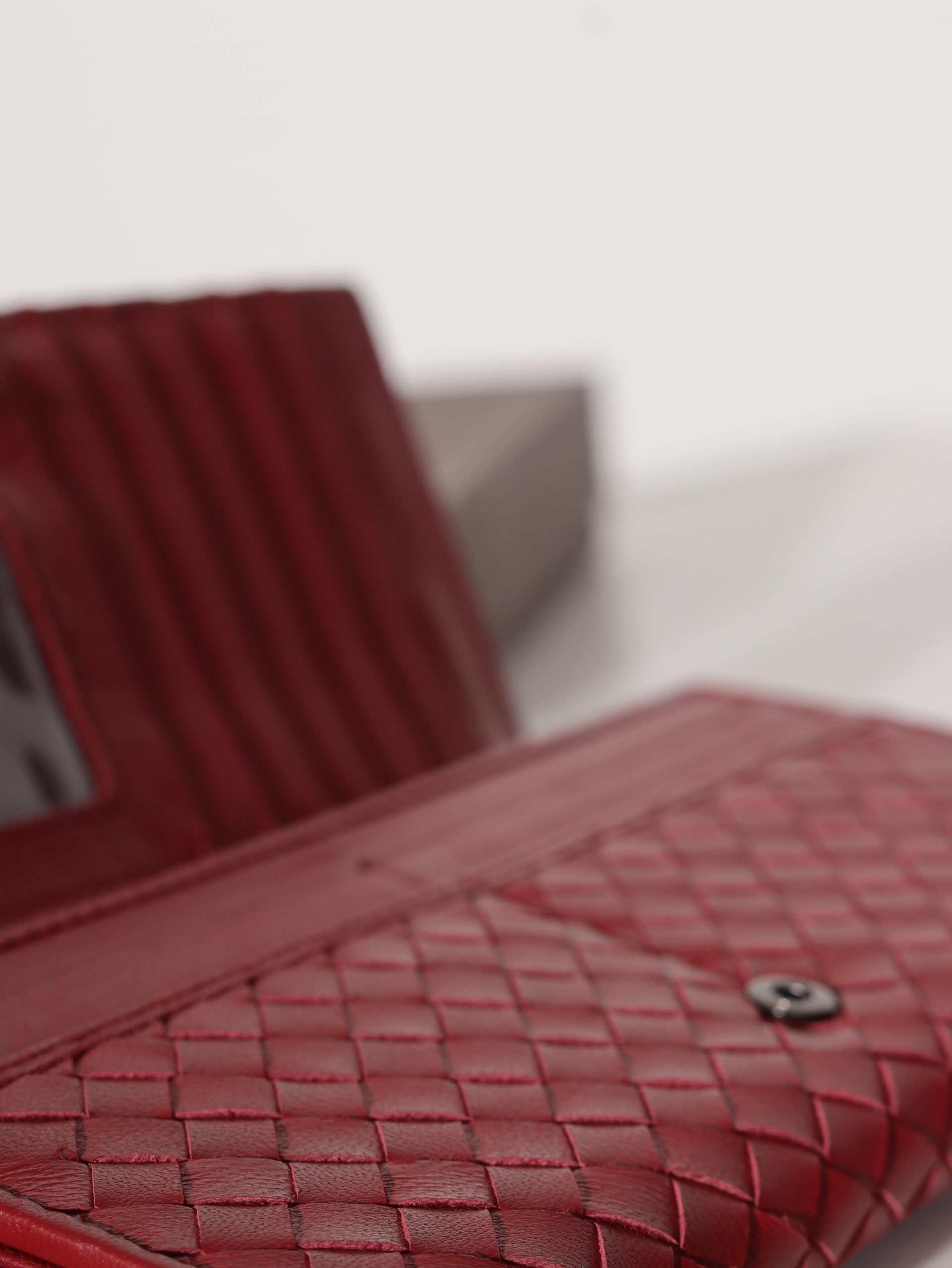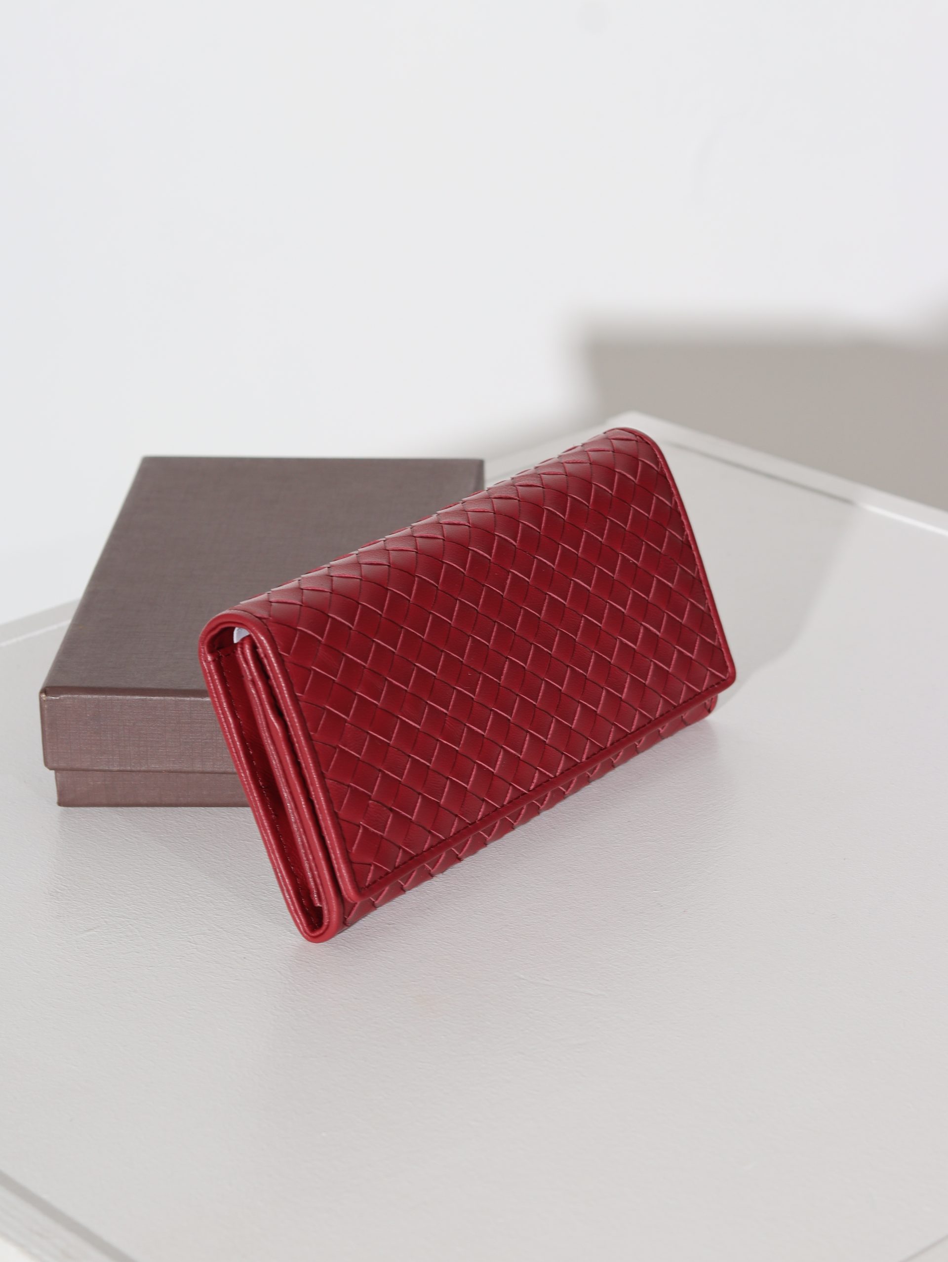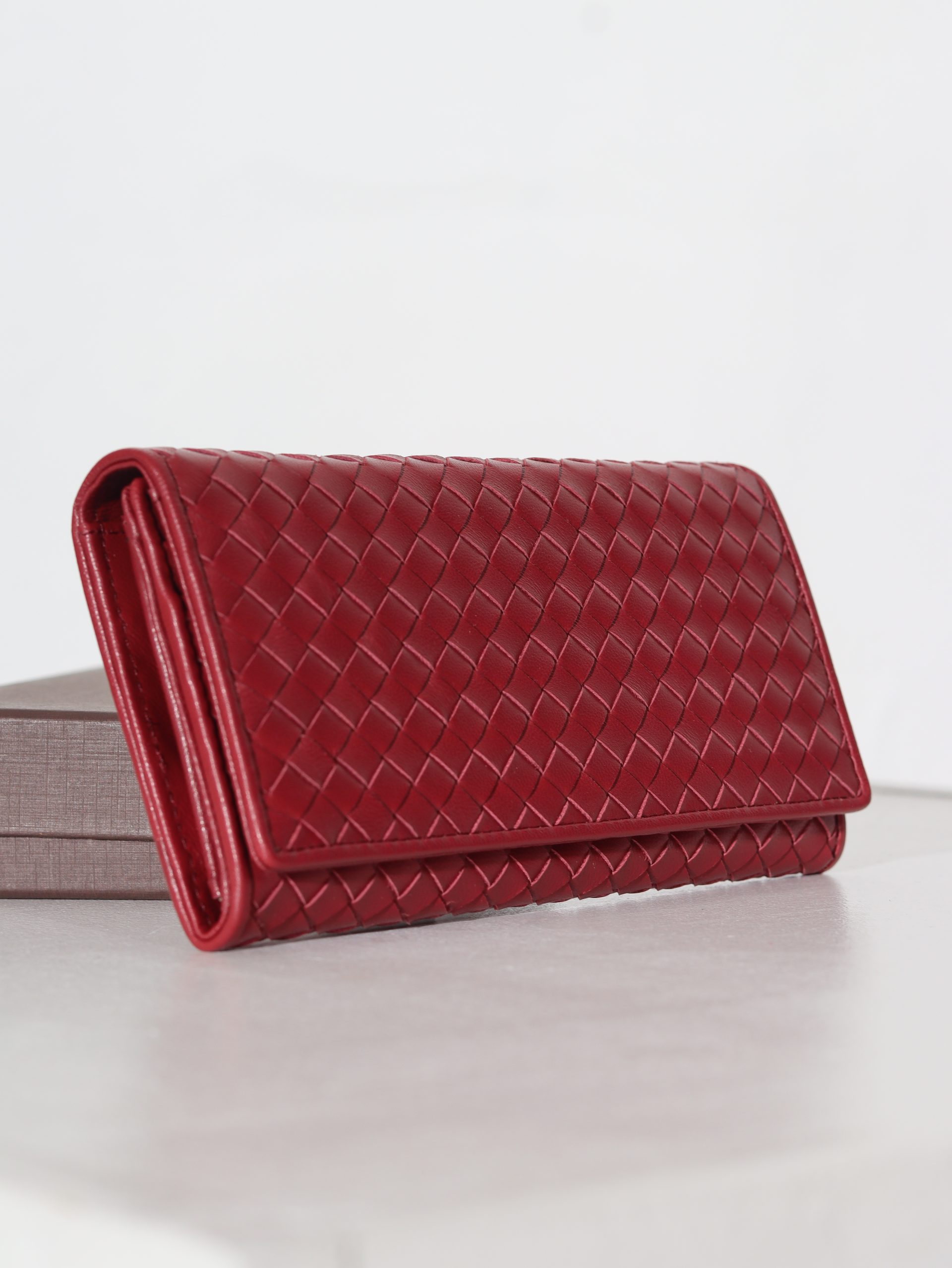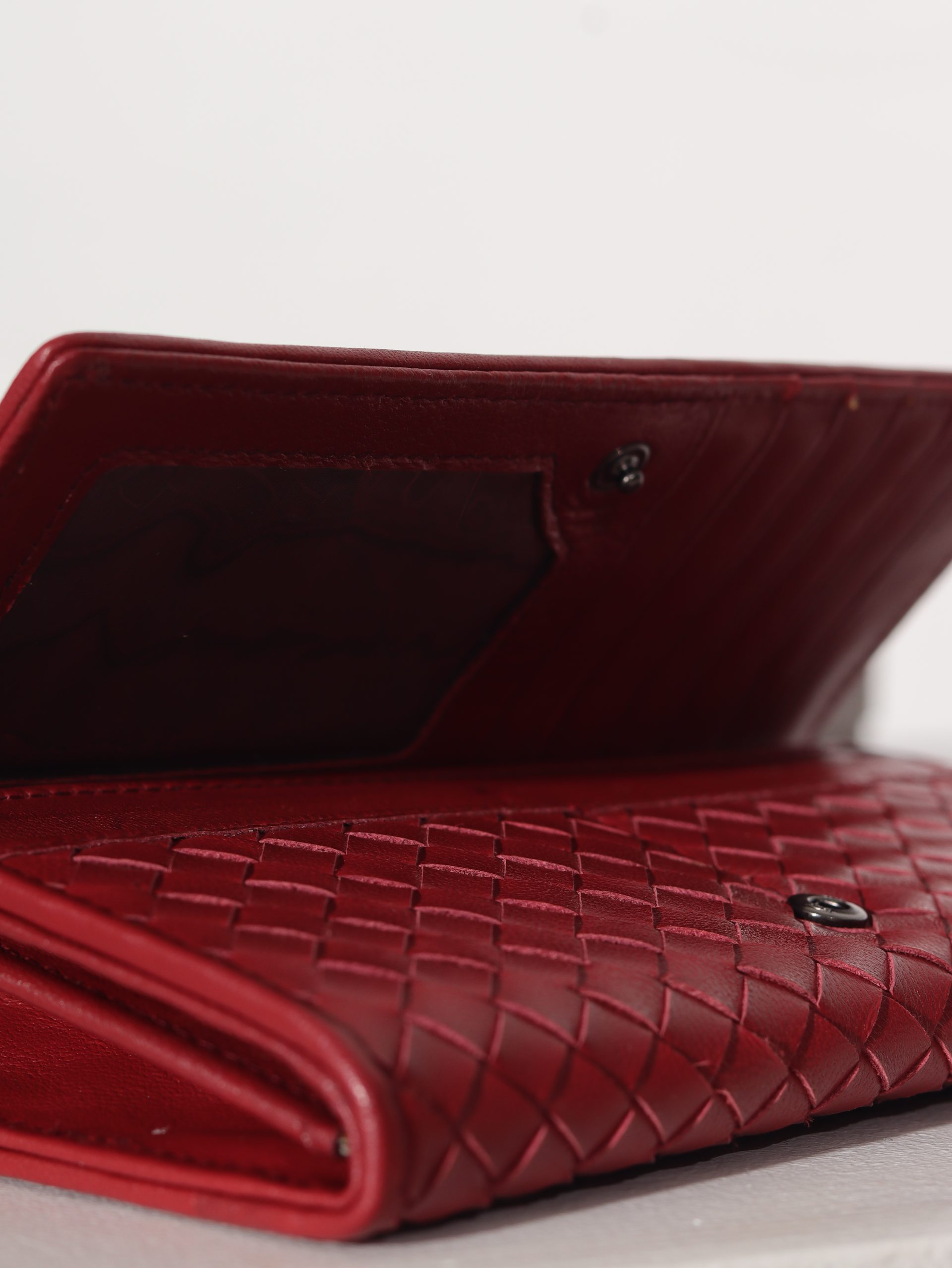 Dabīgās ādas maks ar spiedpogas aizdari. Makam ir pinuma dizains.