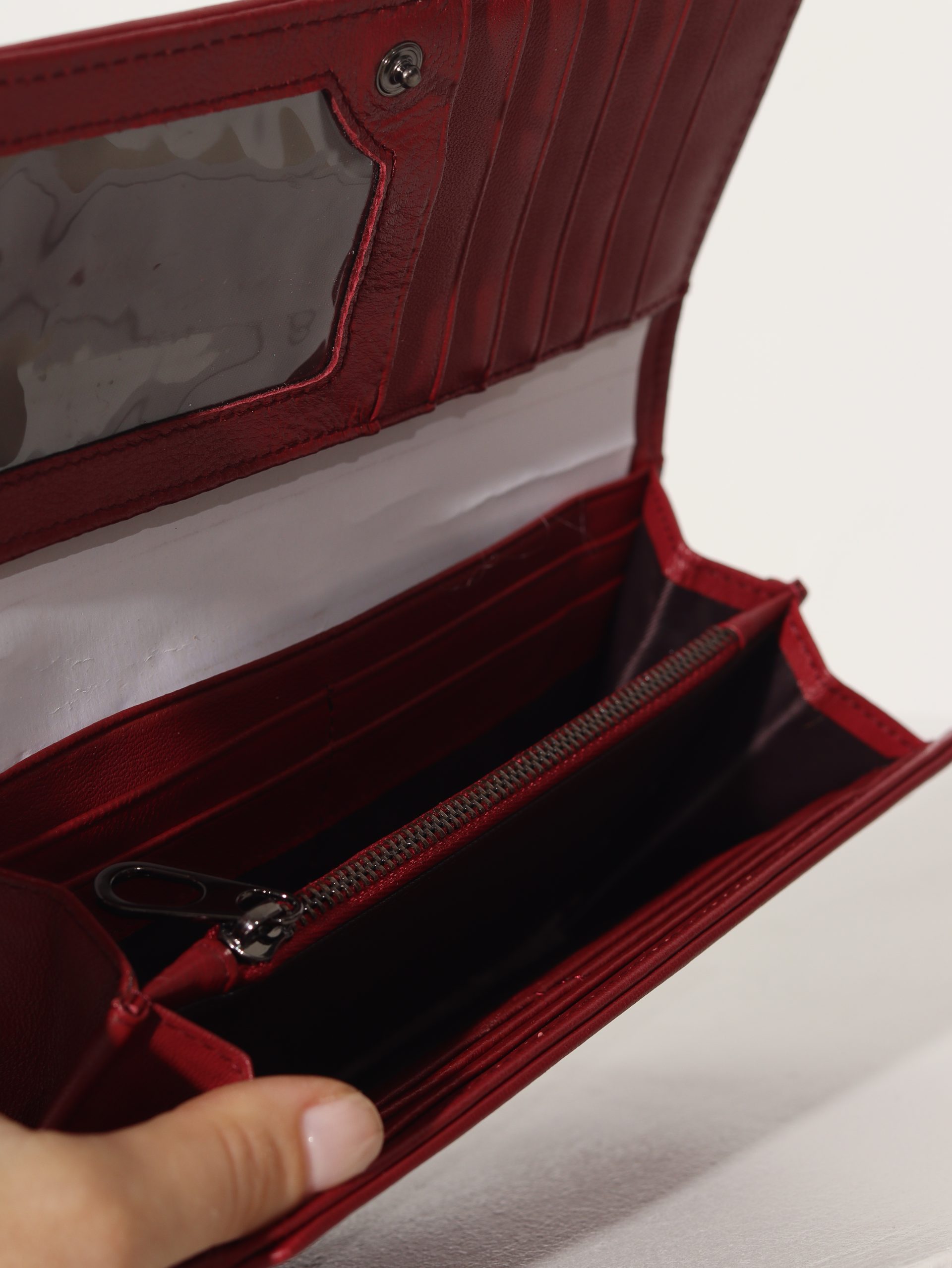 Iekšpusē ir trīs nodalījumi un viens ar rāvējslēdzēju aizverams nodalījums monētām. Sānos ir iestrādāti nodalījumi kartēm, kā arī iekšpusē ir viena caurspīdīgs nodalījums.