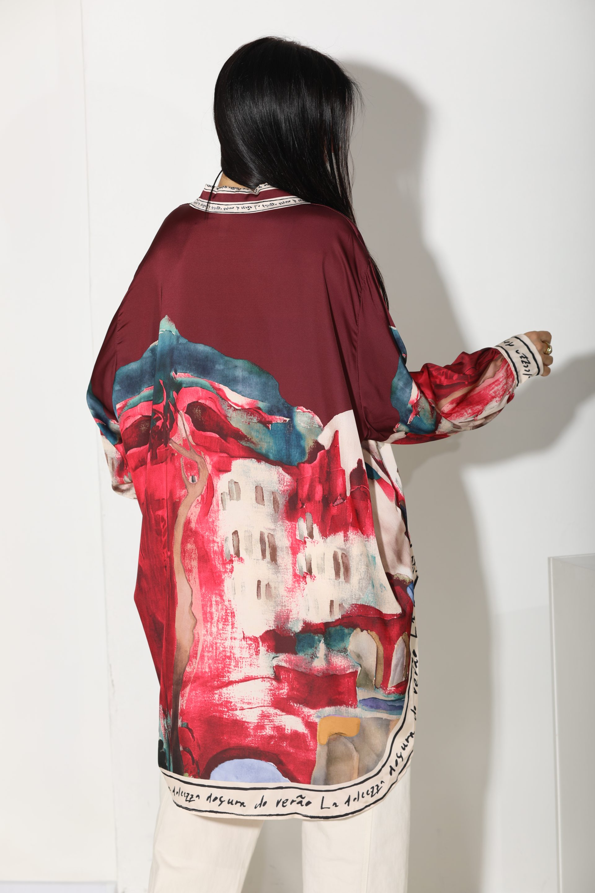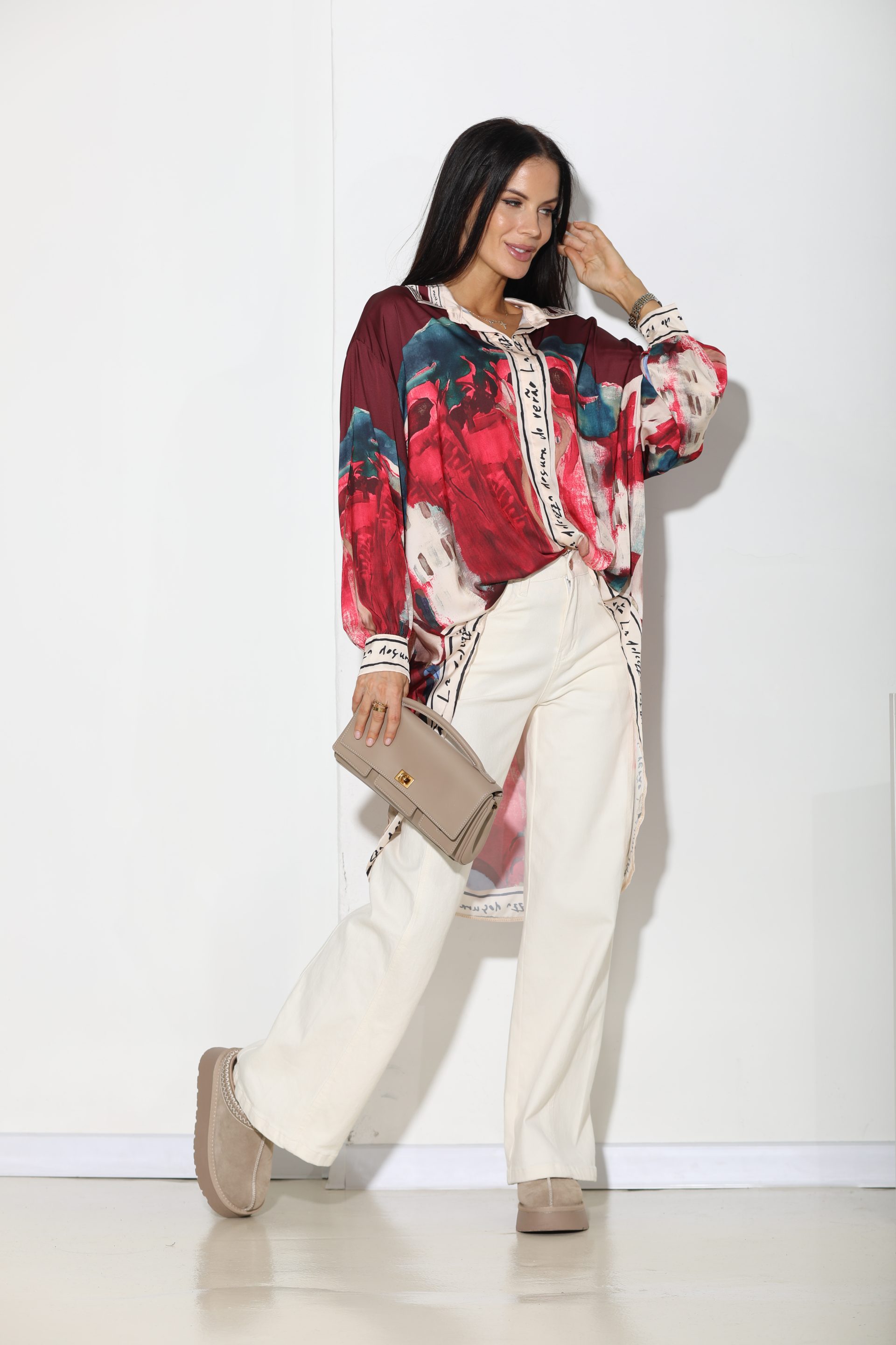 Klasiska blūze/ krekls ar gleznas printu, pagarinājums mugurpuses daļā. Aizdare uz podziņām.