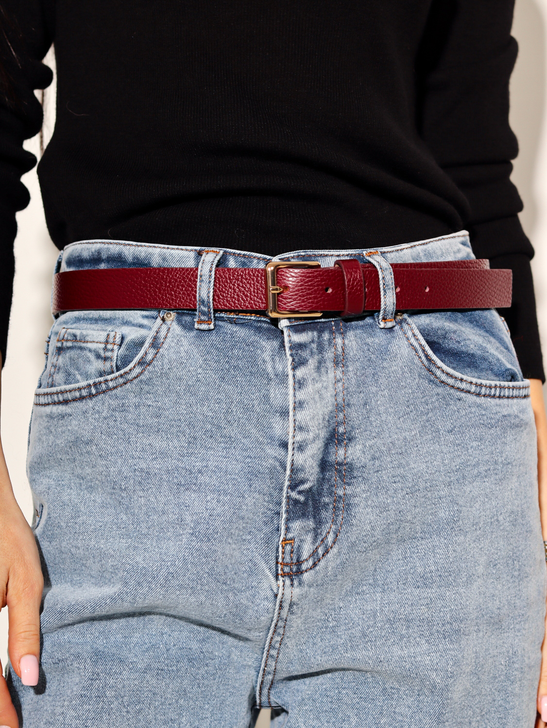 Bordo smalka ādas josta ar zelta sprādzi – 13898