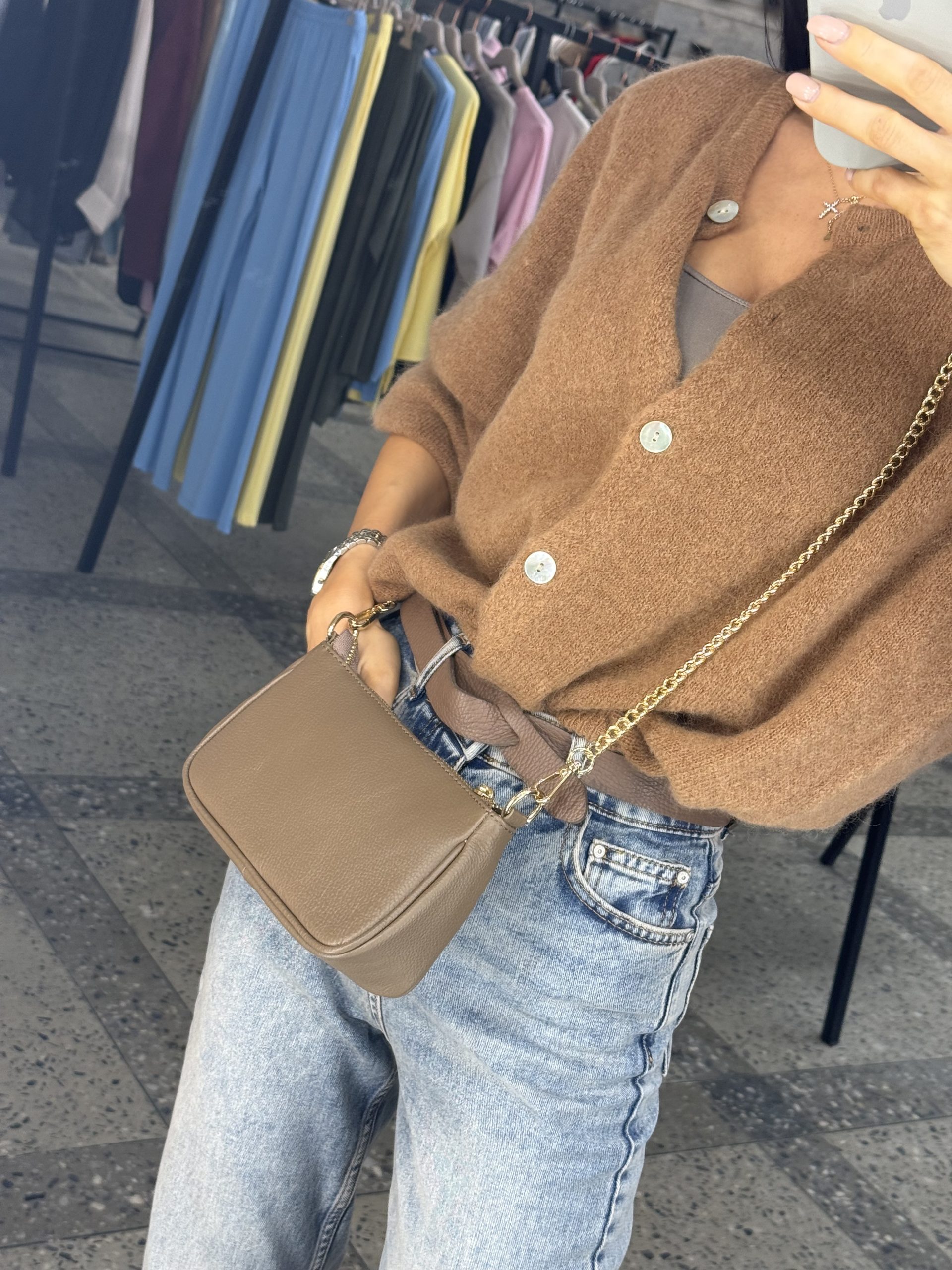 Dabīgās ādas soma, klača stila ar zelta krāsas rāvējslēdzēju un pieliekamu un noņemamu zelta krāsas, metālisku siksniņu.