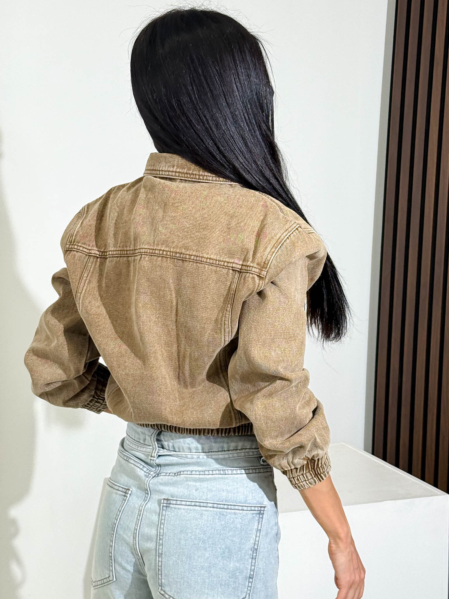 Brūna džinsa bomberjaka ar batikotu efektu – 15913