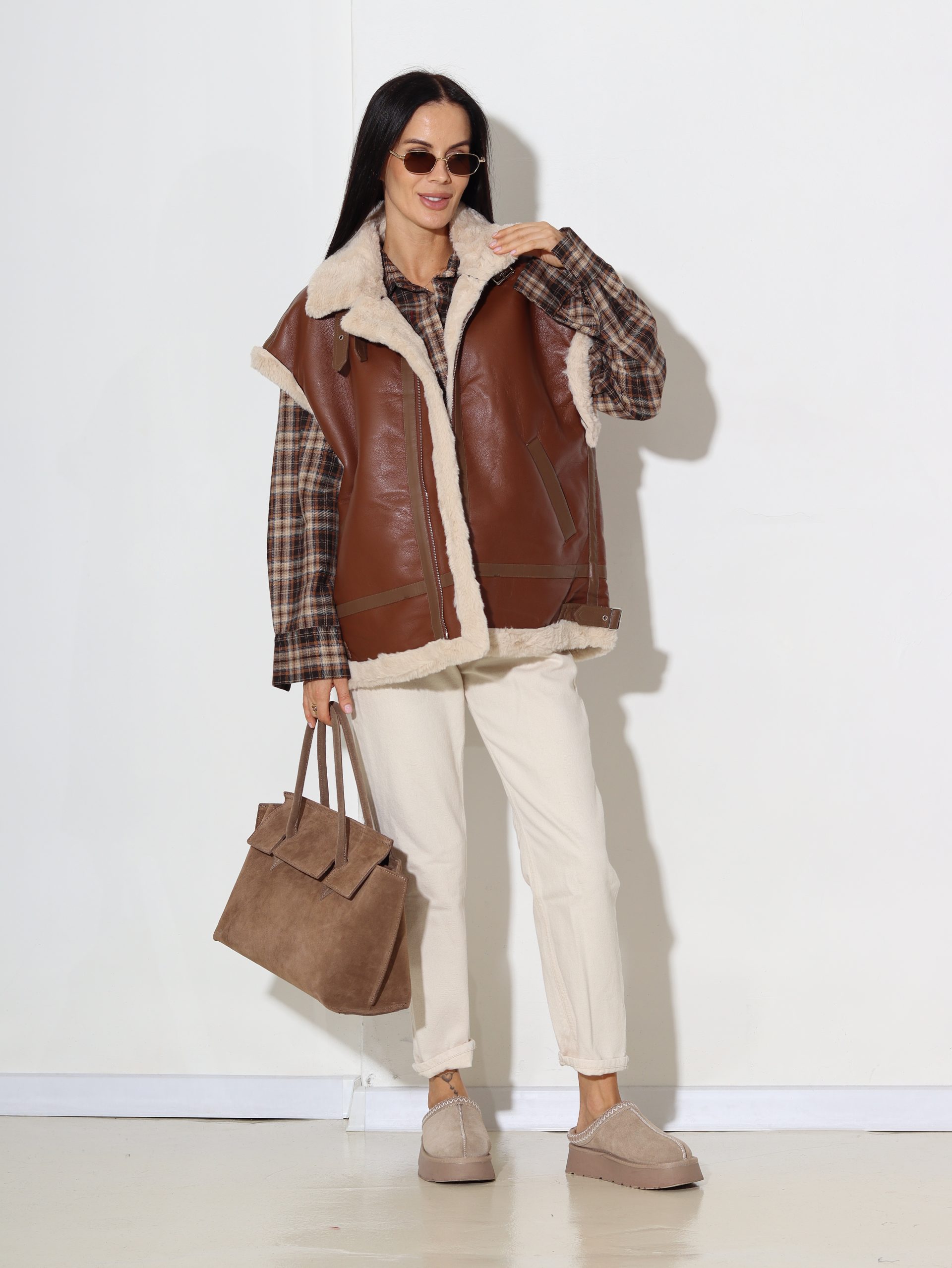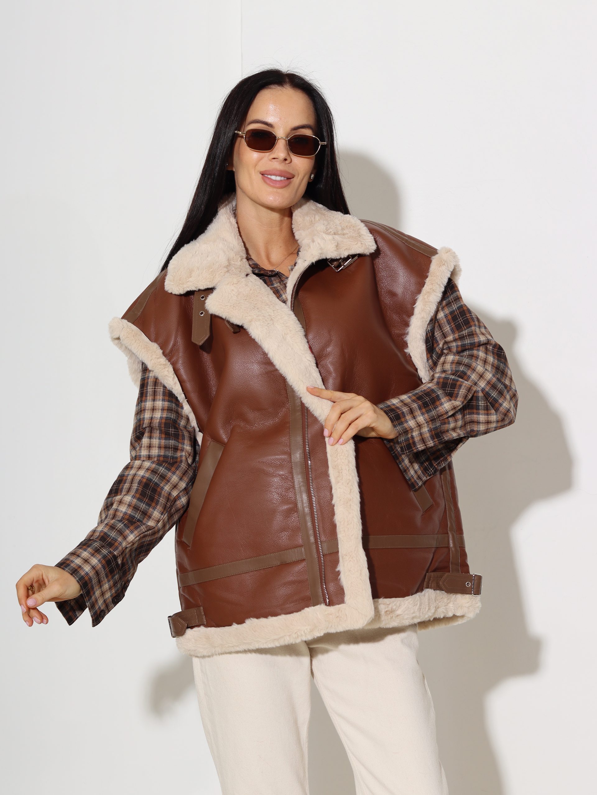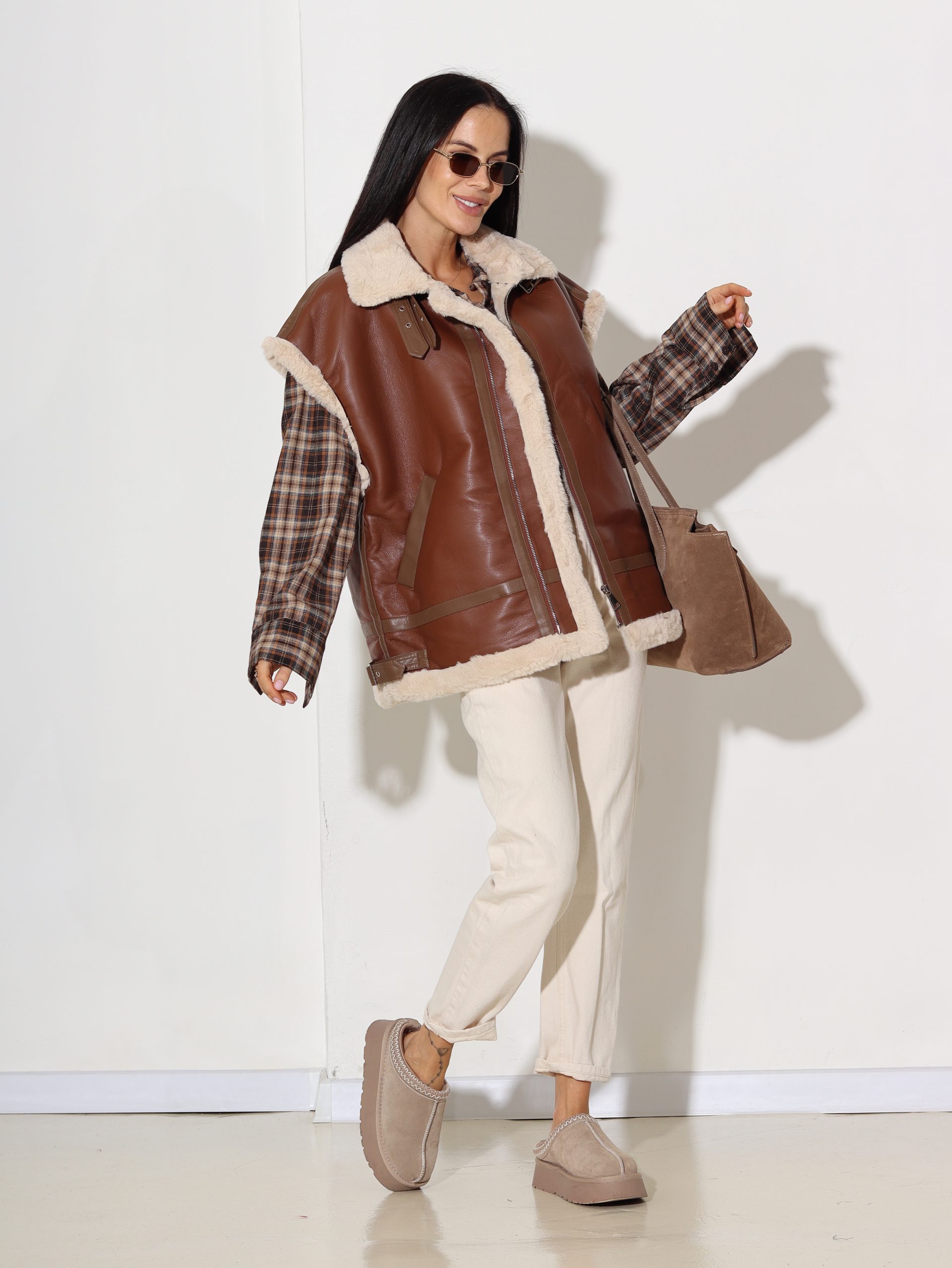 Brūna m/ā veste ar pūkainu oderi – 16875