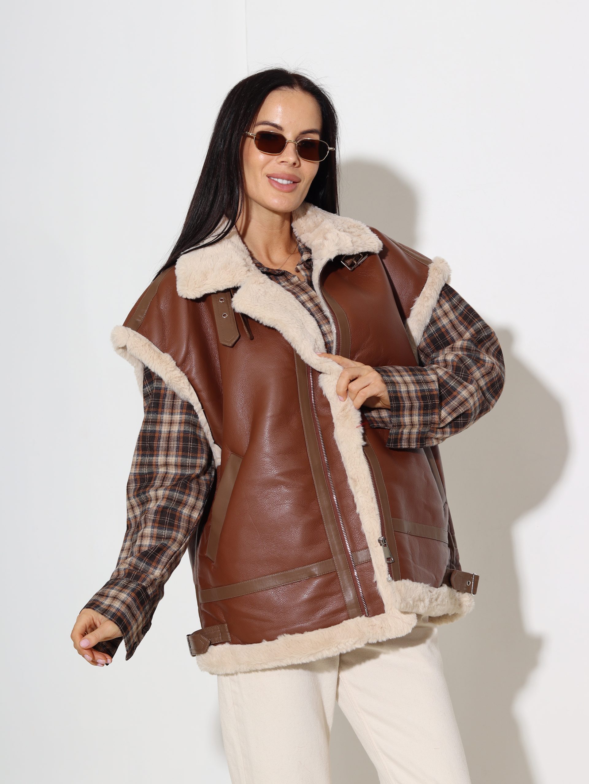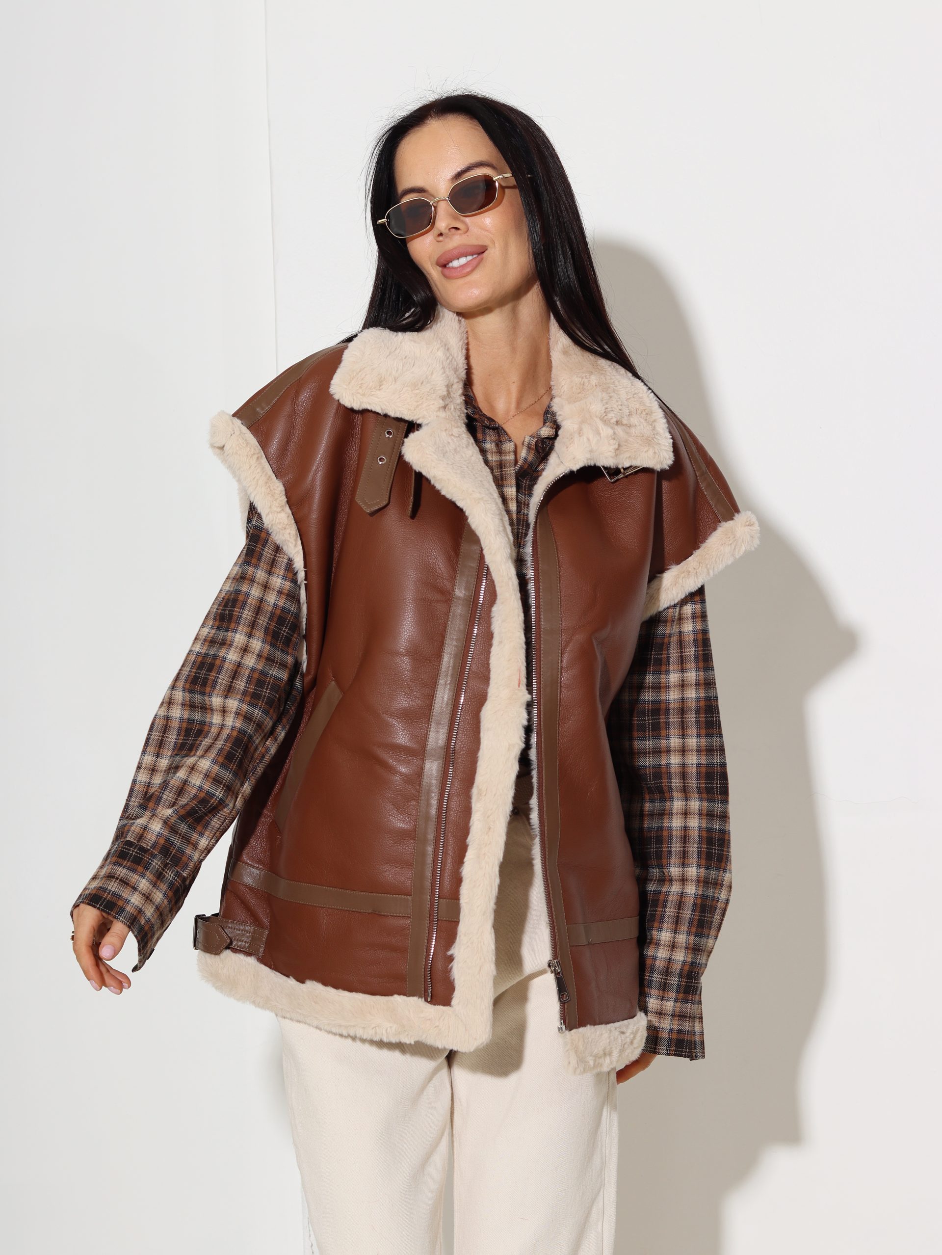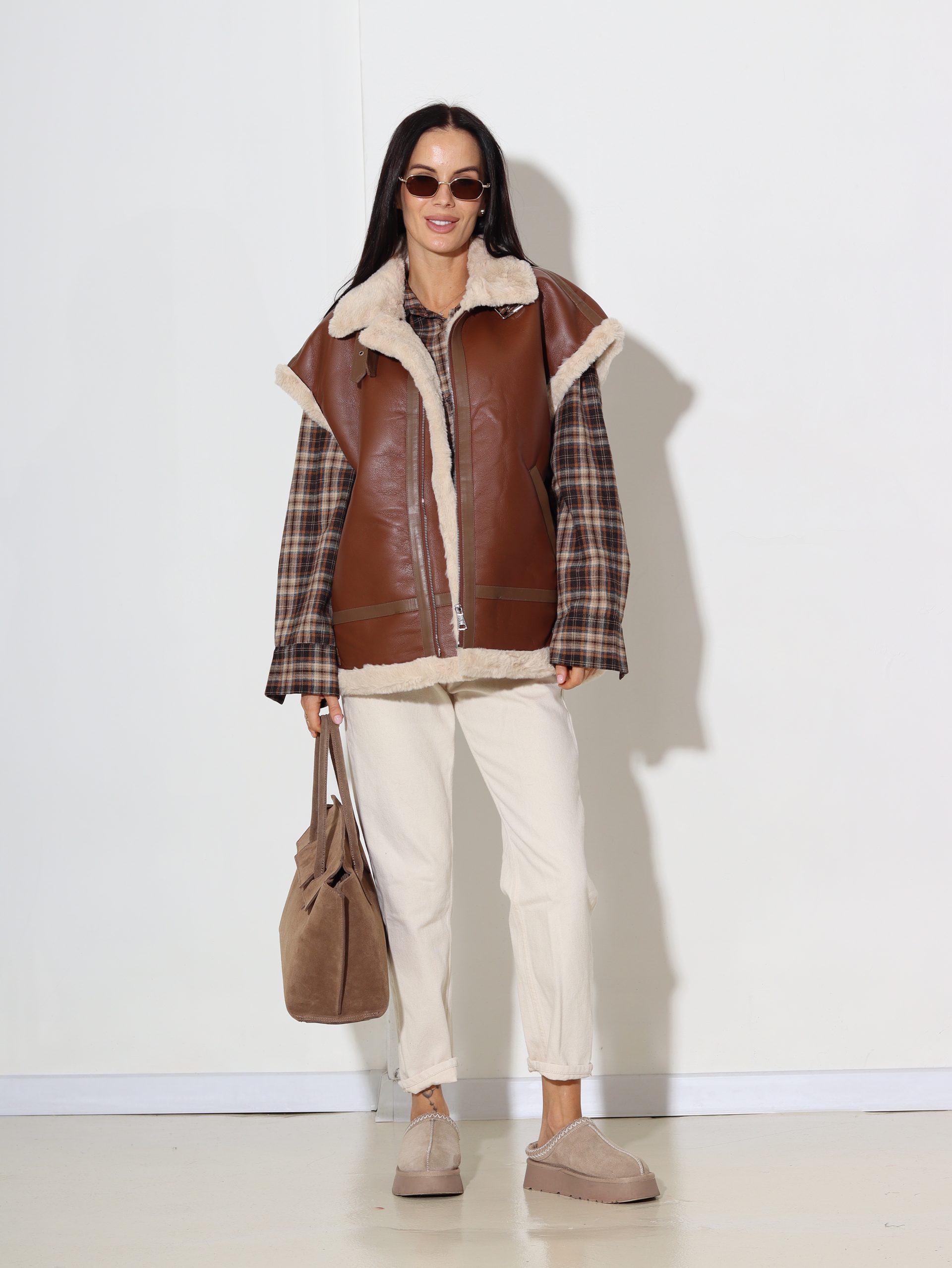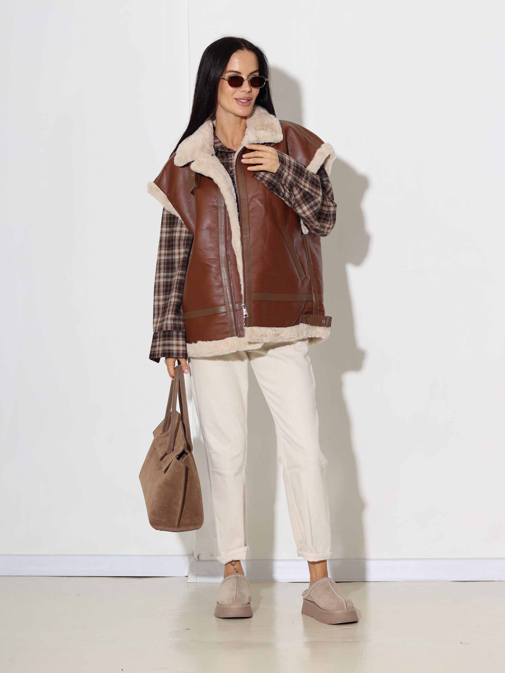 Brūna m/ā veste ar pūkainu oderi – 16875