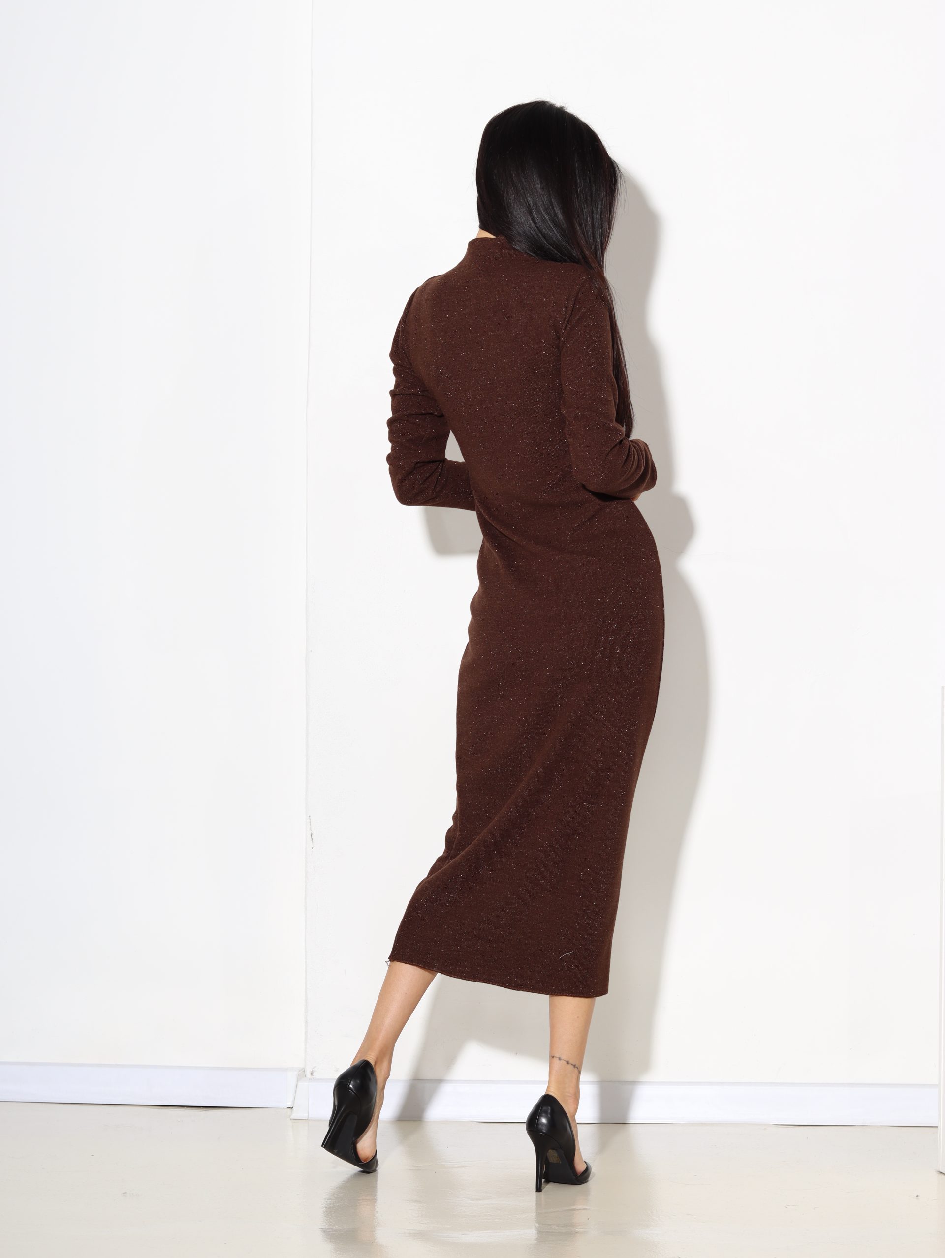 Brūna midī kleita uz augumu ‘Mirdzumiņš’ – 17121