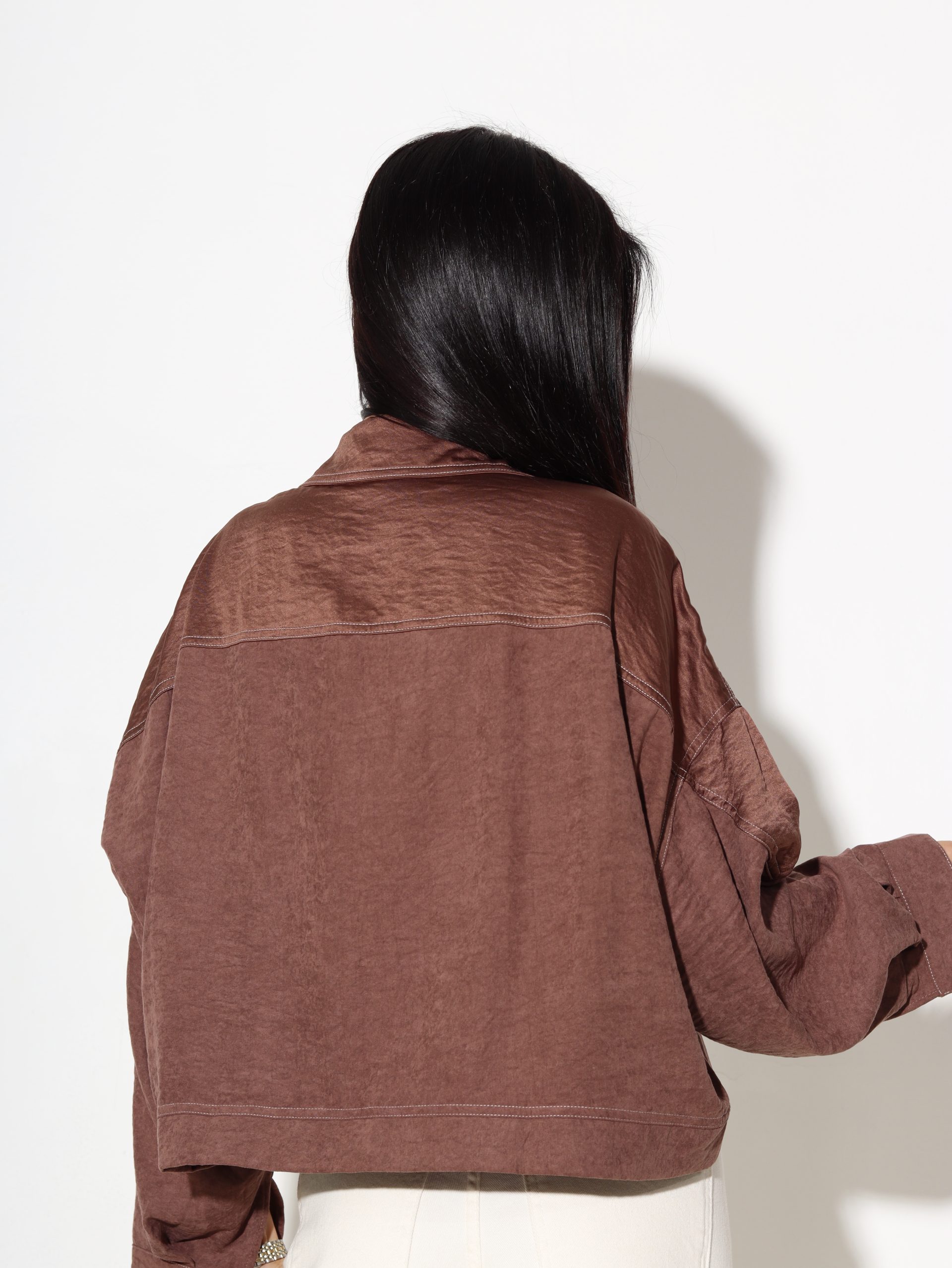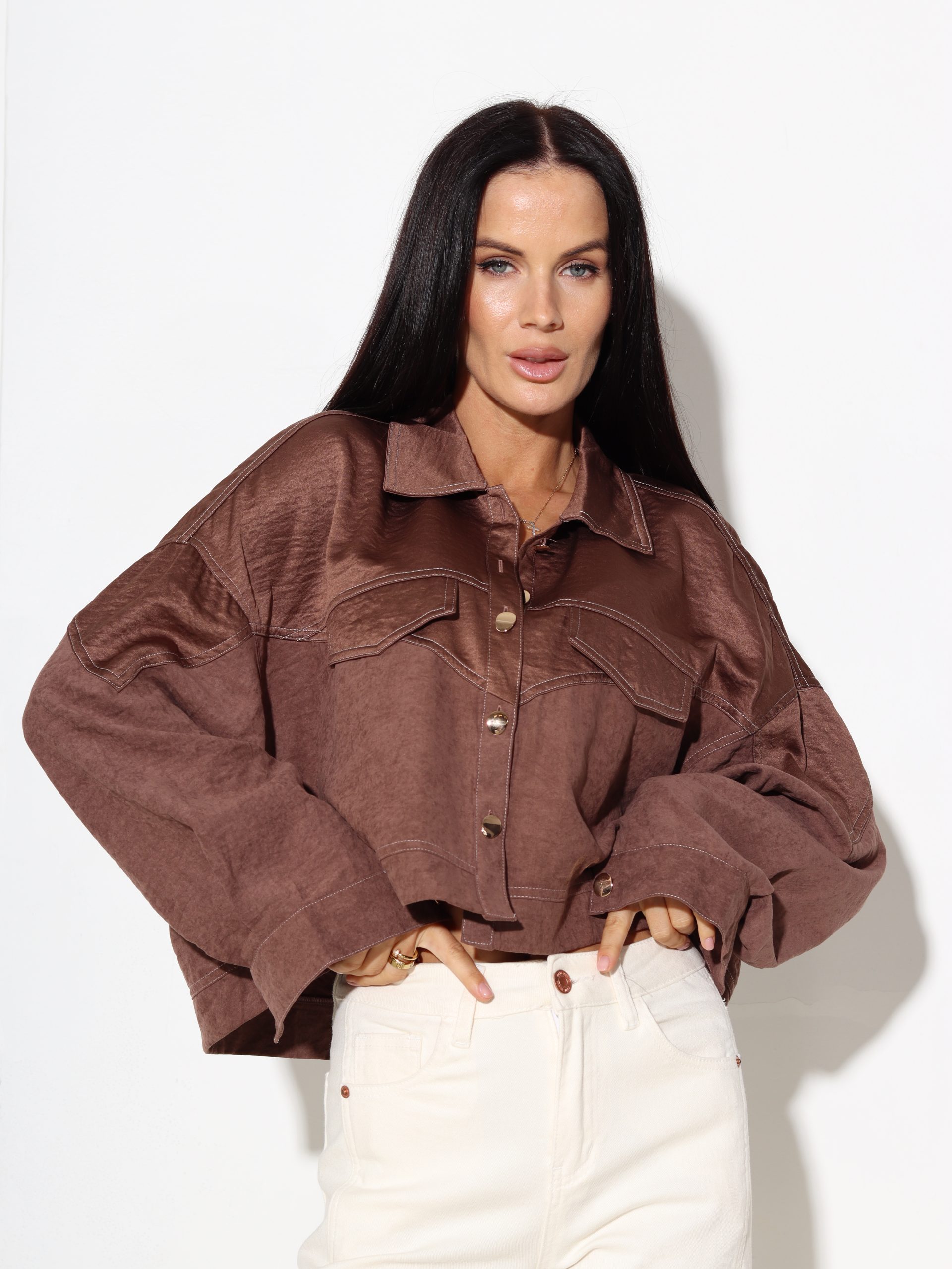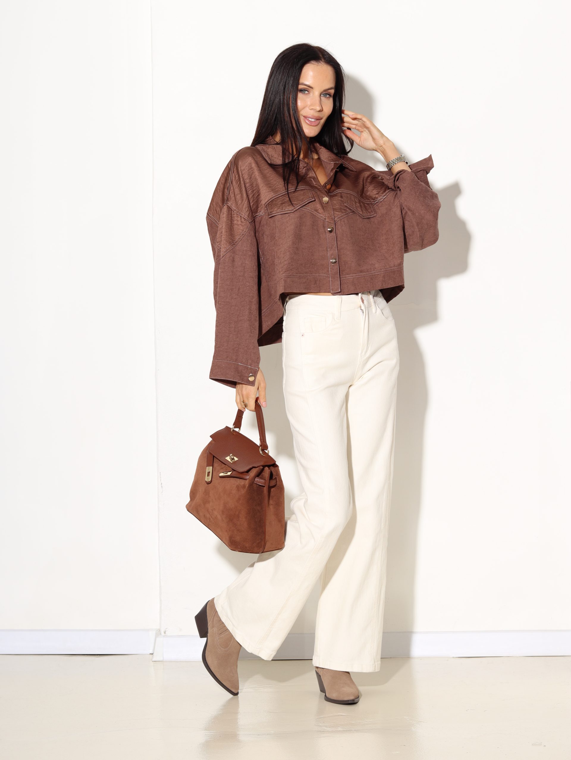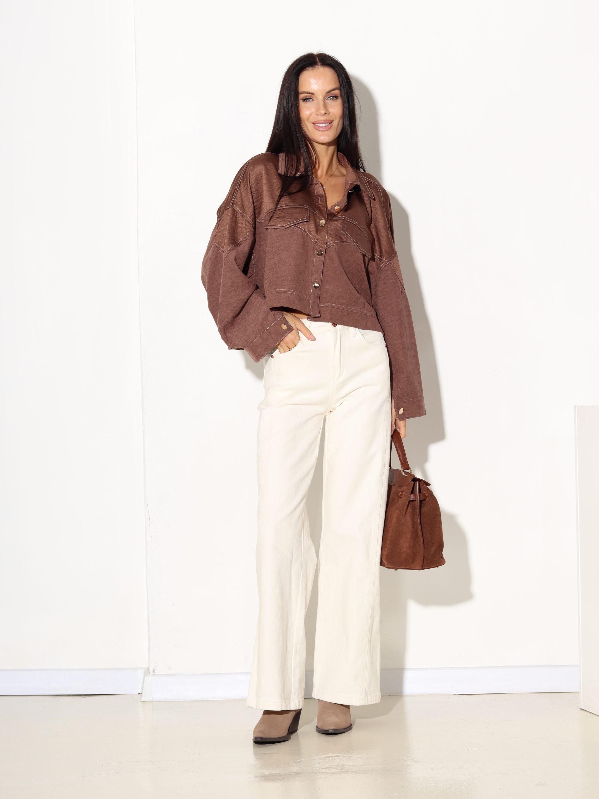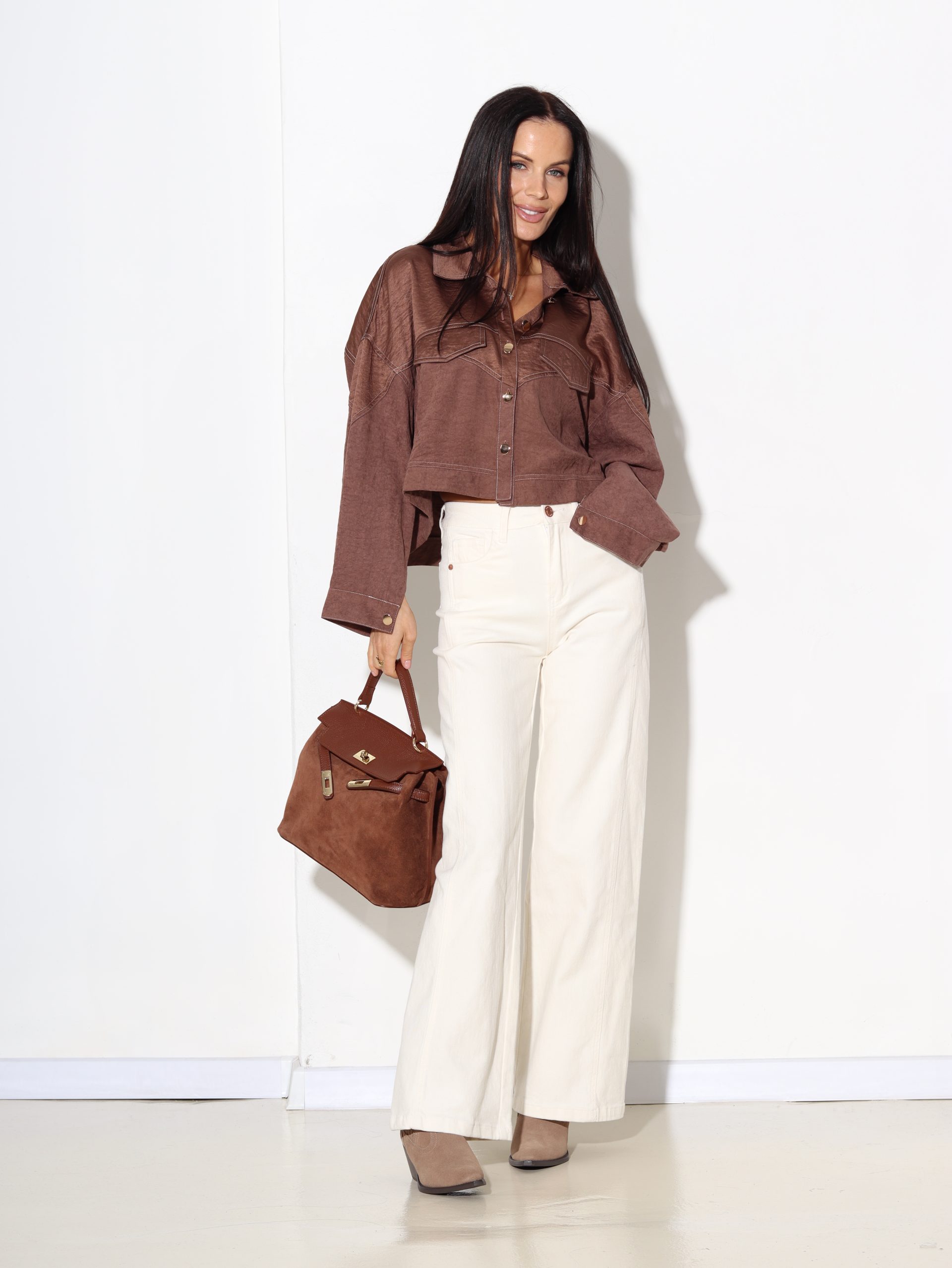 Brūna saīsināts krekls/blūze, balta diedziņa šuvums – 17066