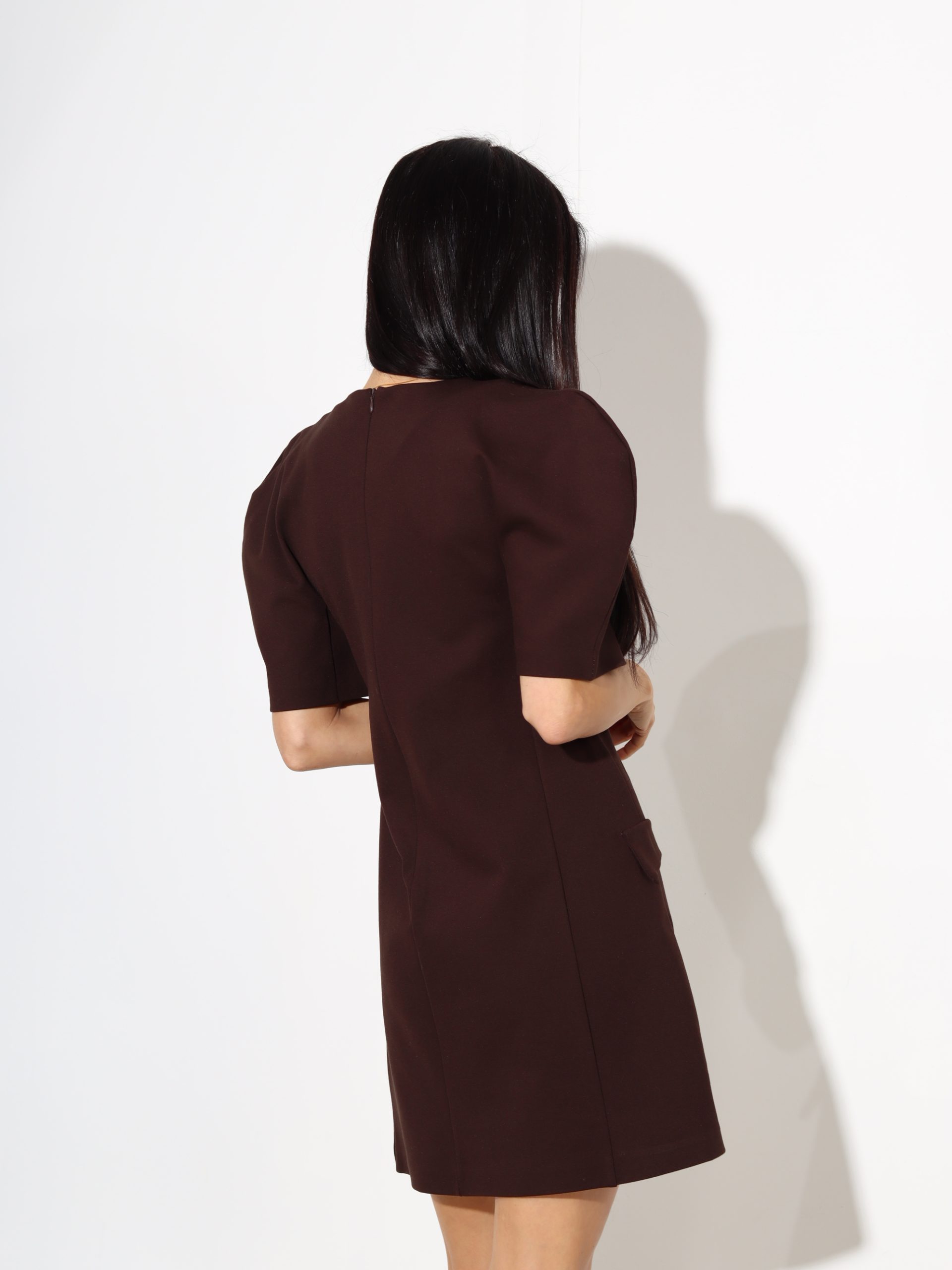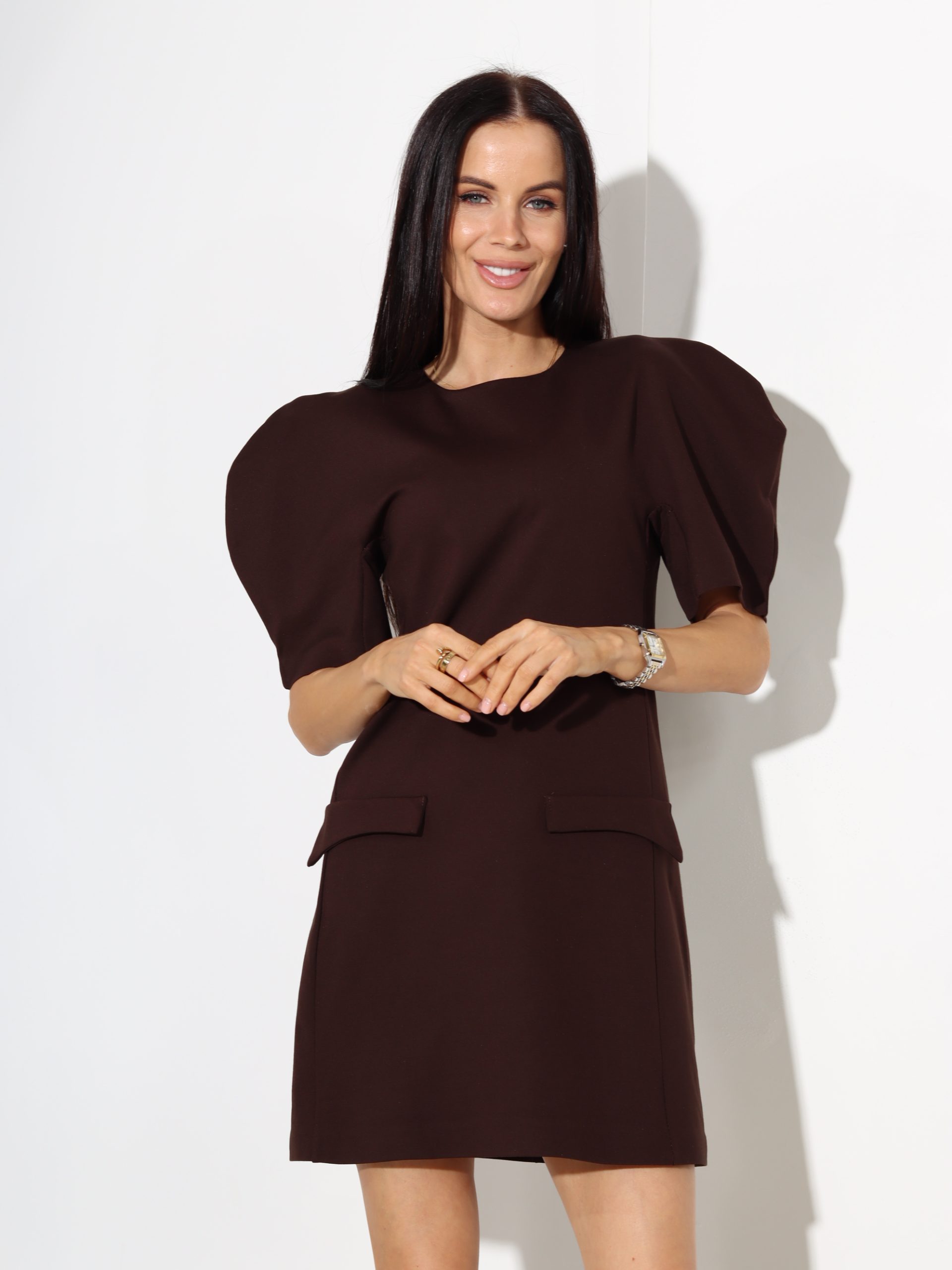 Brūnas krāsas īsa kleita ar balontipa piedurknēm – 17654