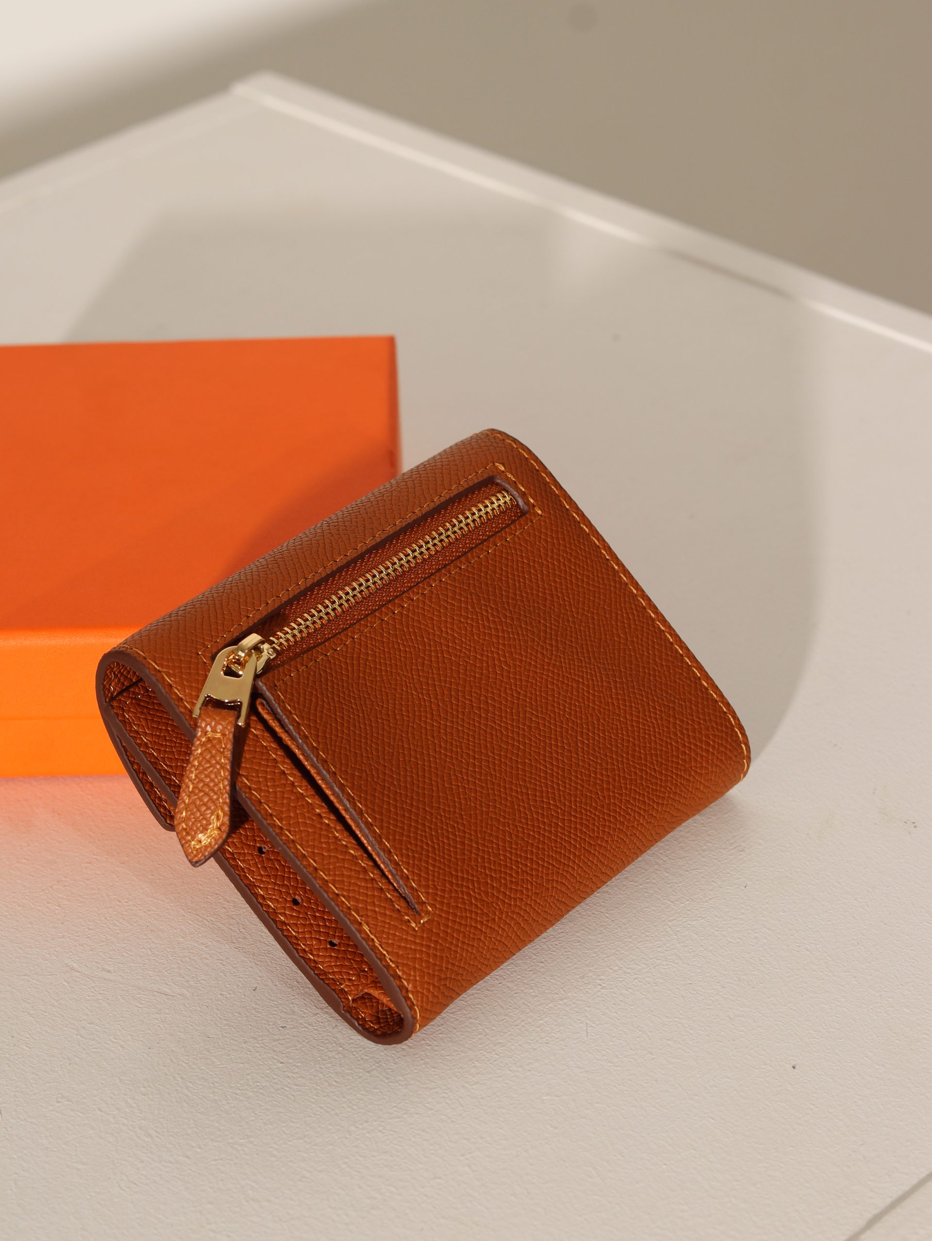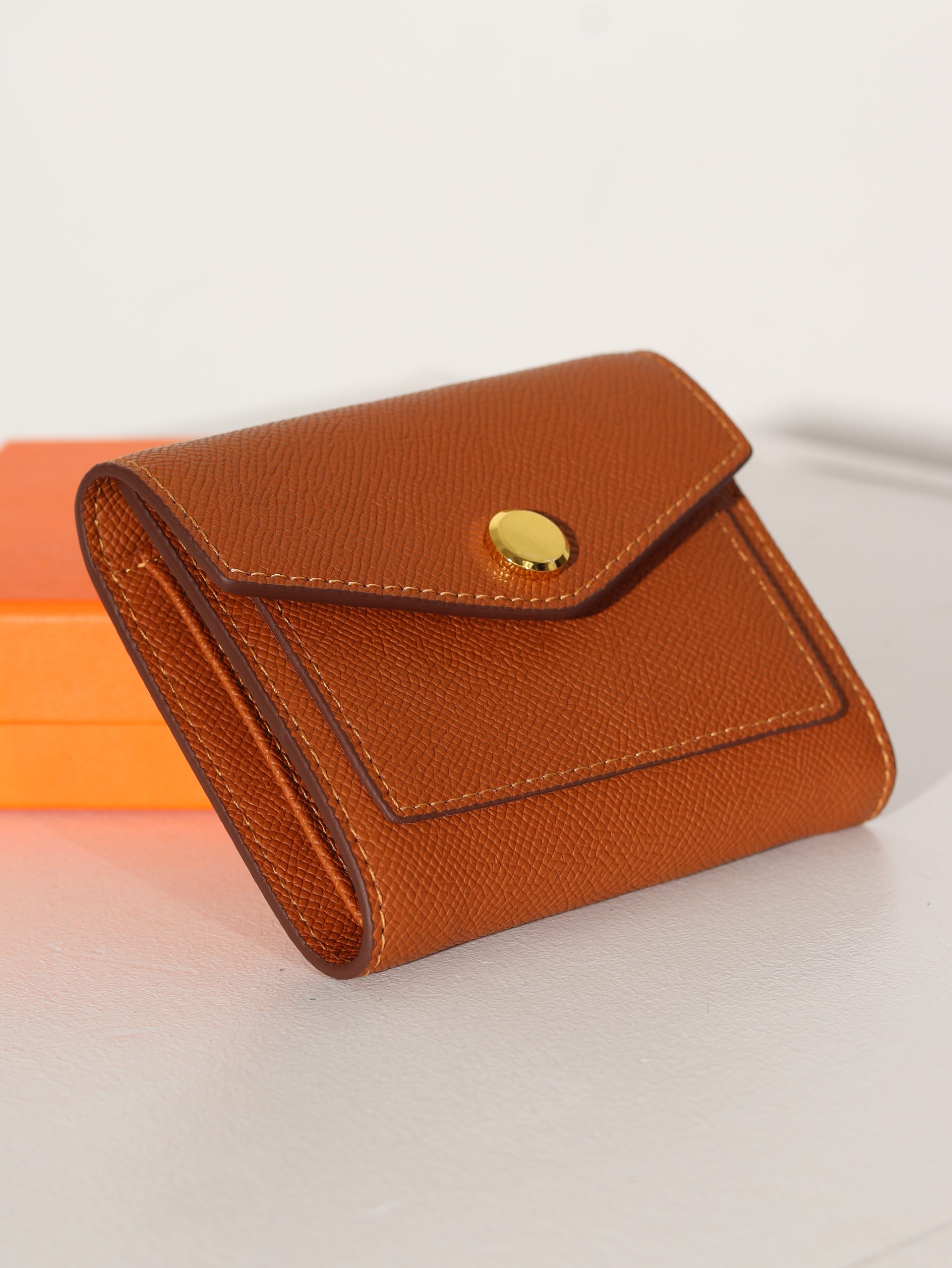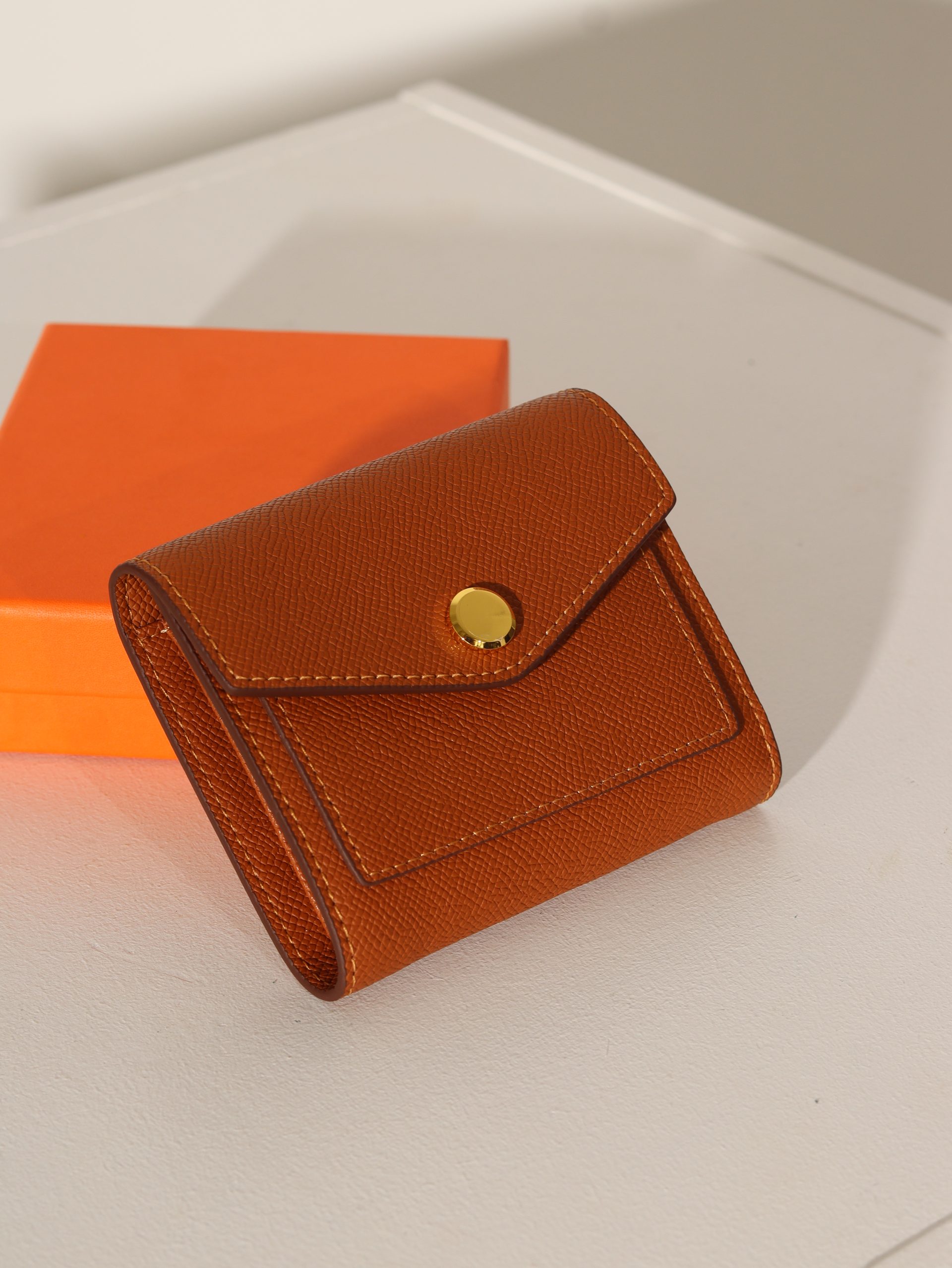 Maza izmēra , dabīgas ādas maks ar spiedpogas aizdari. Priekšpusē ir neliela kabatiņa kartēm, mugurpusē ir neliela ar zelta krāsas rāvējslēdzēju aizverama kabata monētām. Maka iekšpusē ir vieta kartēm un platāka vieta banknotēm.