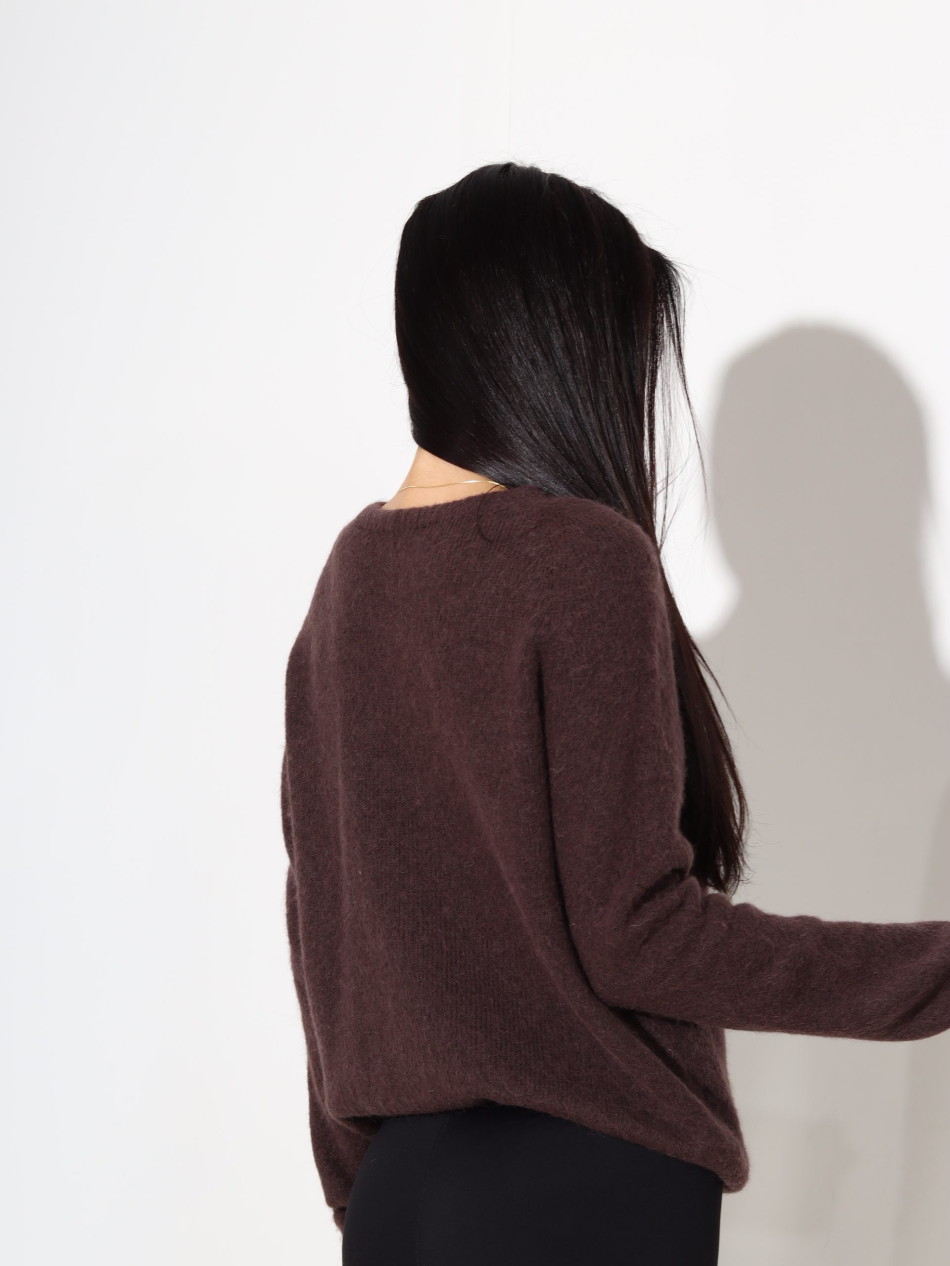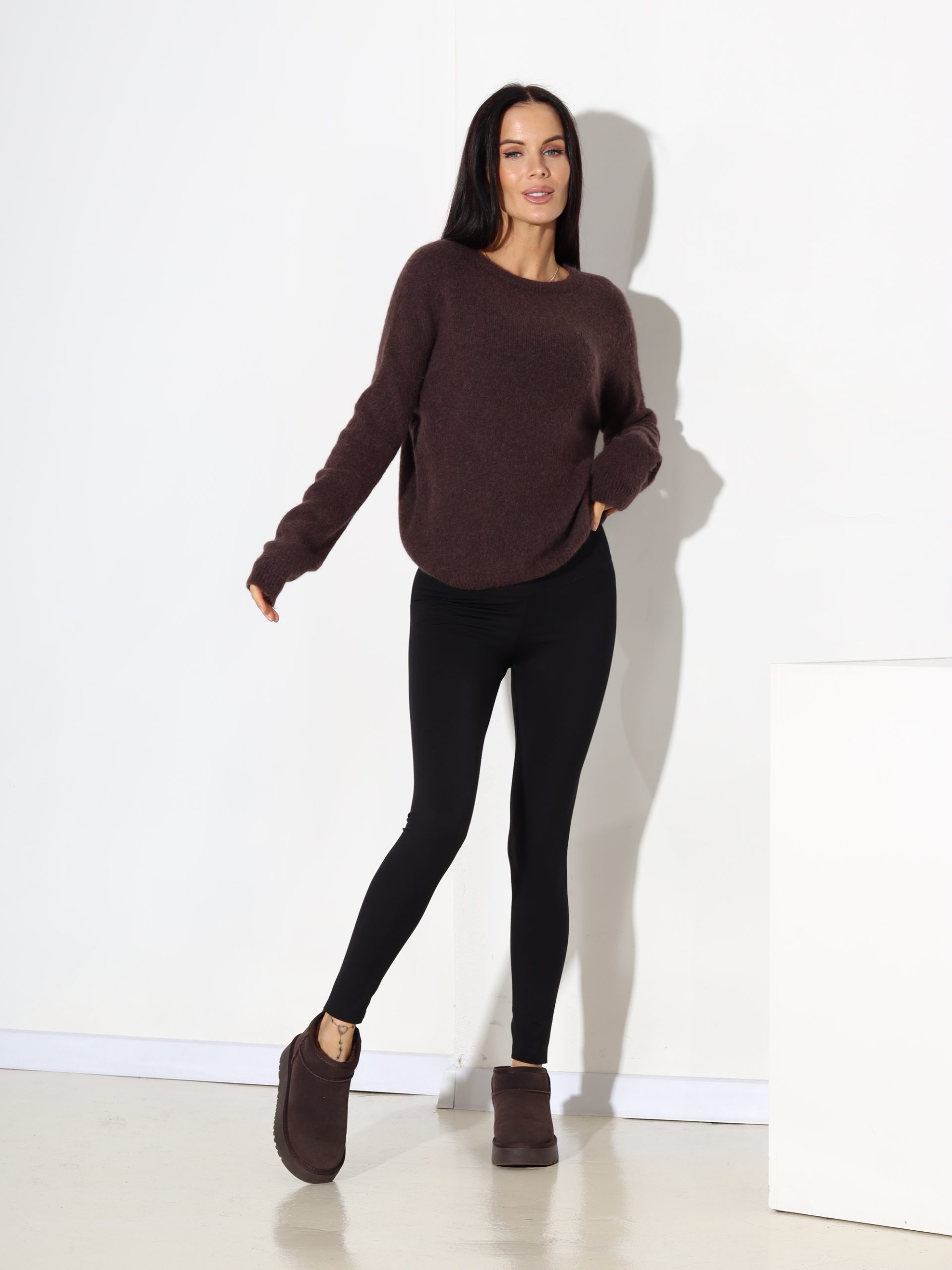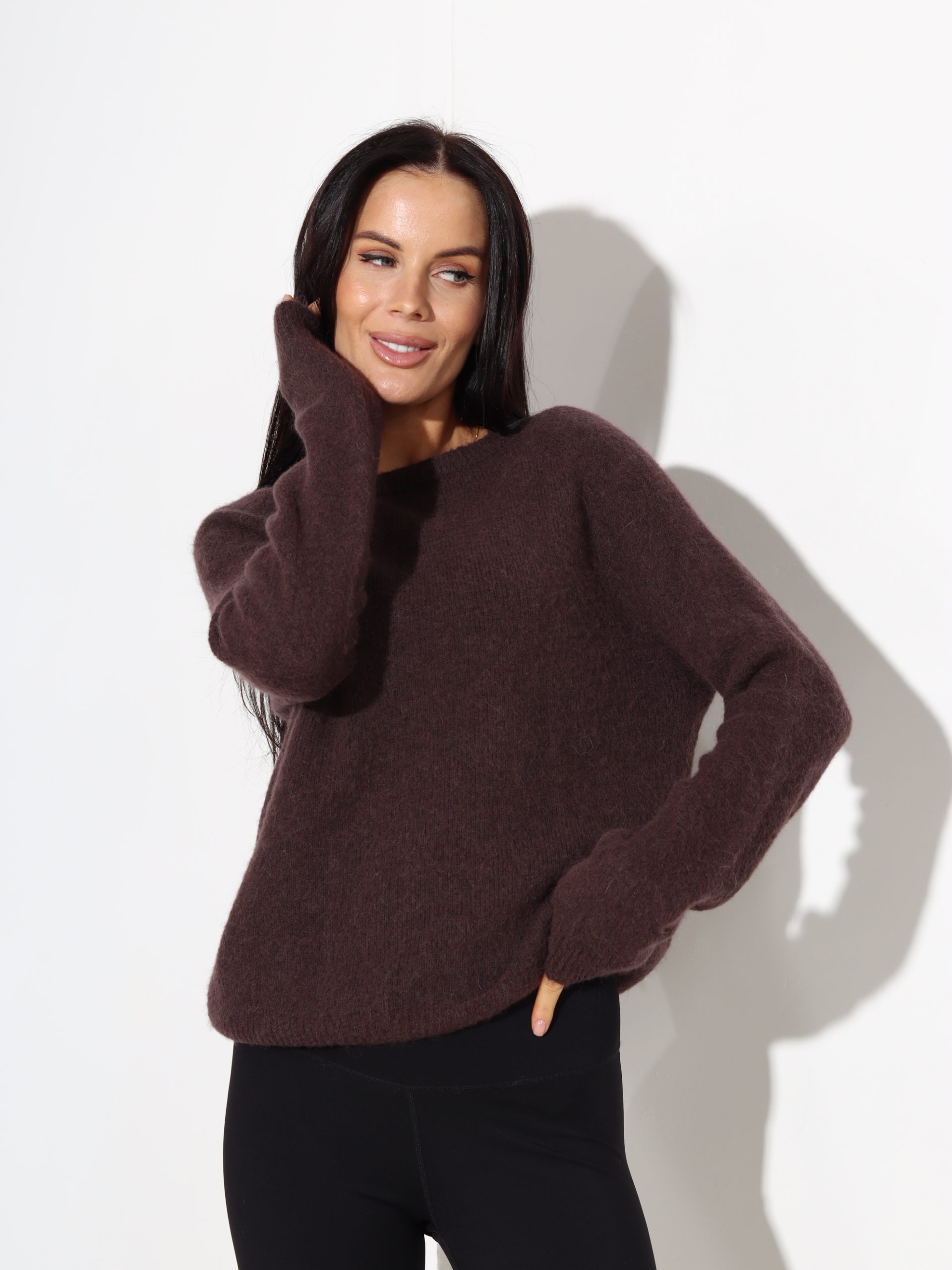 Brūns klasisks smalka adījuma alpakas džemperis – 17720