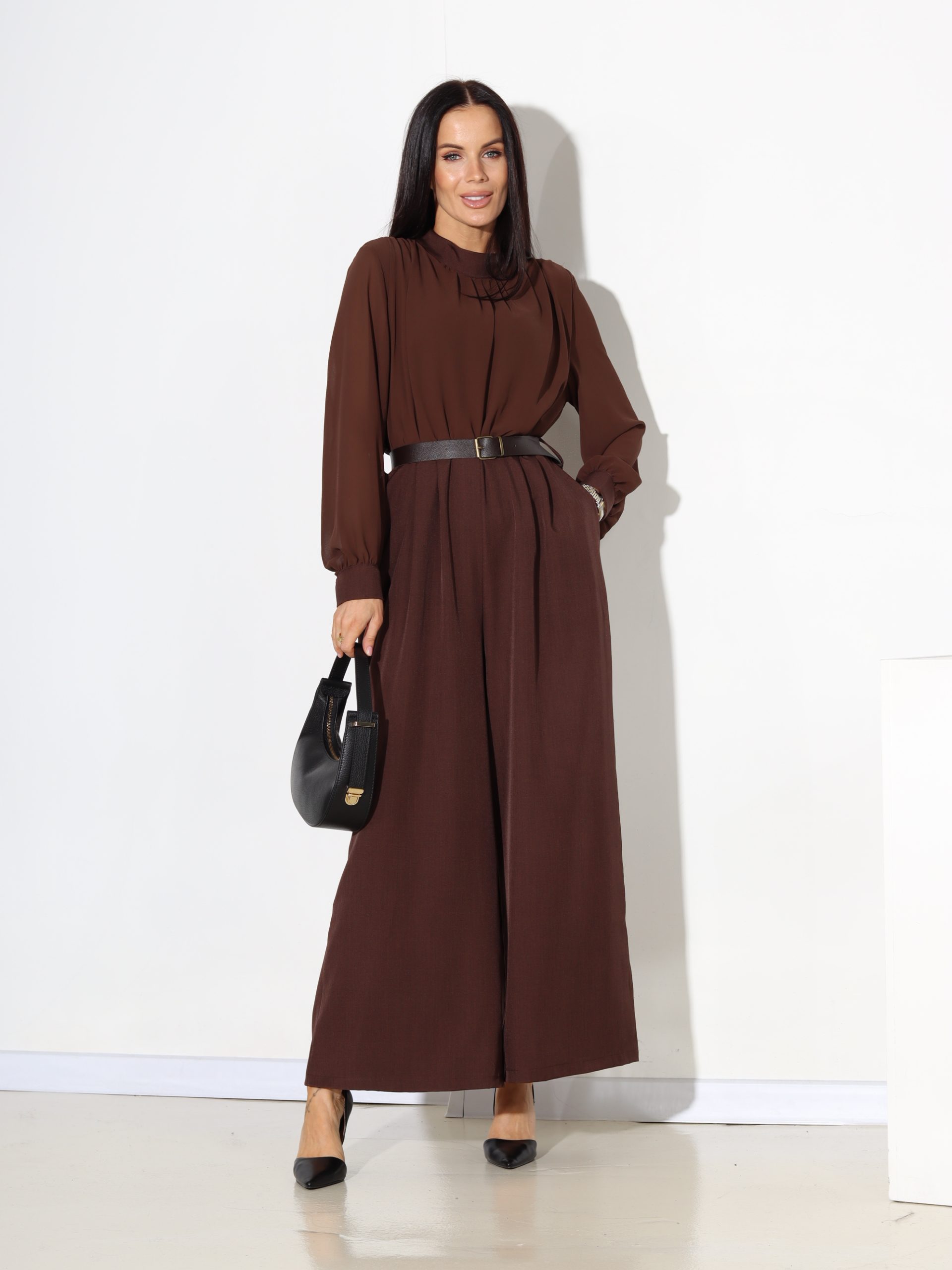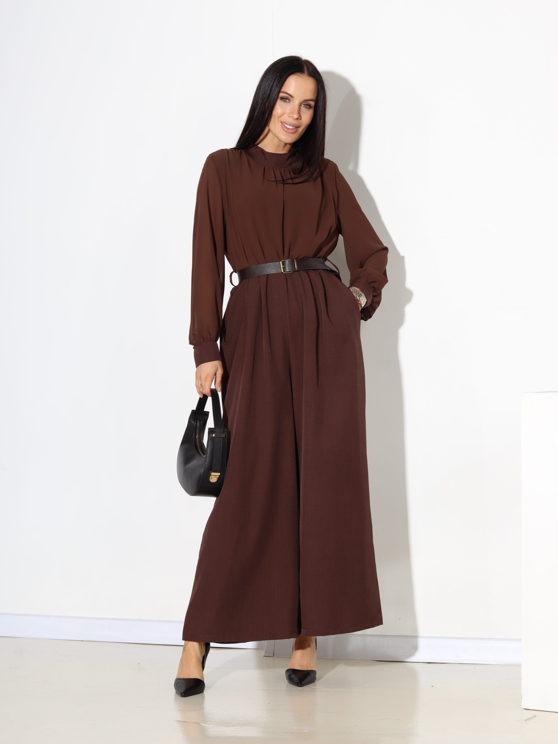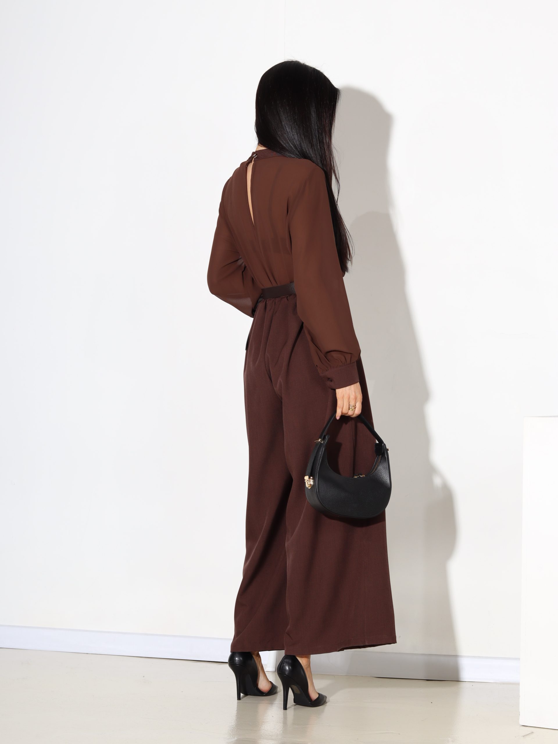 Brūns kombinezons ar garām piedurknēm un jostu – 17671