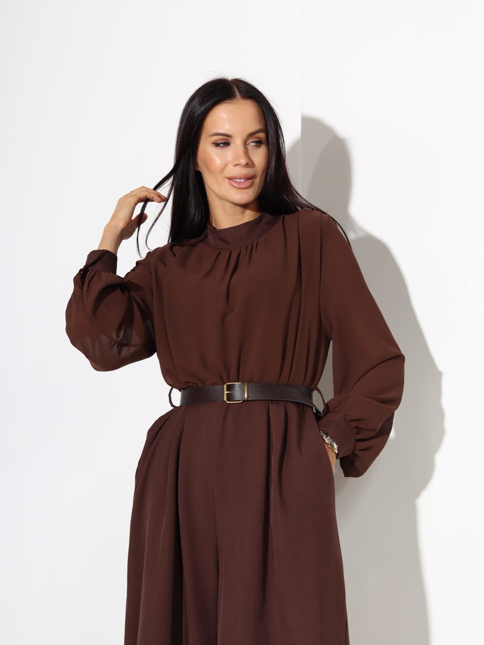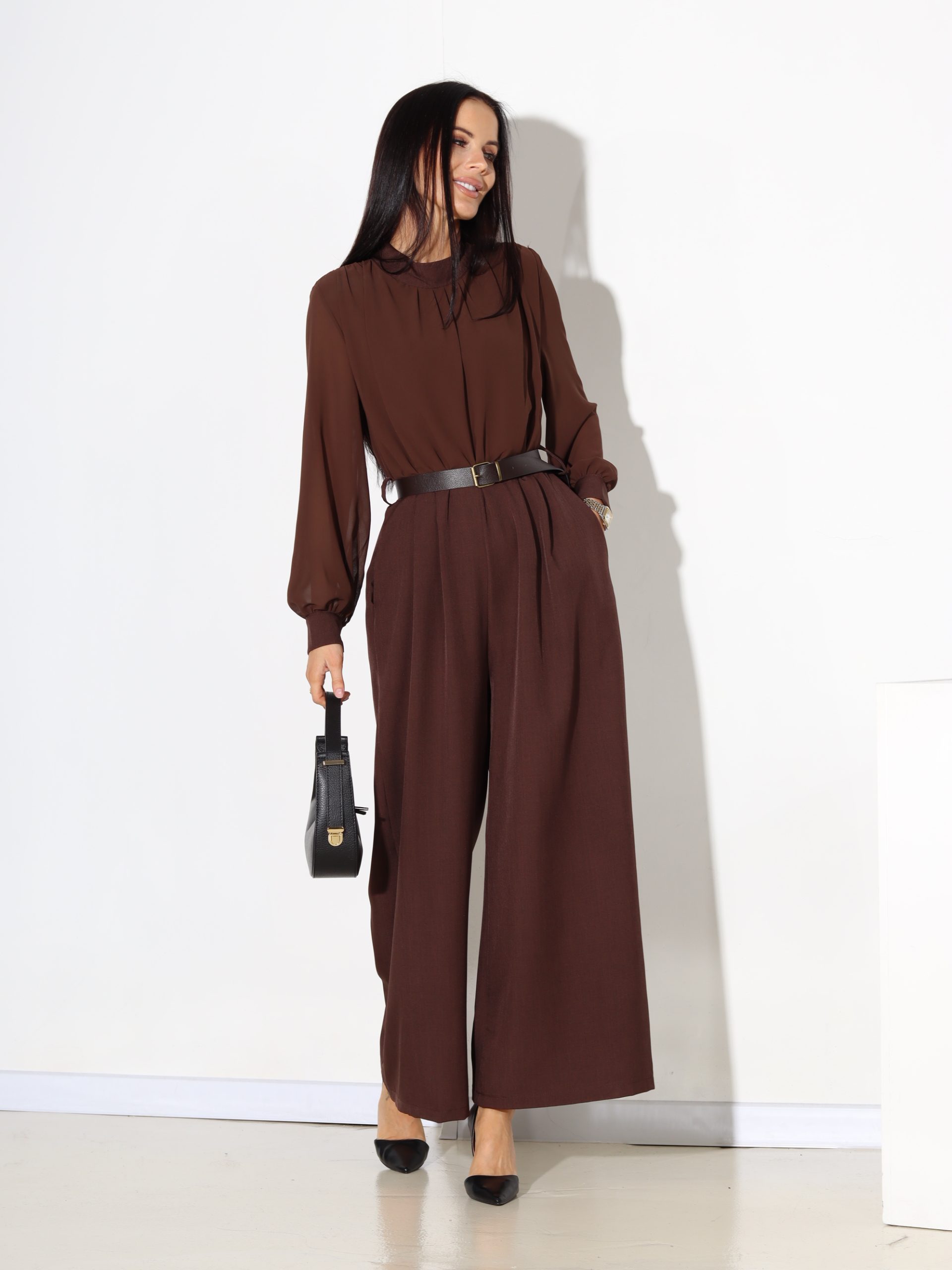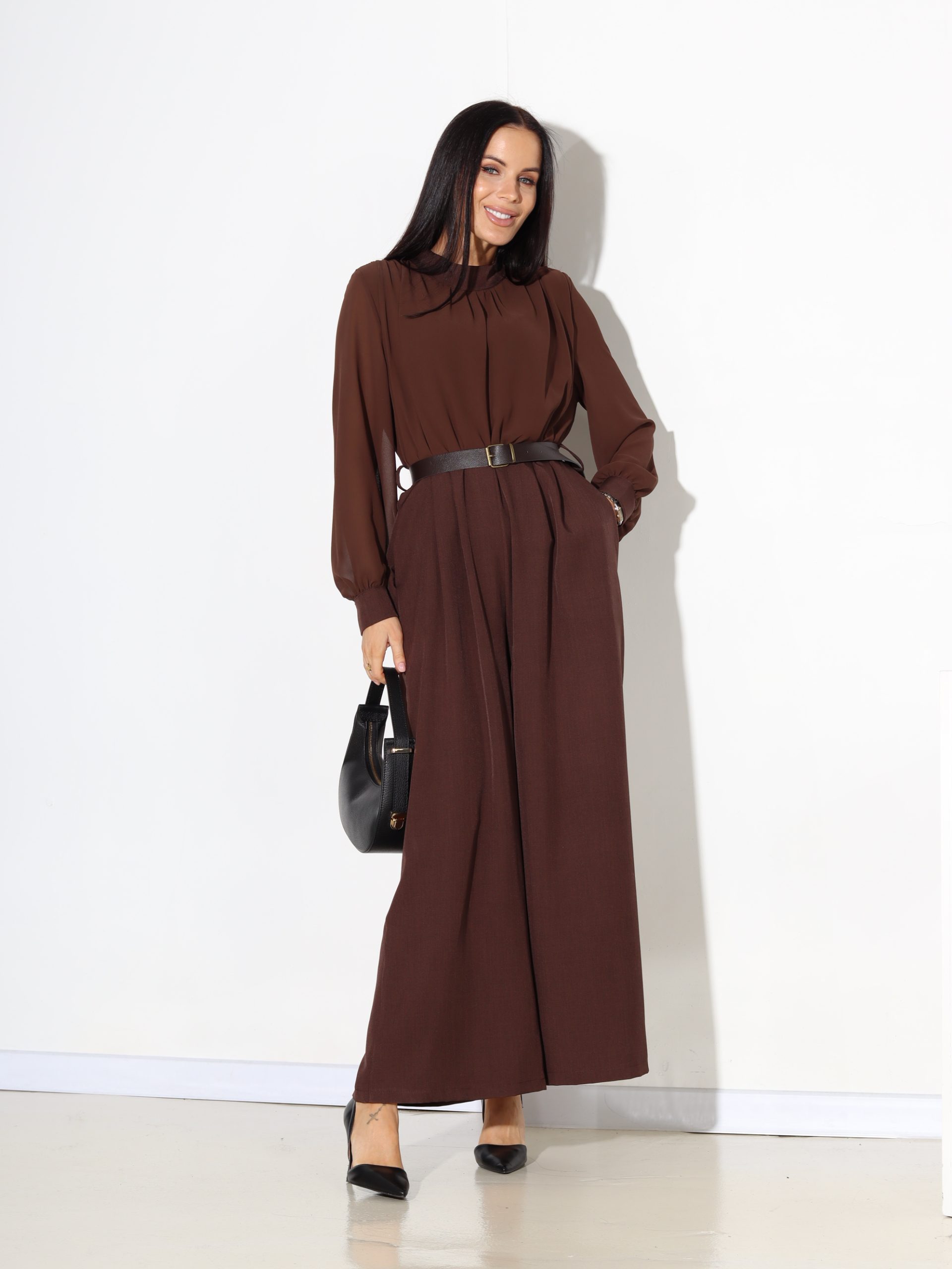 Brūns kombinezons ar garām piedurknēm un jostu – 17671