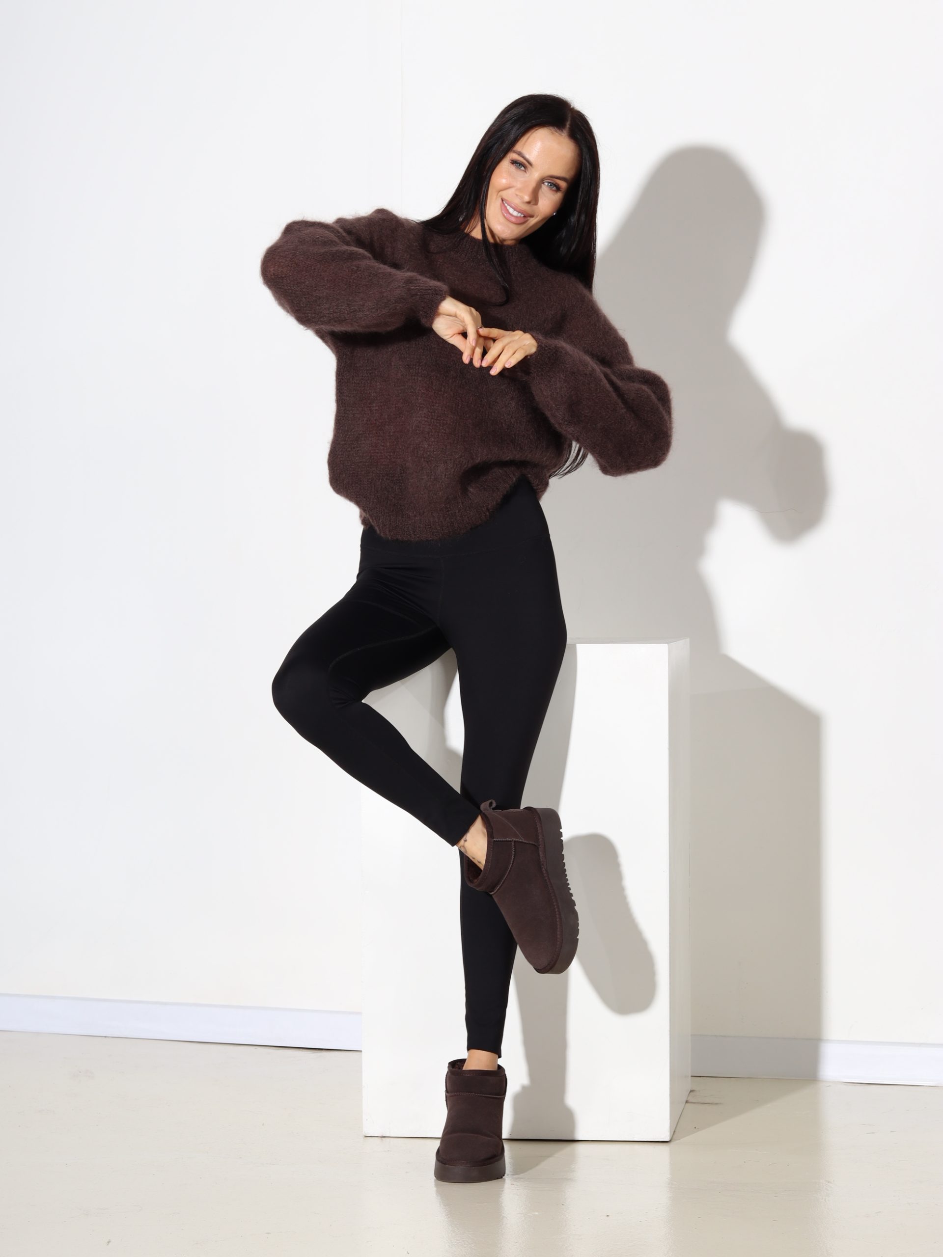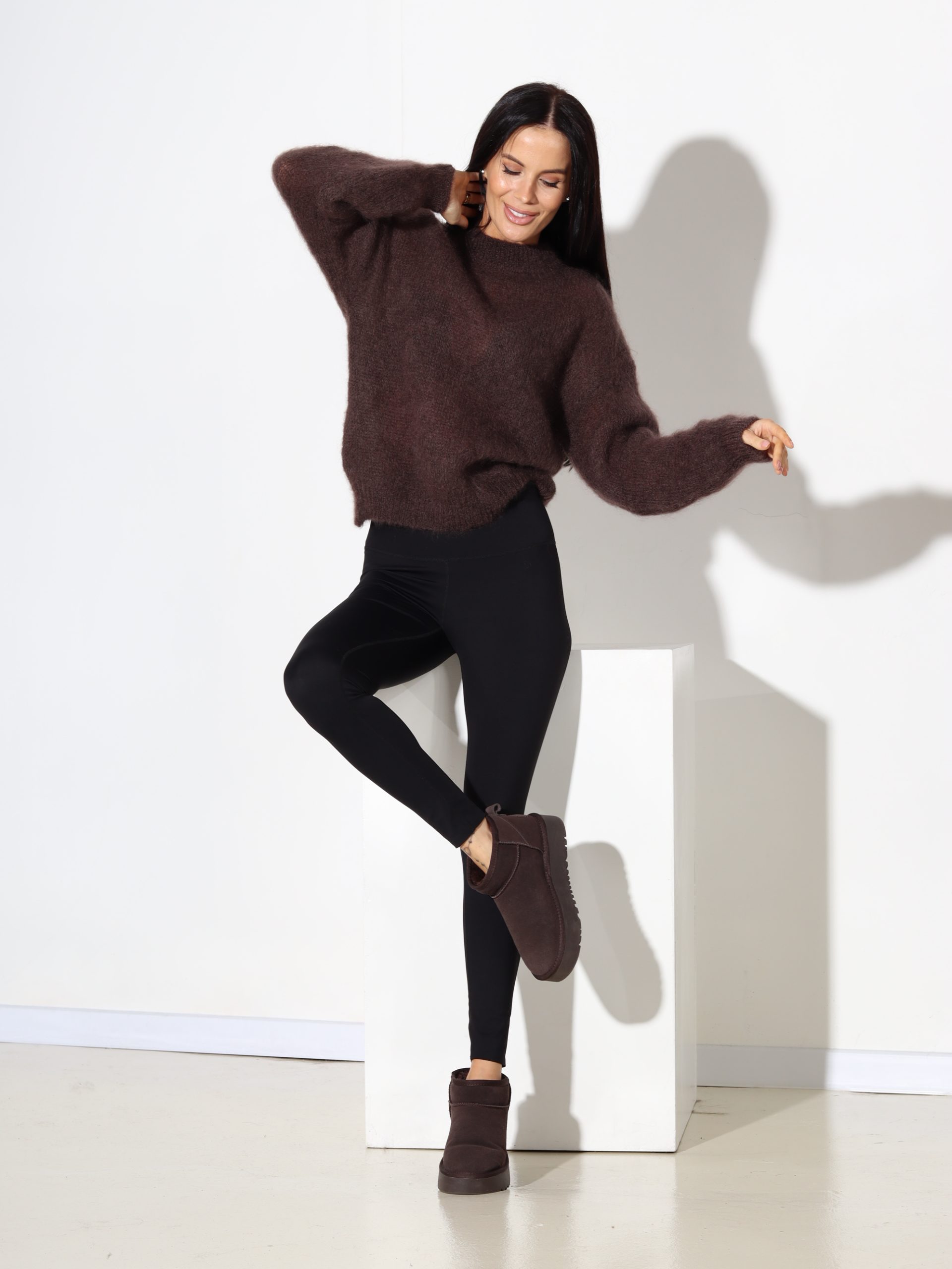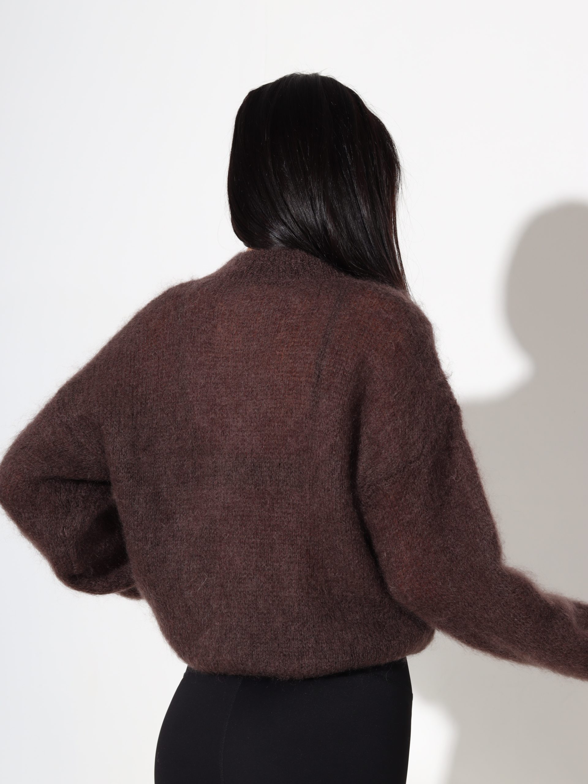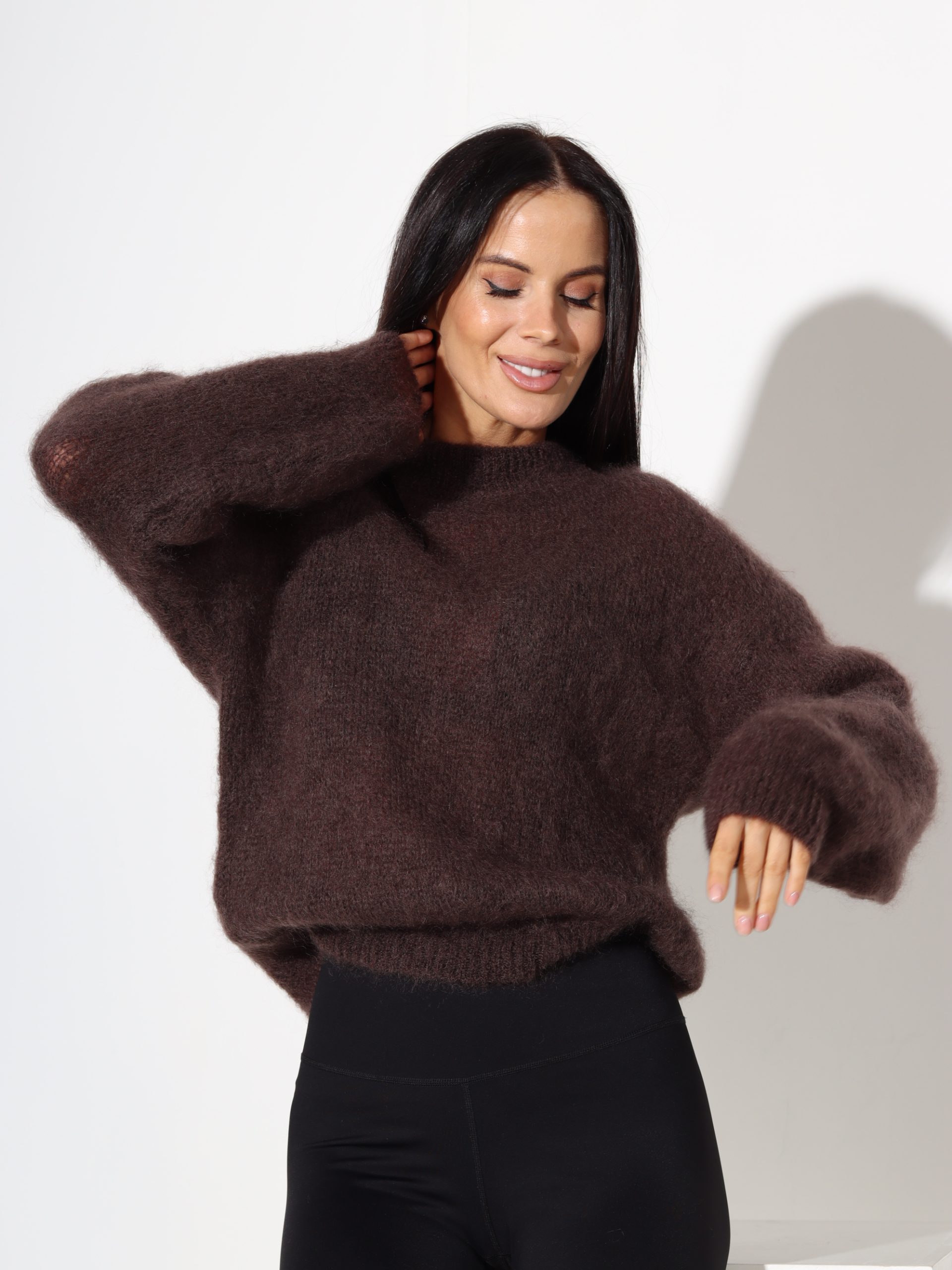 Brūns mohēras džemperis ar noapaļotu kakla daļu – 17708