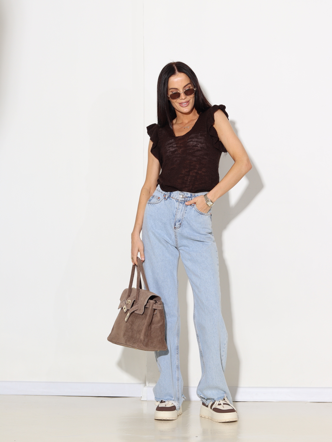 Brūns/ šoko, brīva adījuma tops ‘Ŗišiņa’ – 15647