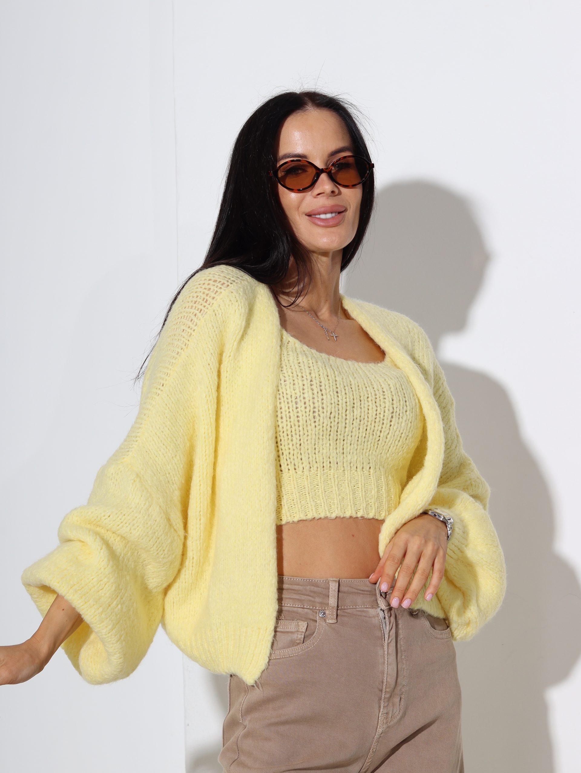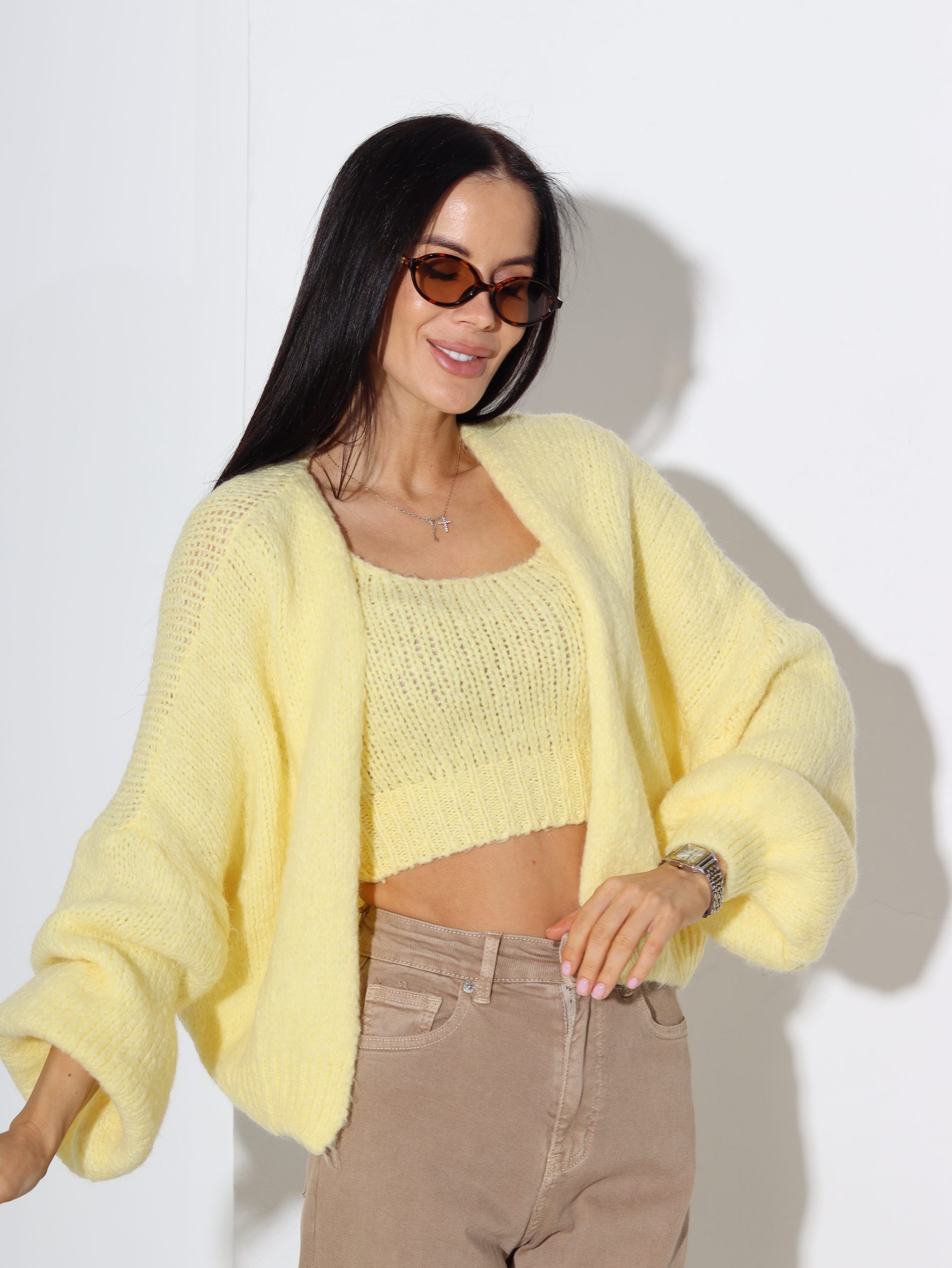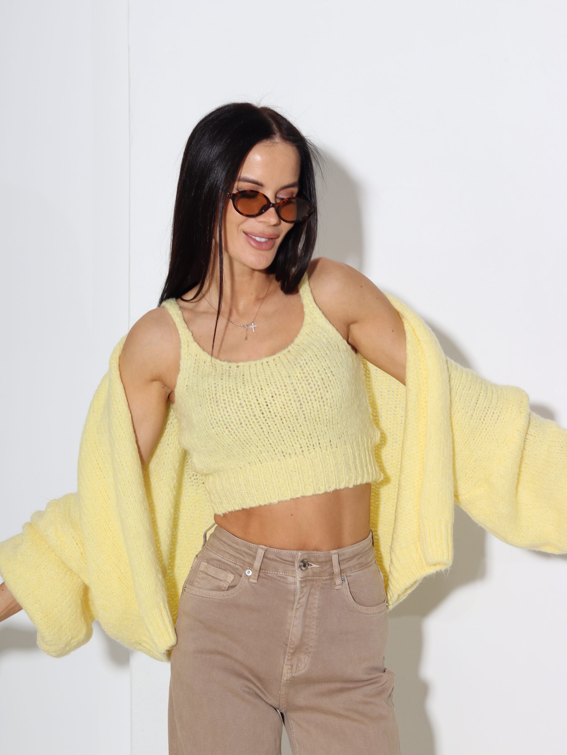 Dzeltena adījuma jaka+kroptops, vilna sastāvā – 16951