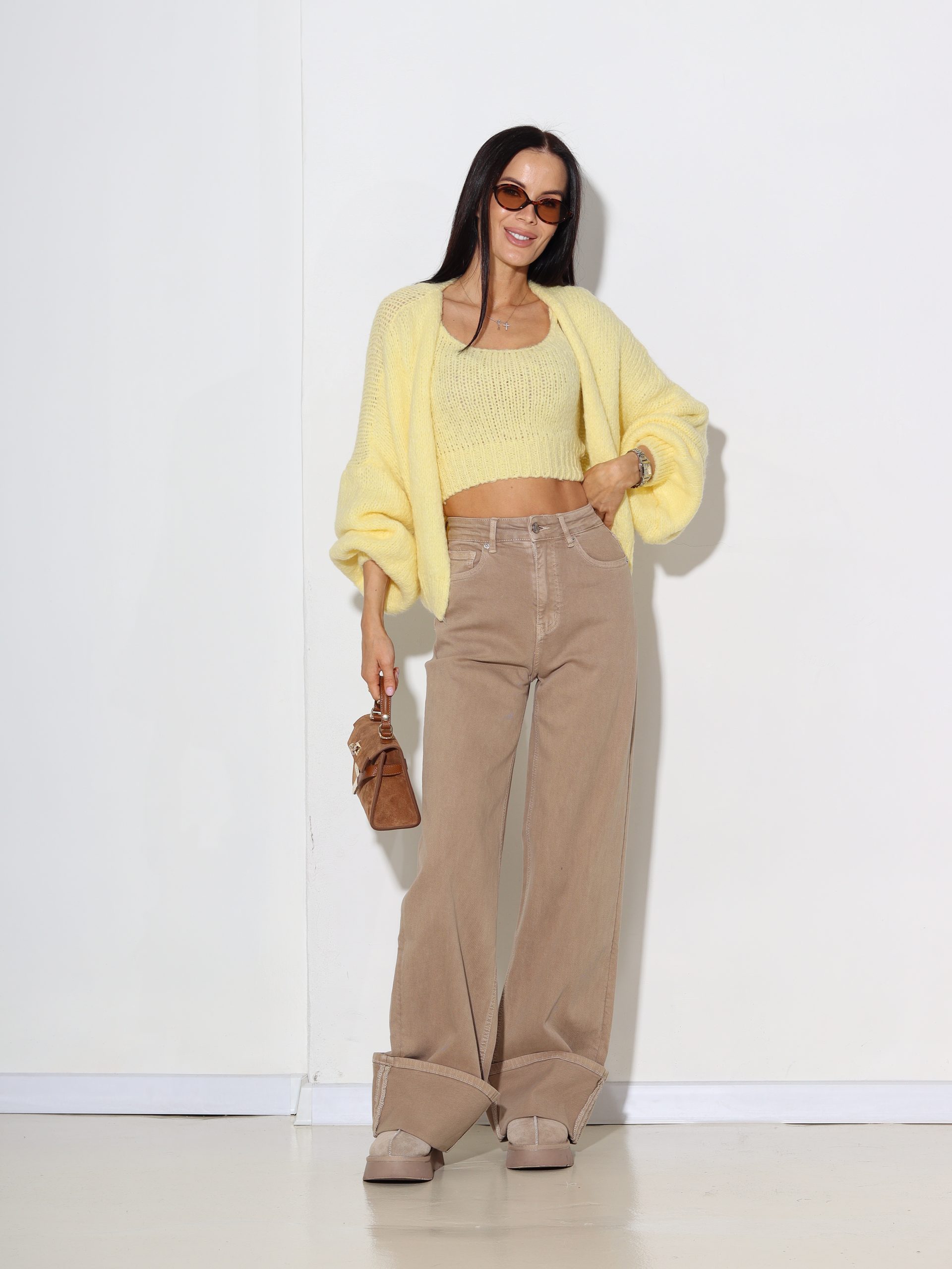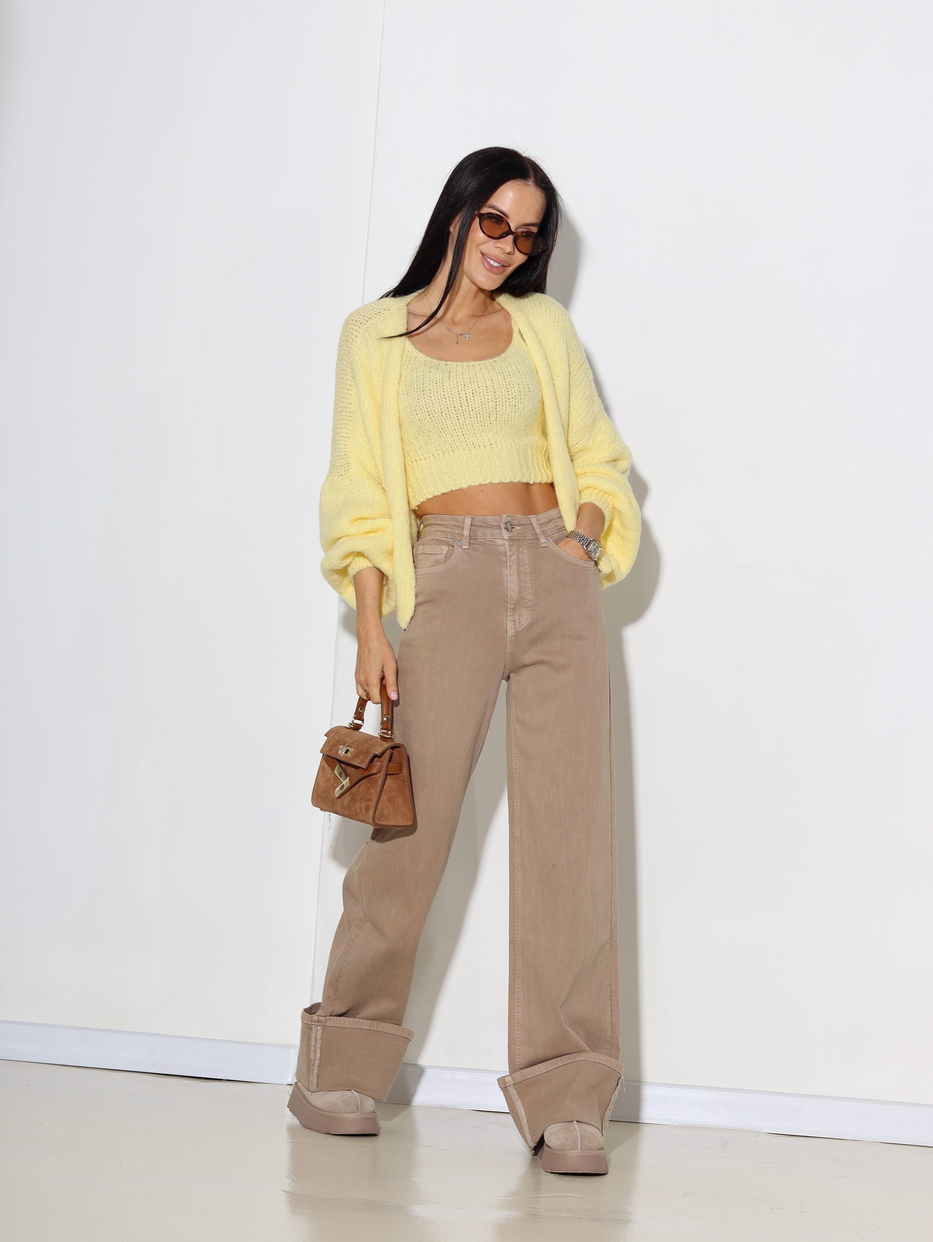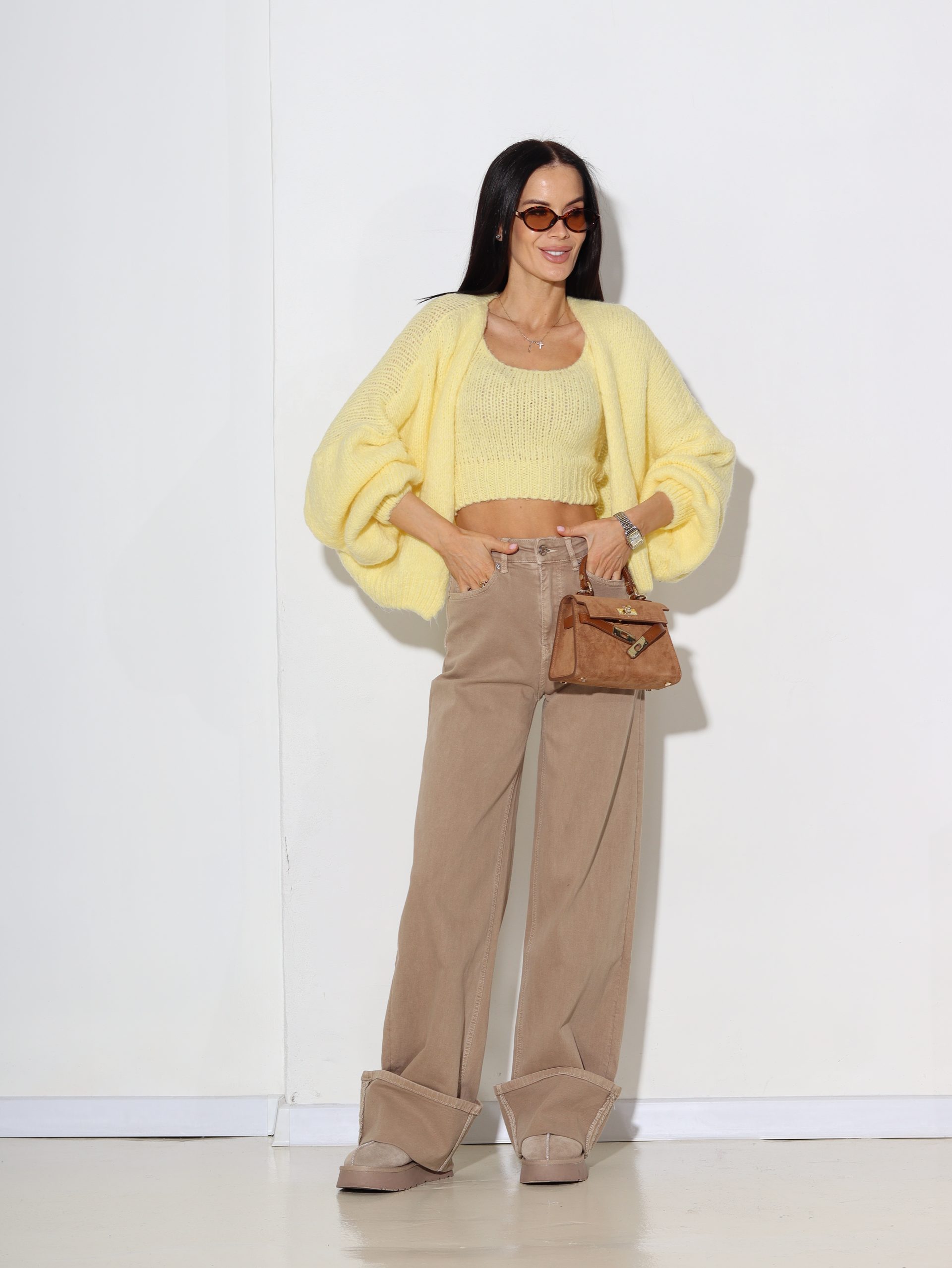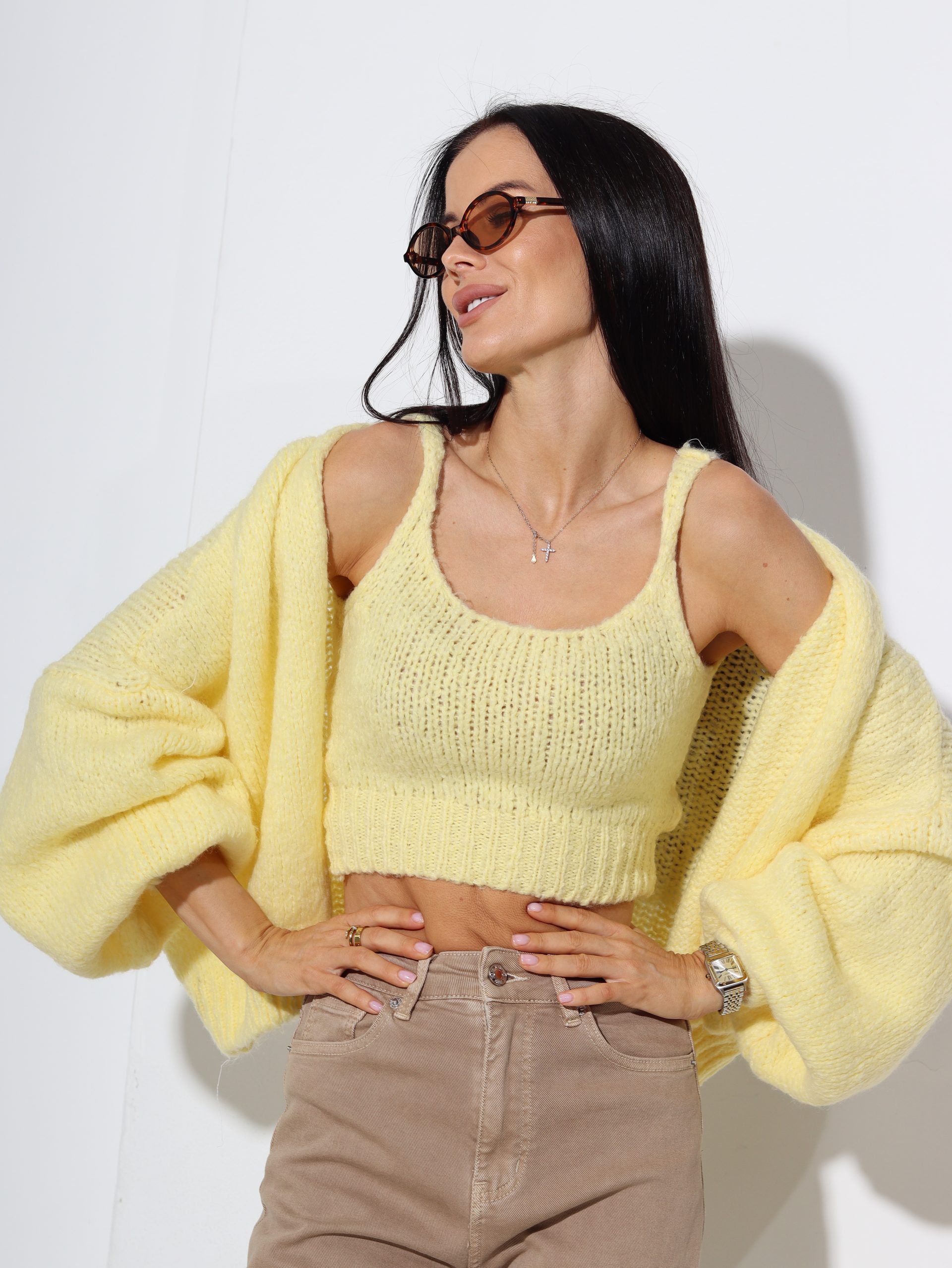 Dzeltena adījuma jaka+kroptops, vilna sastāvā – 16951