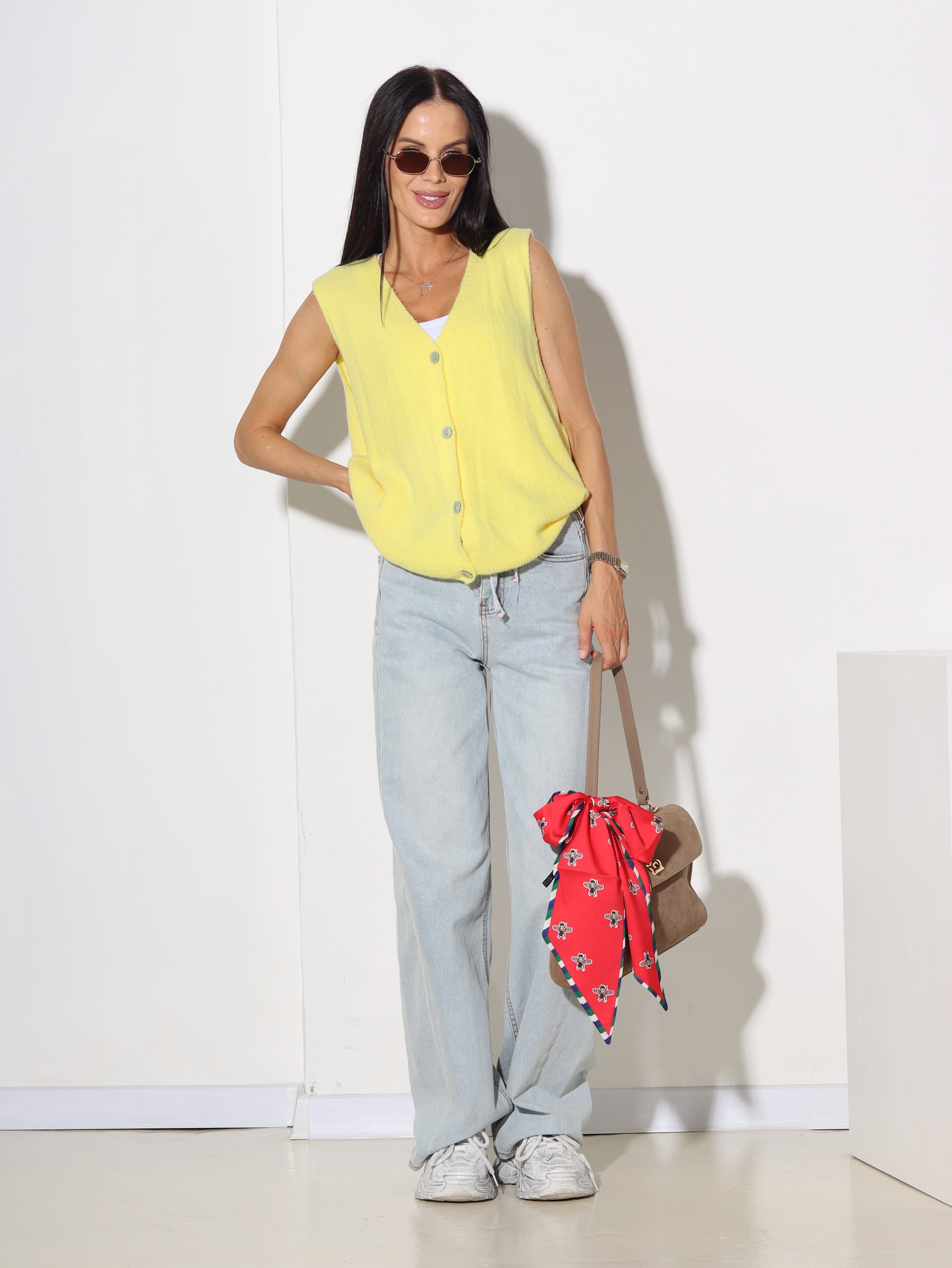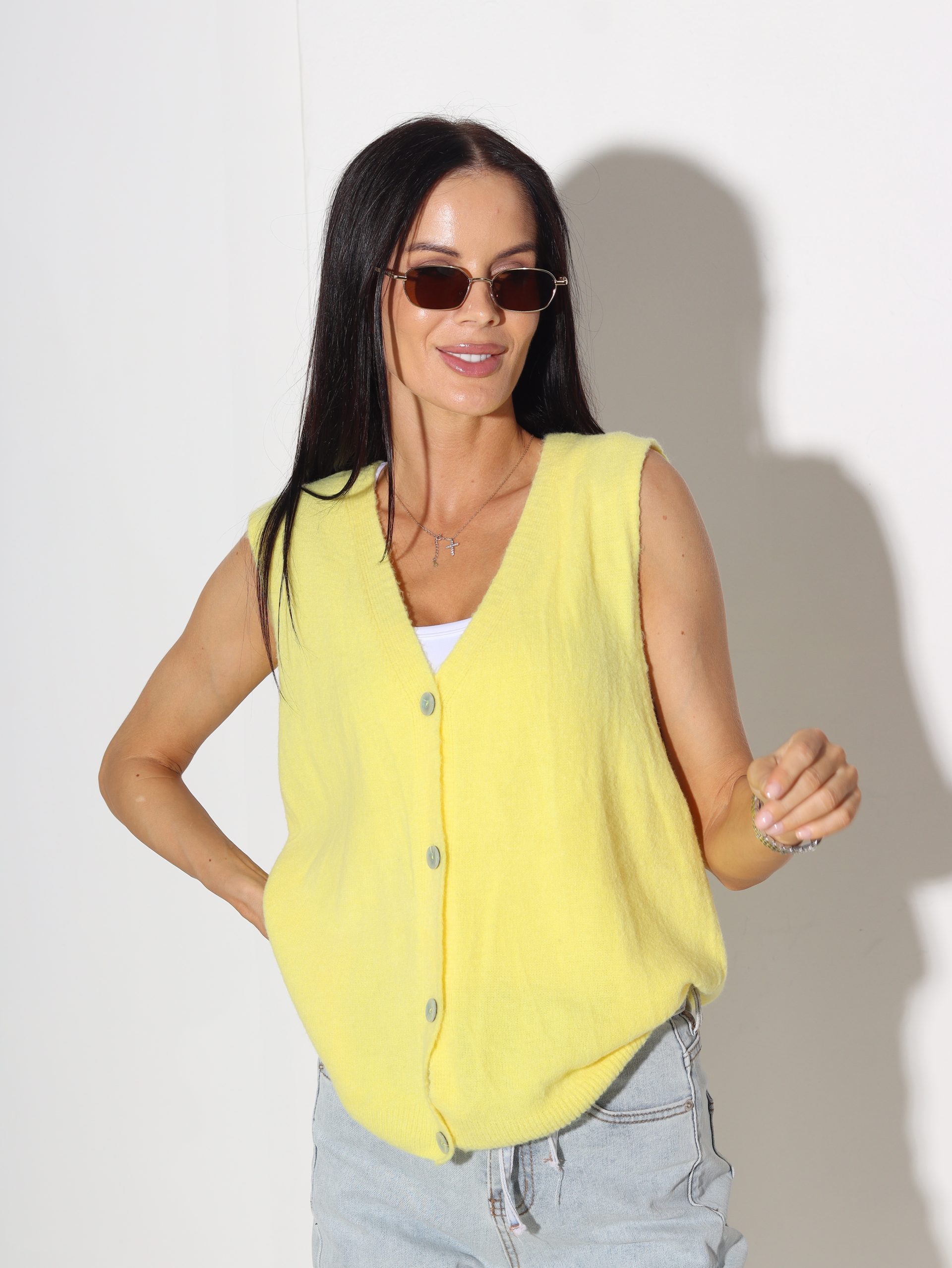 Dzeltena smalka adījuma veste – 15922