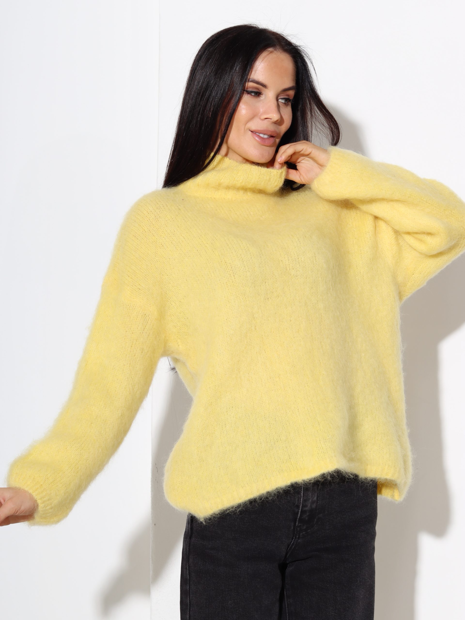 Dzeltens džemperis ar ‘Mini Up’ kaklu, mohēra sastāvā – 17525