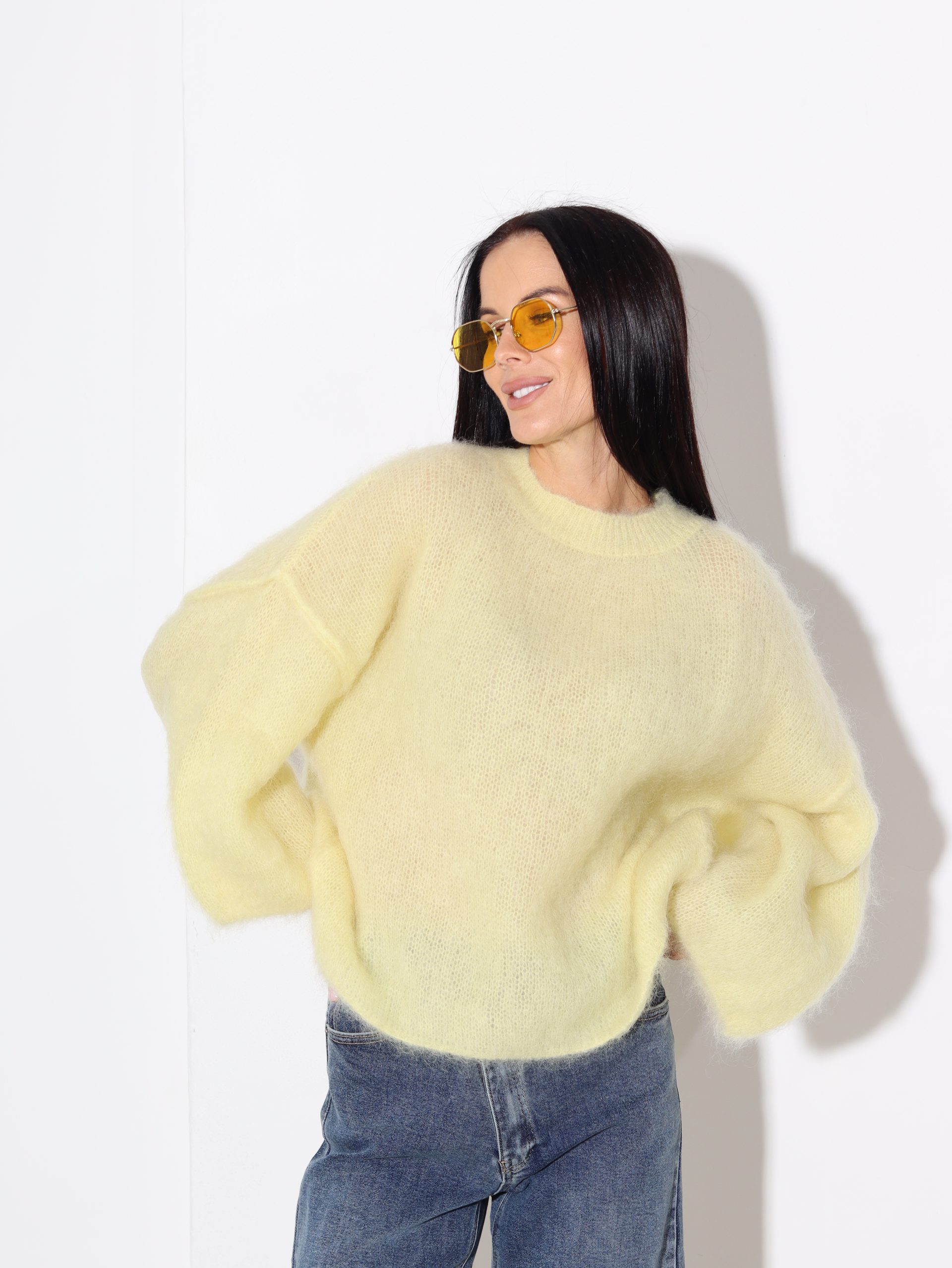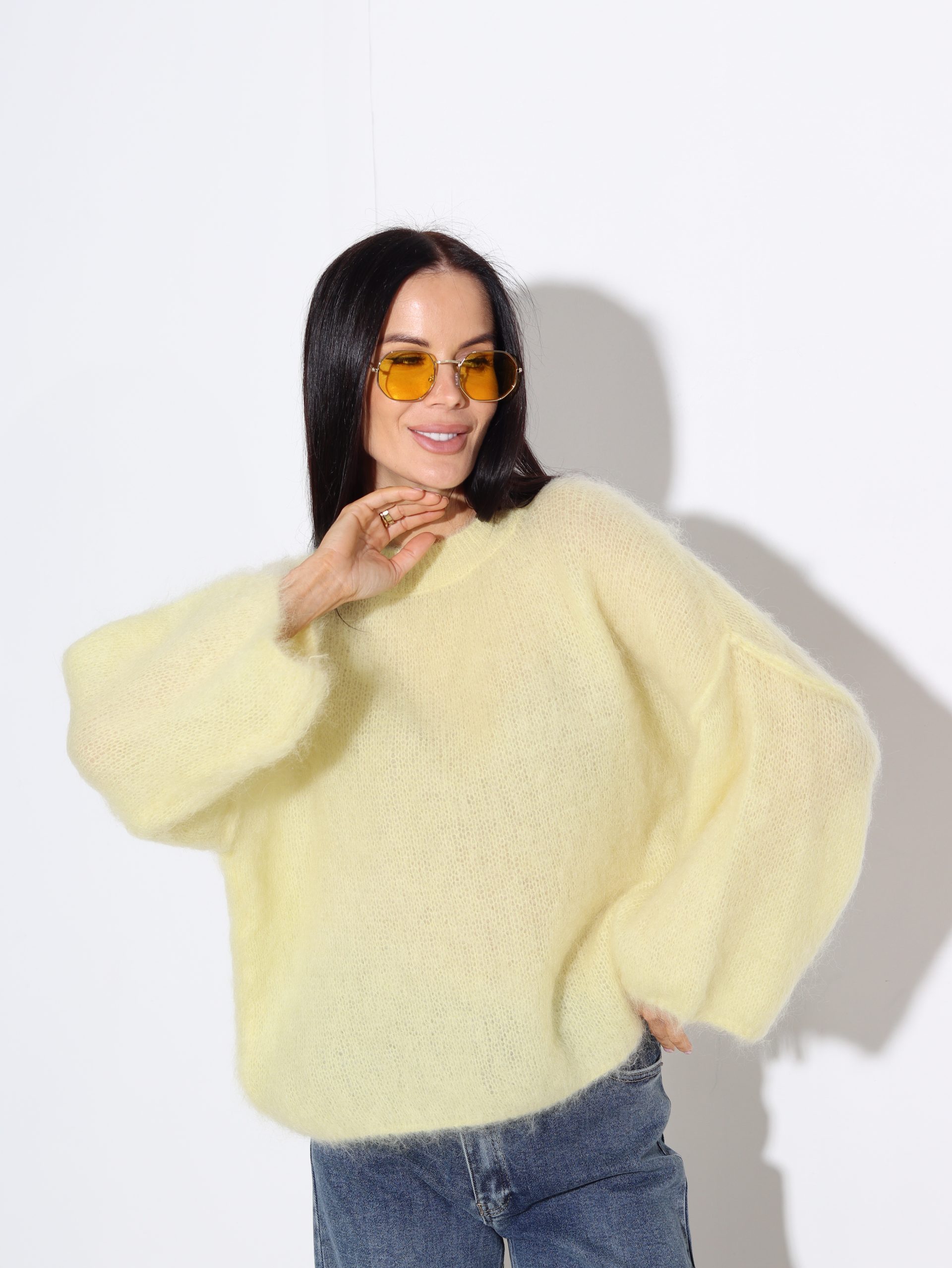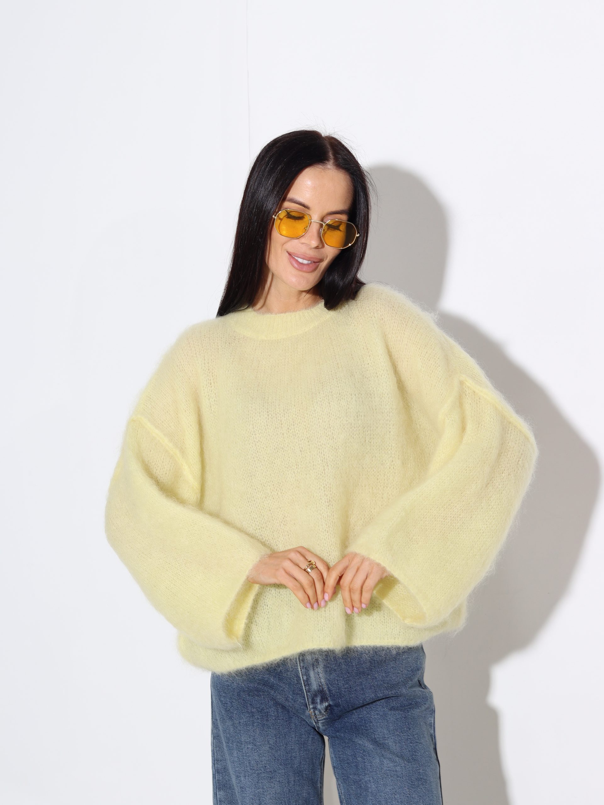 Dzeltens mohēras džemperis ‘Oversize’, īsa piedurkne – 16942