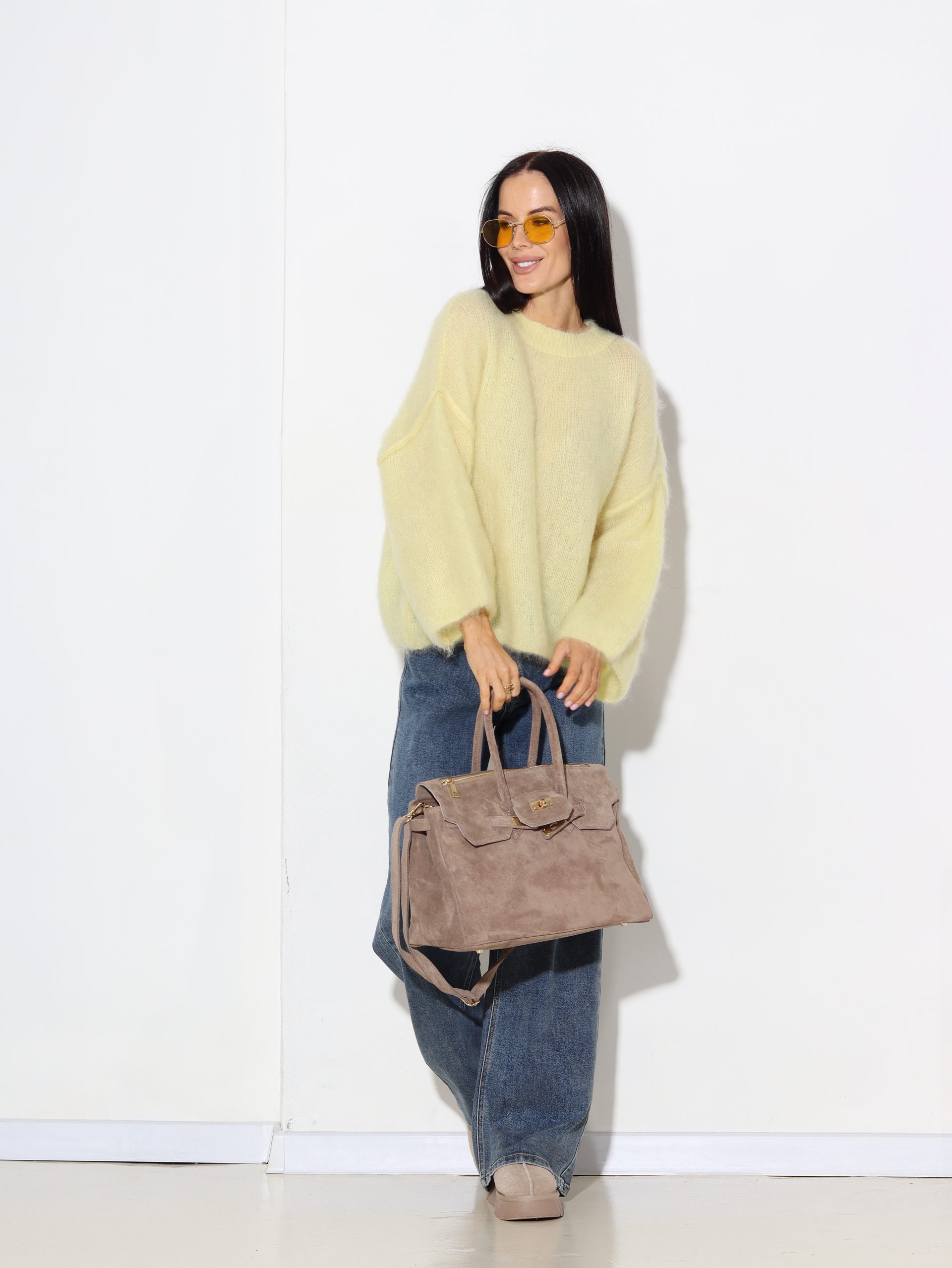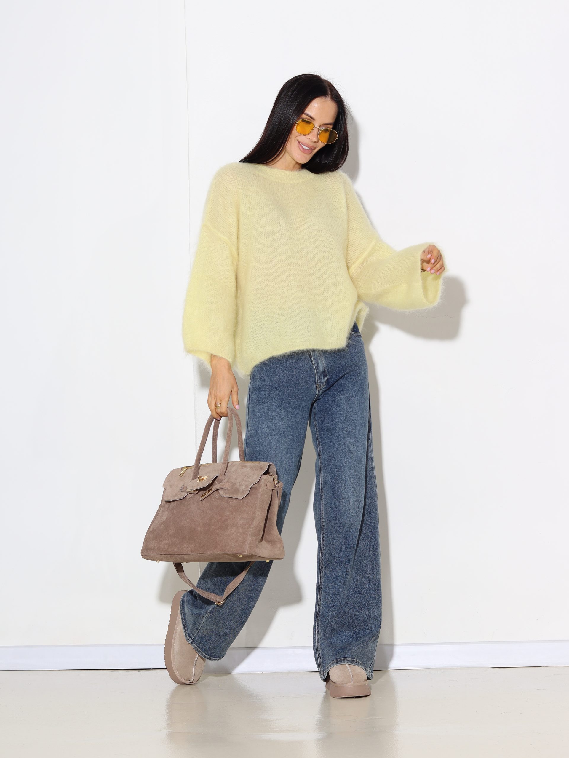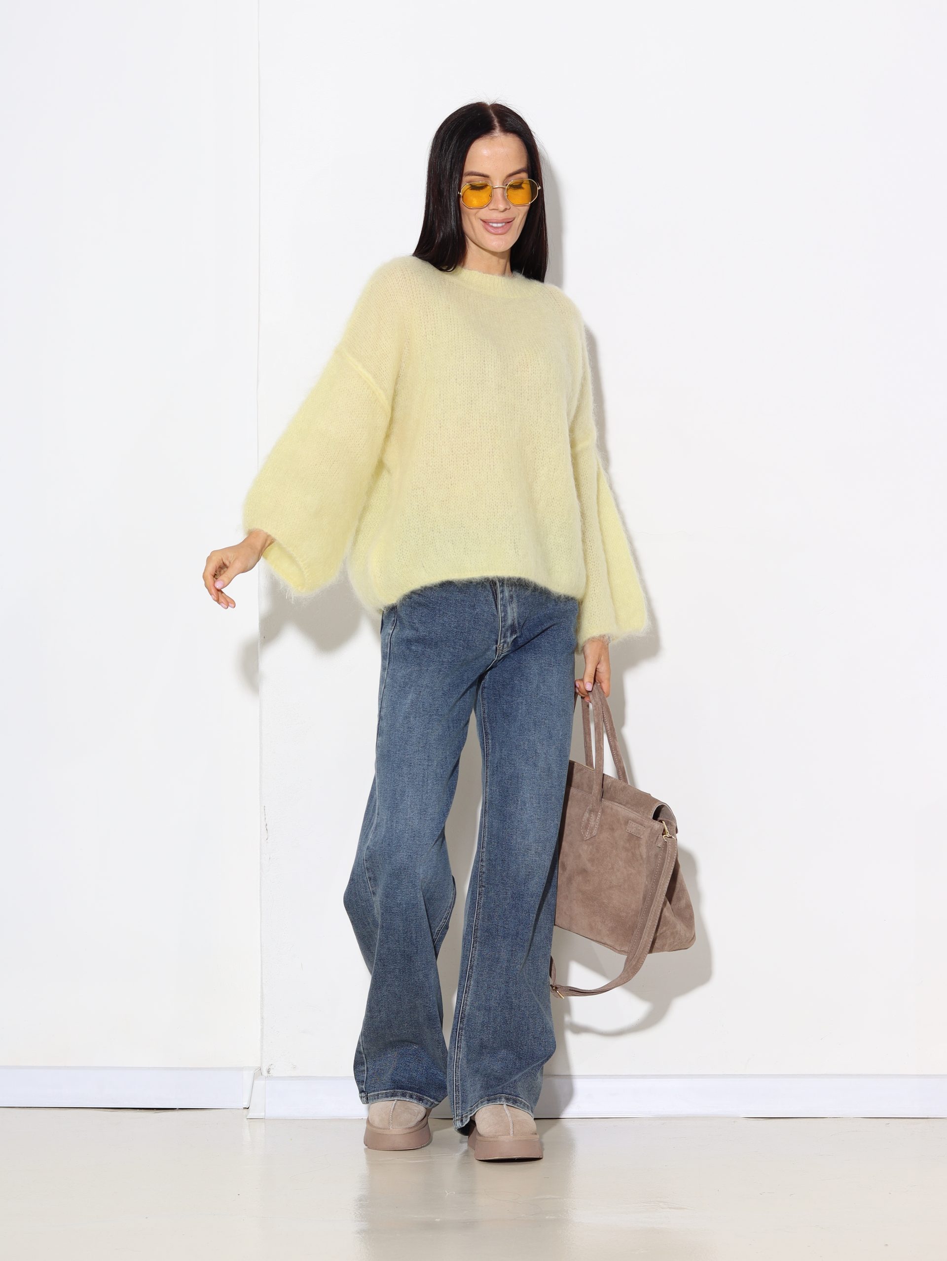 Dzeltens mohēras džemperis ‘Oversize’, īsa piedurkne – 16942