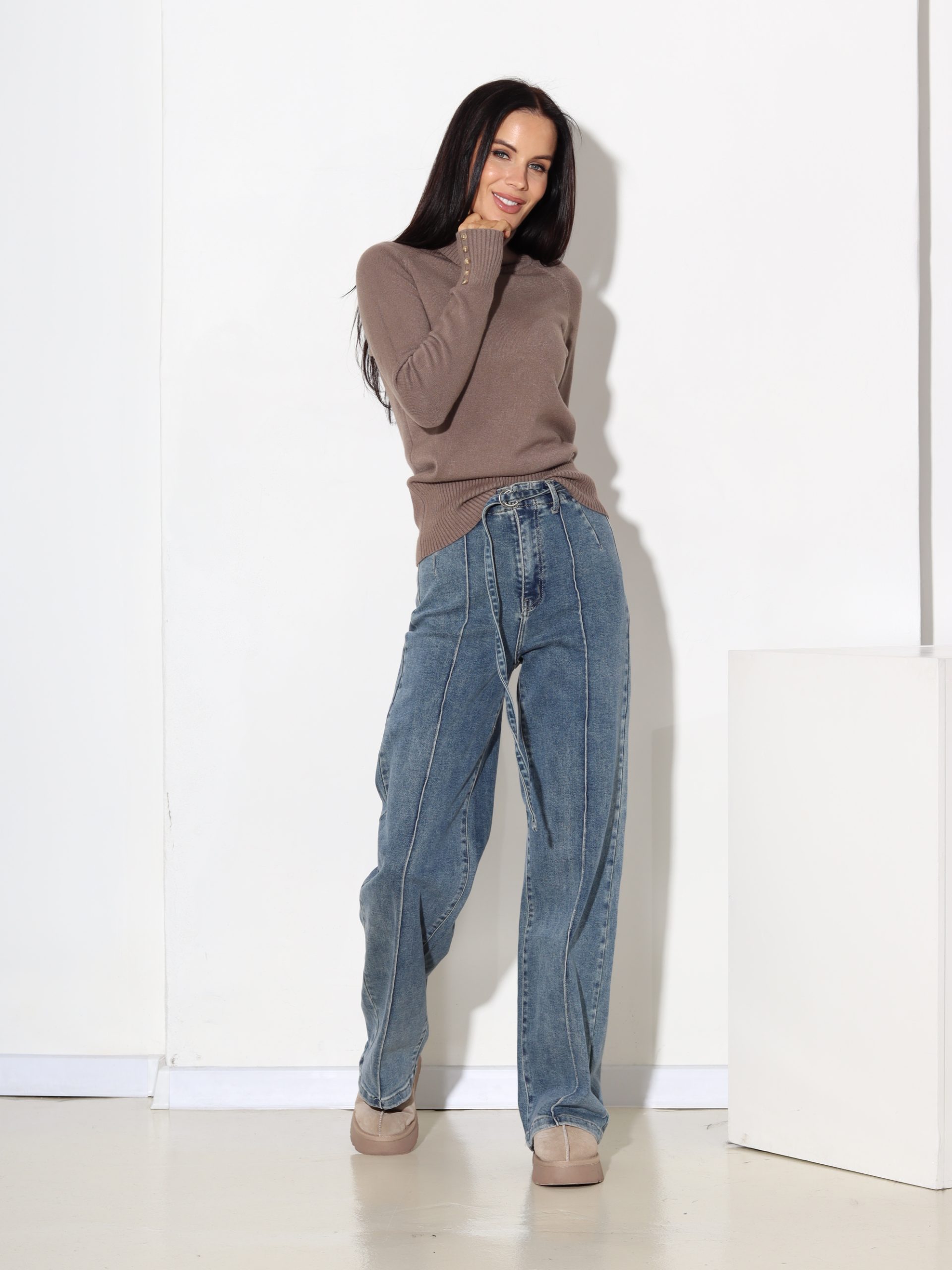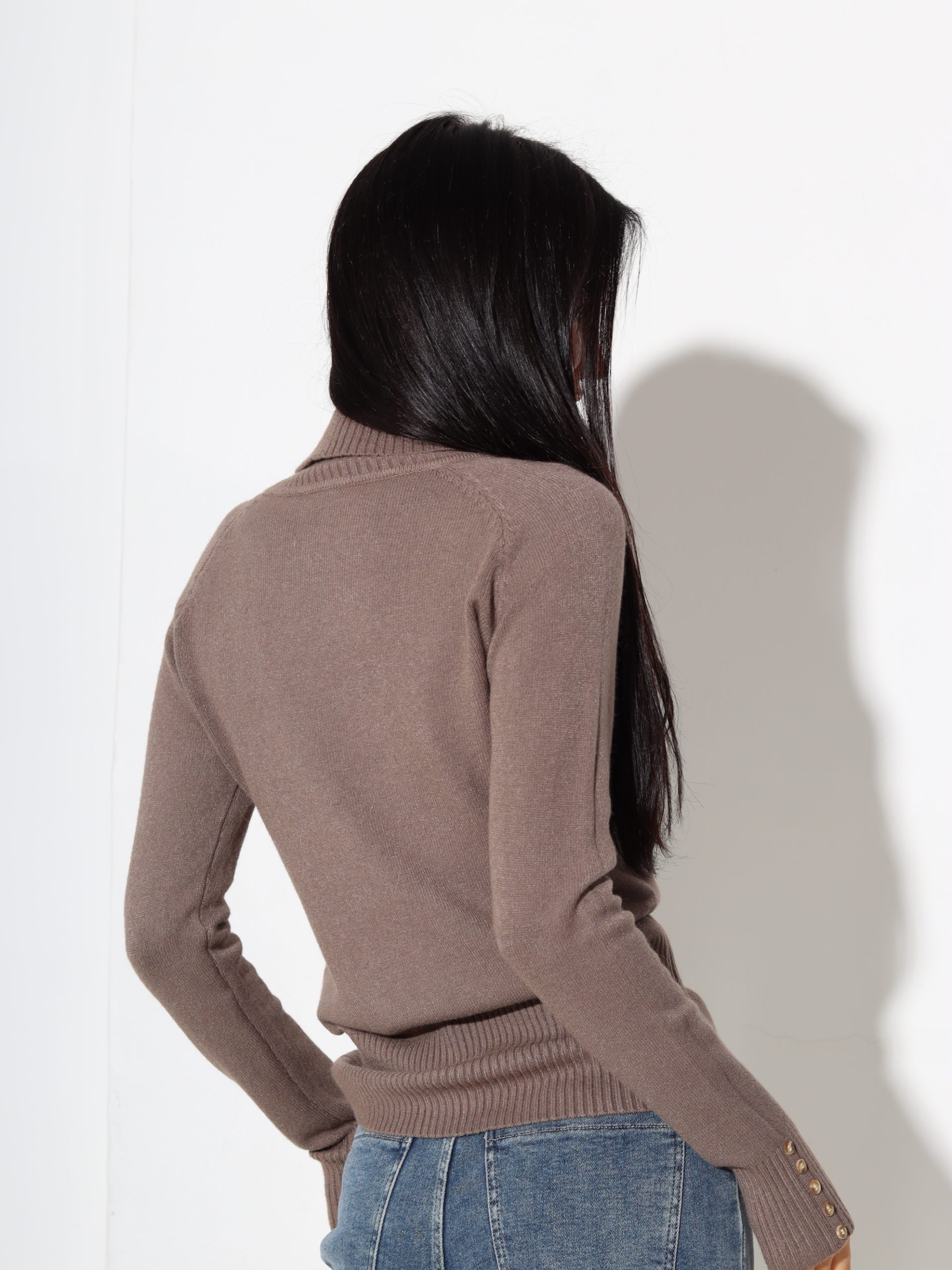 G.brūns džemperis ar augstu kakla daļu un pogām- 17349