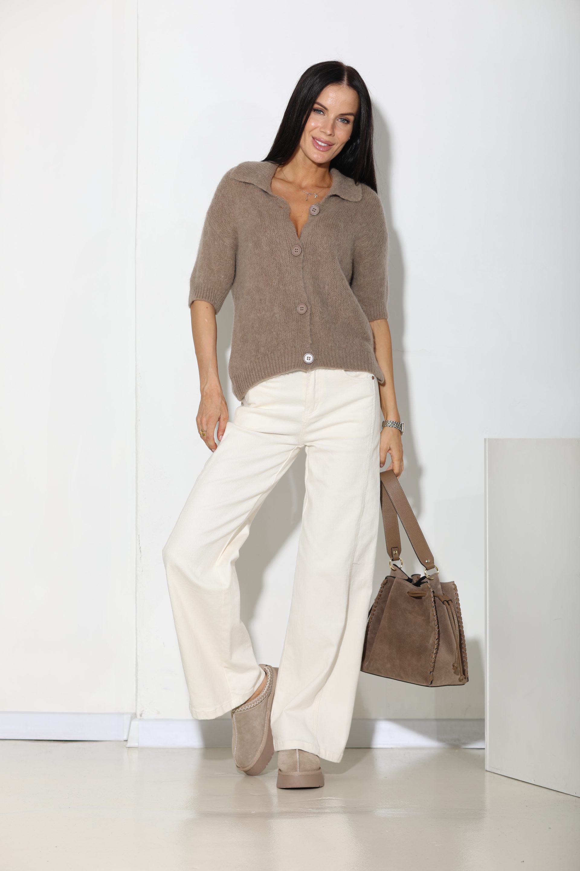 Gaiši brūna pogājama alpakas jaka ar krādziņu – 16175