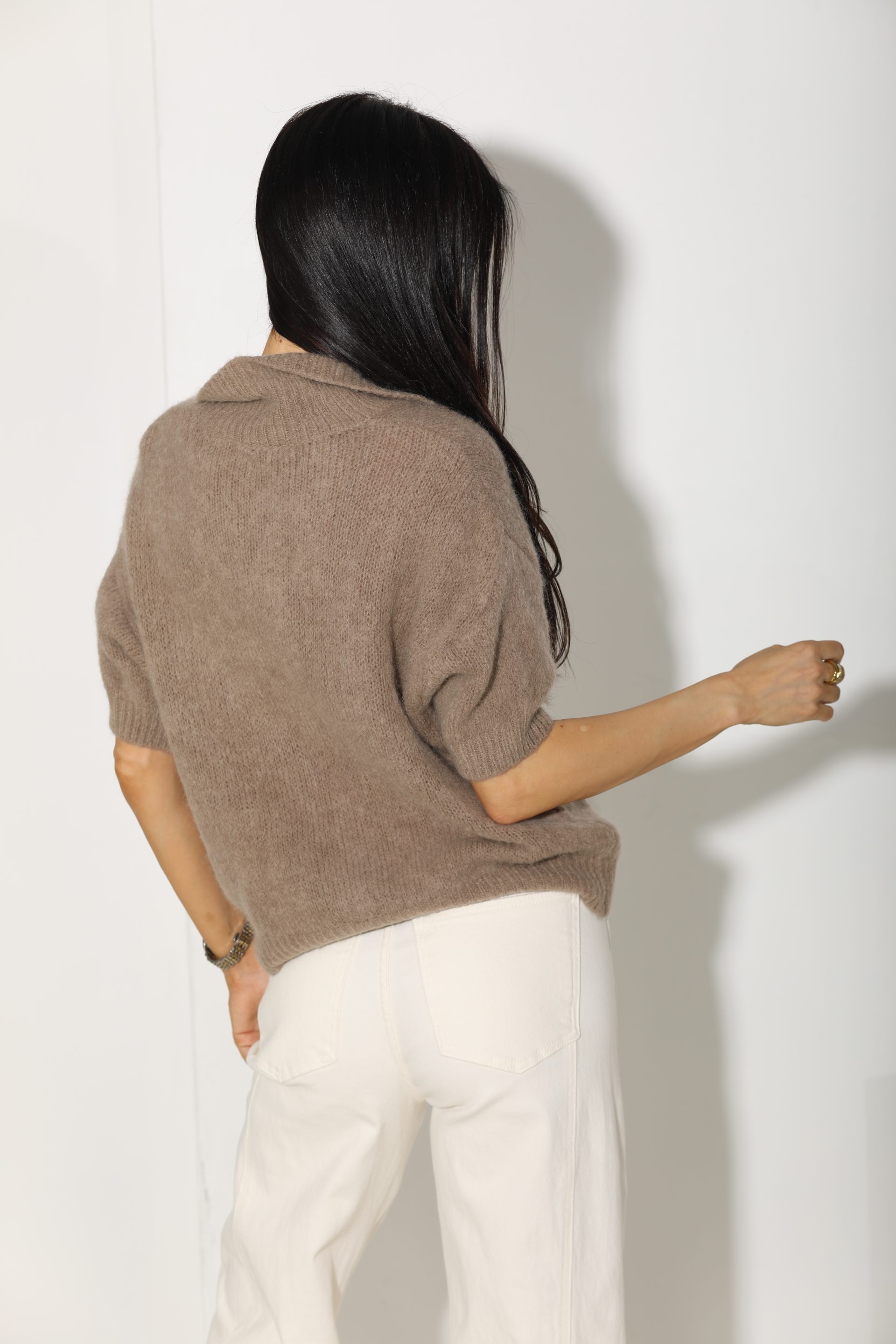 Pogājama alpakas jaka ar īsām pieduknēm un krādziņu. Jakai ir pieskaņotas krāsas pogas. Piedurkņu galos un jakas apakšmalā ir ieadīts savādāks raksts.