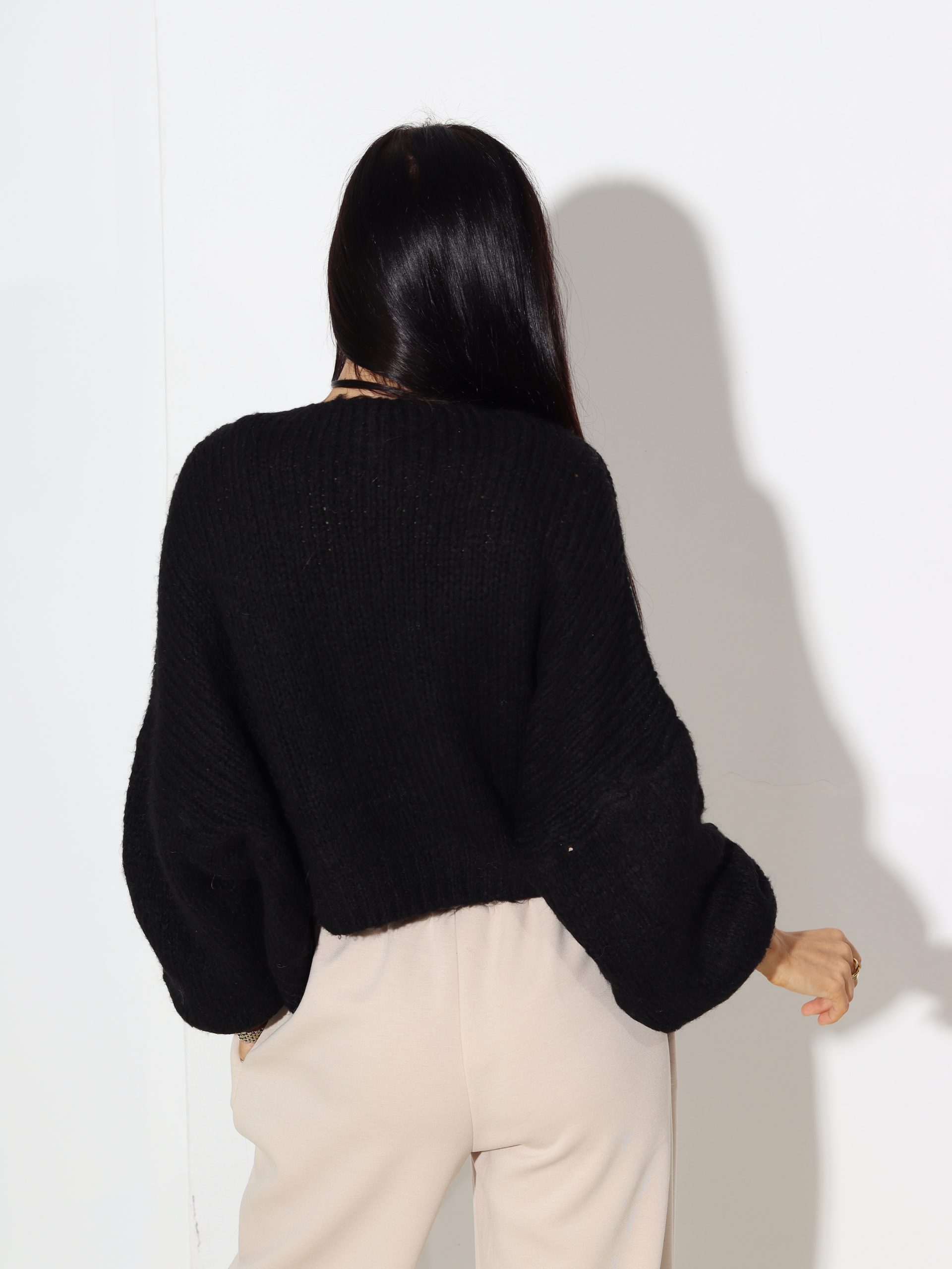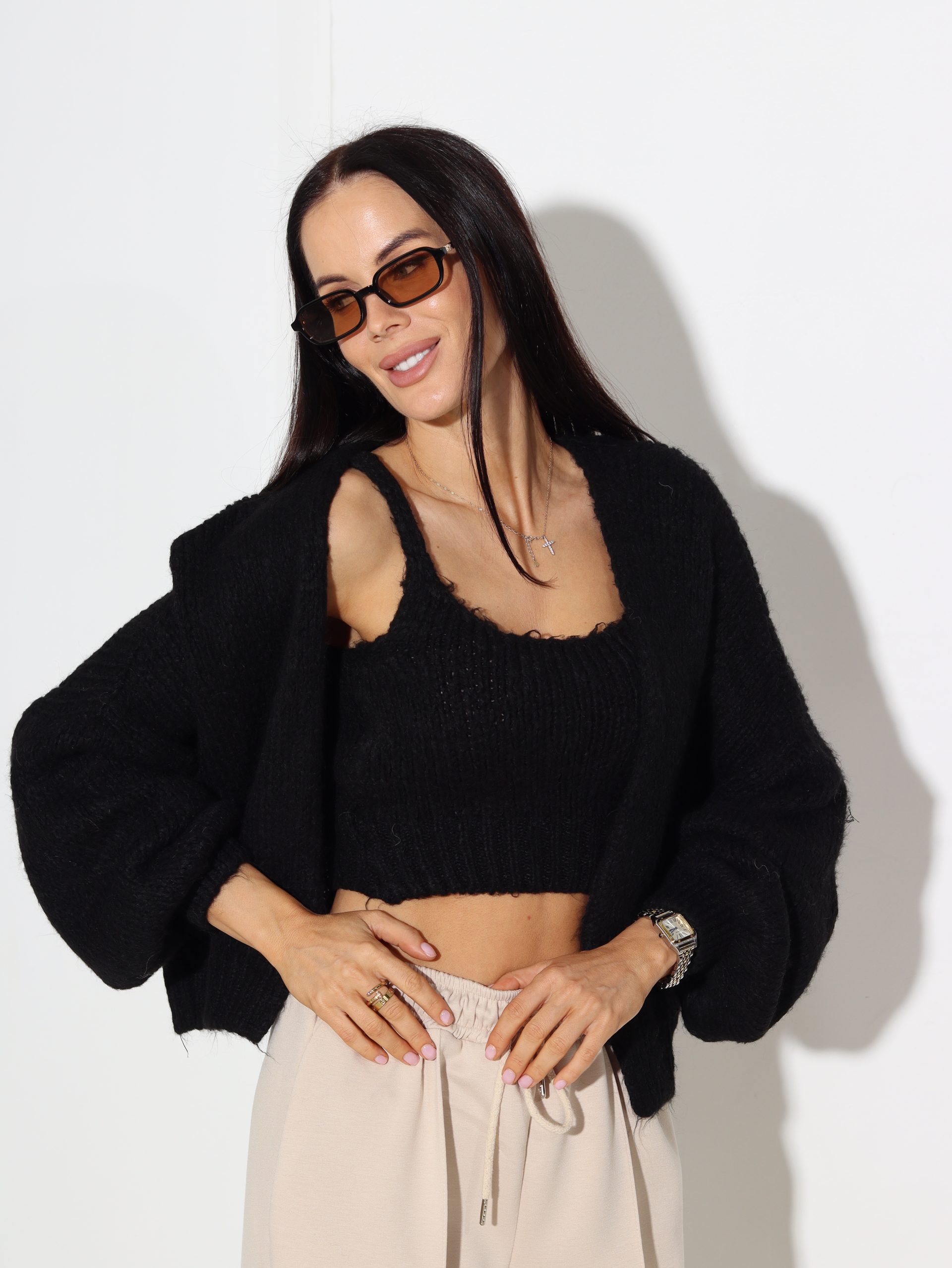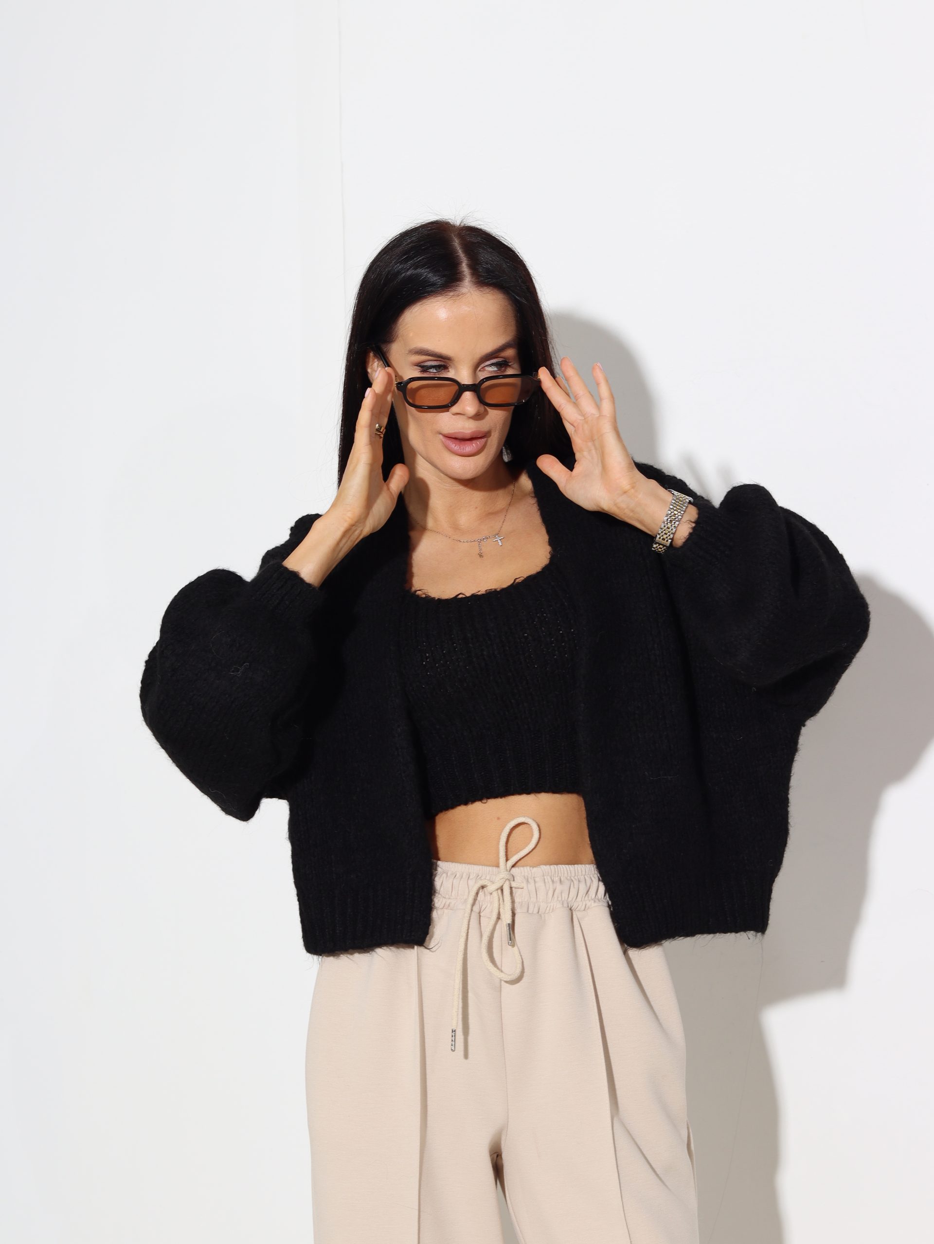 Melna adījuma jaka+kroptops, vilna sastāvā – 16954