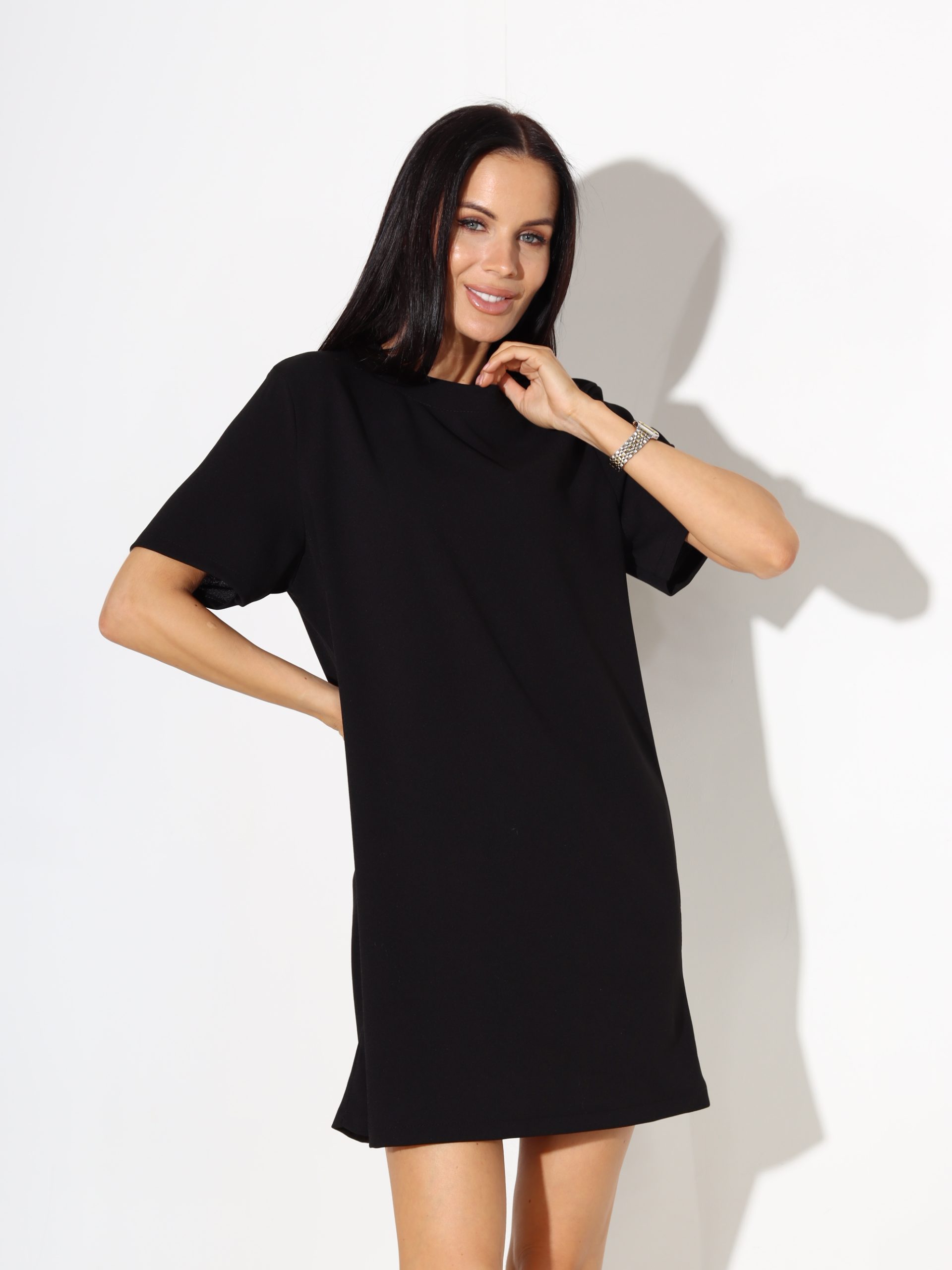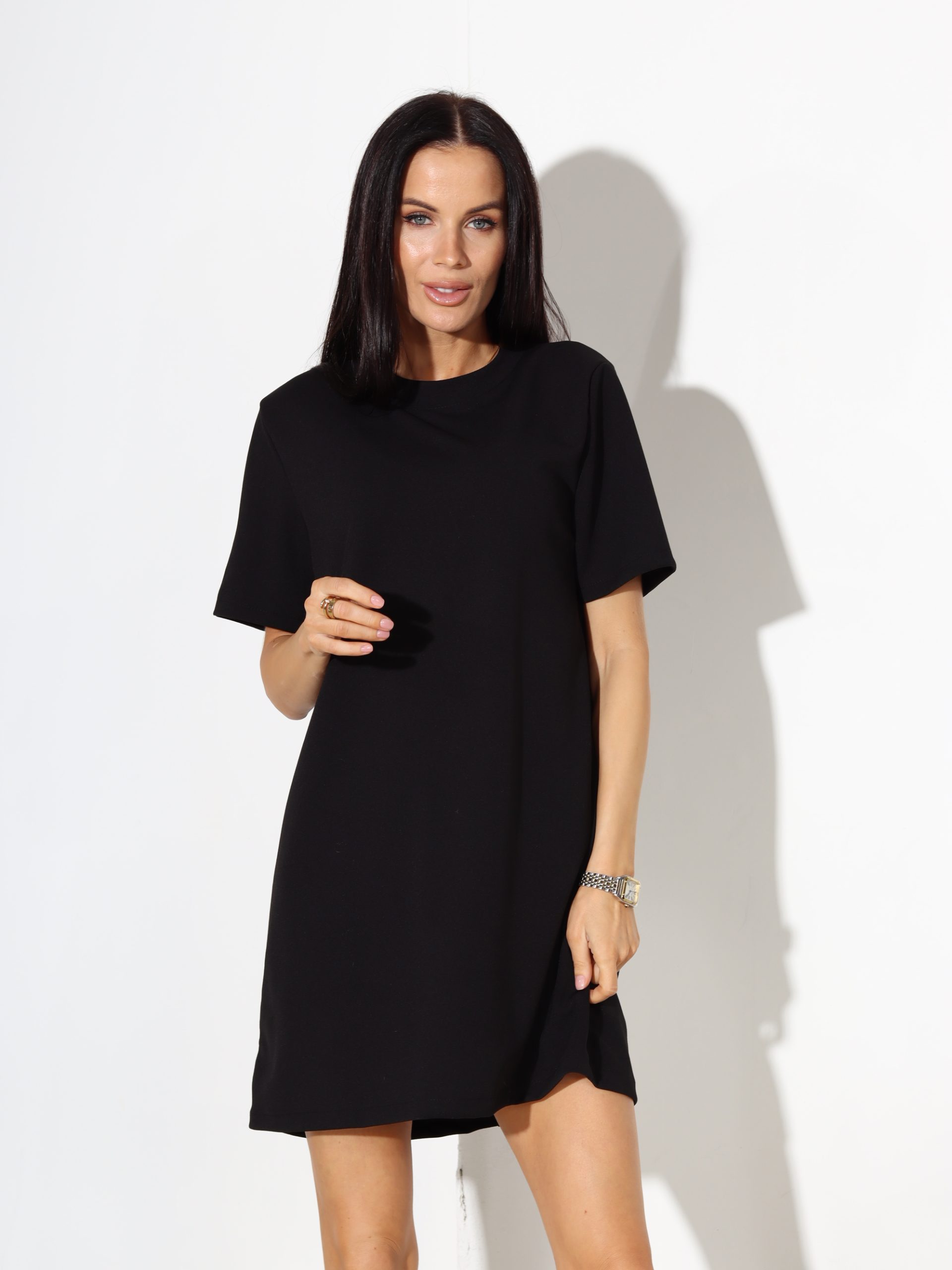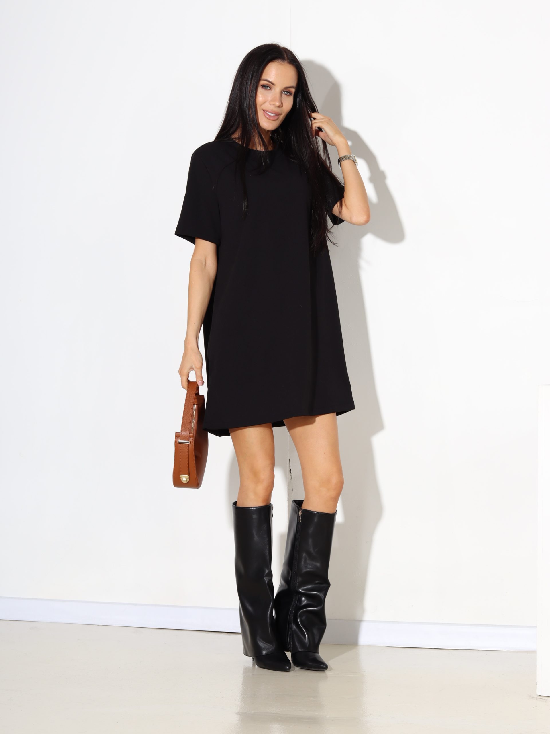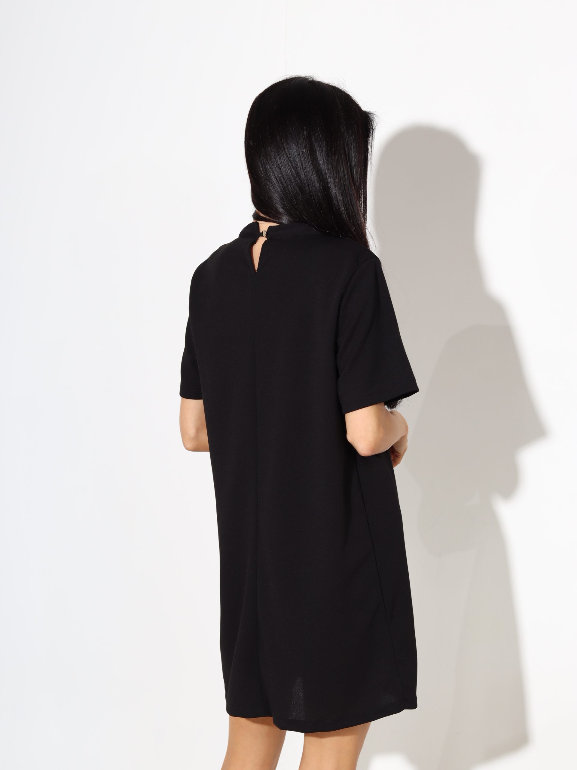 Melna brīva piegriezuma kleita ar spīdīgu jostiņu – 17657