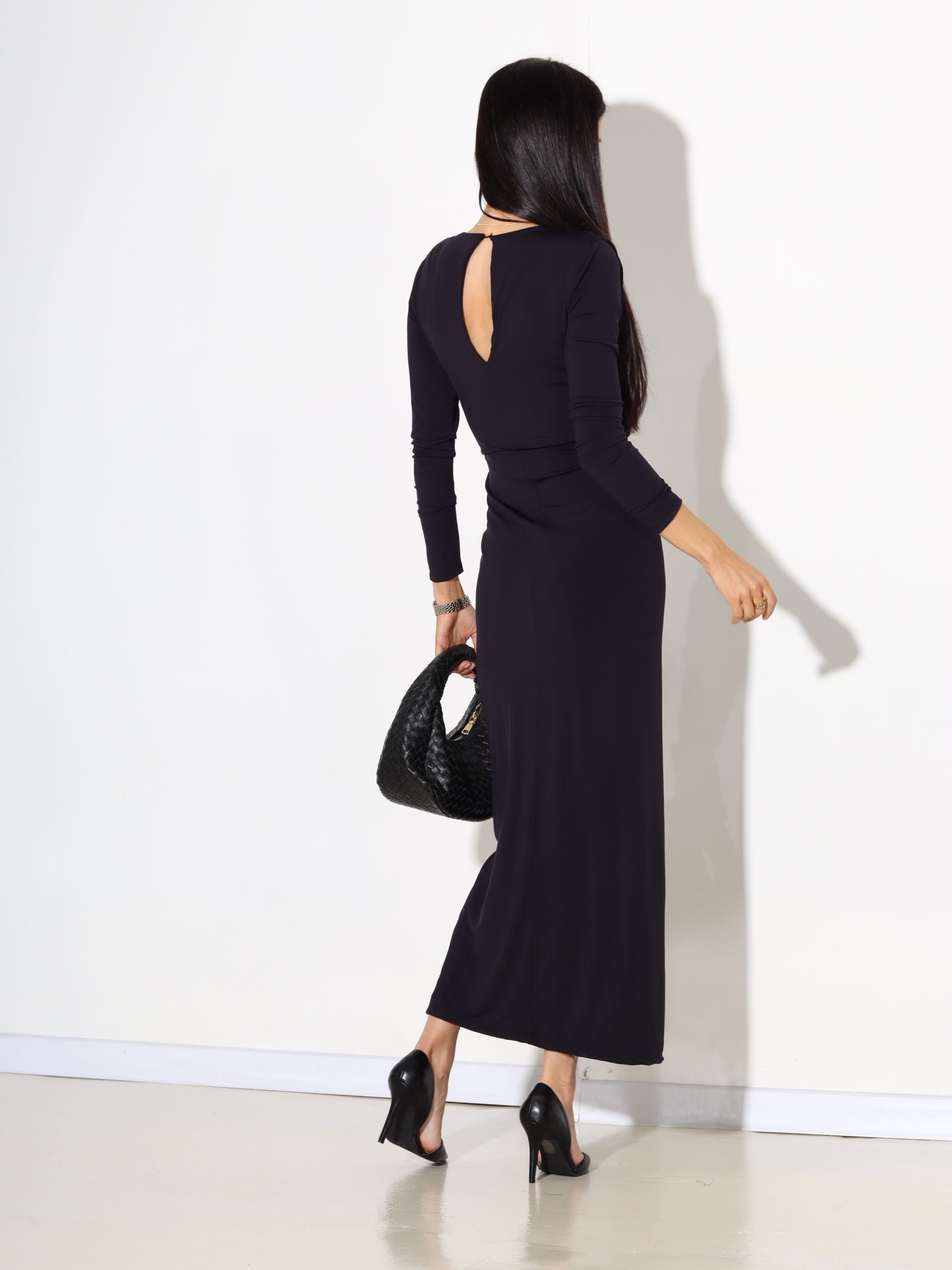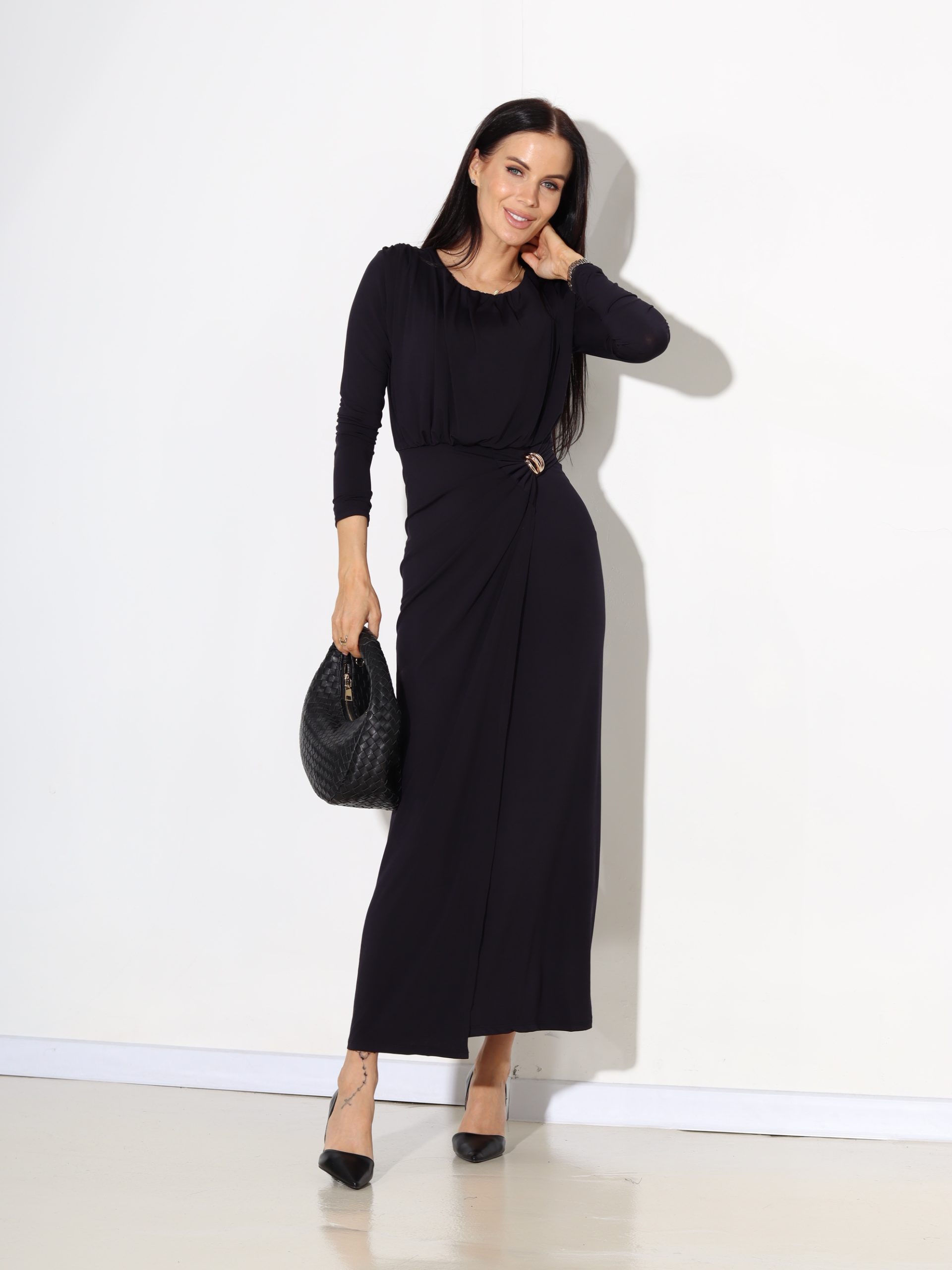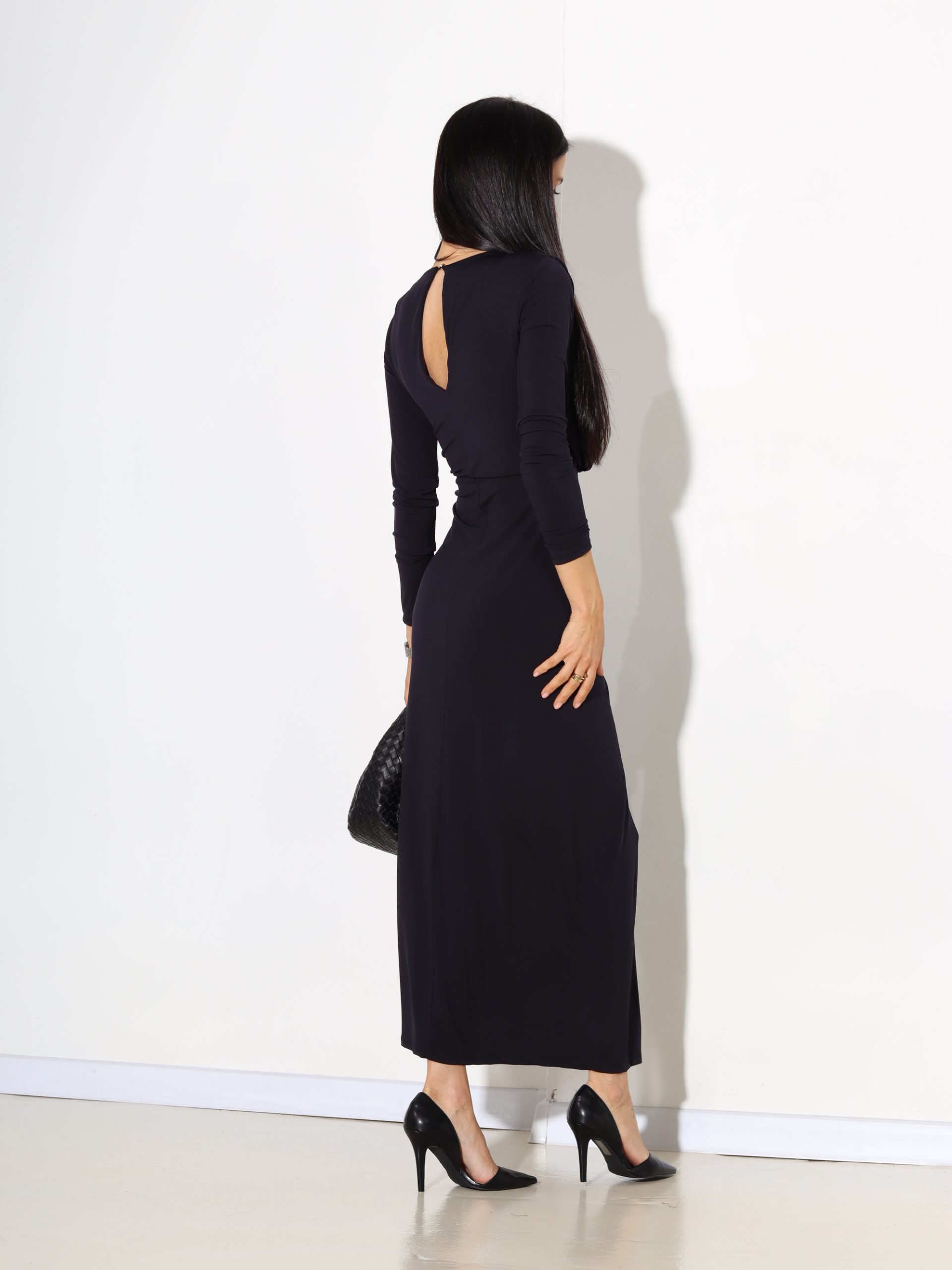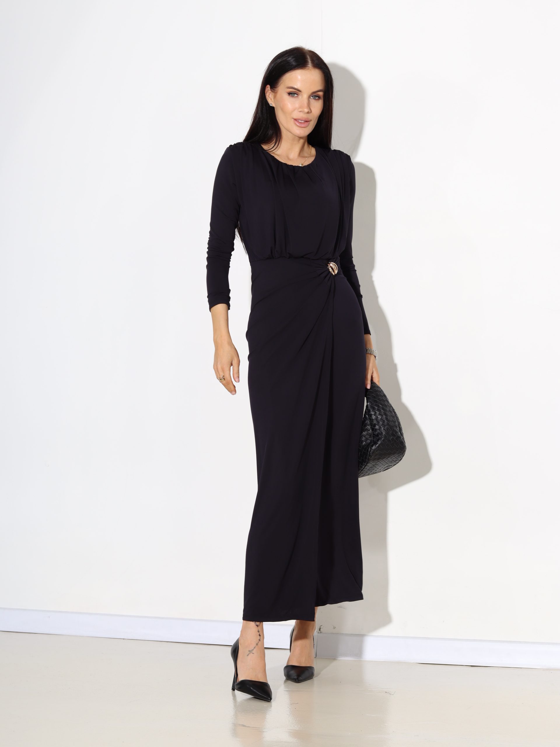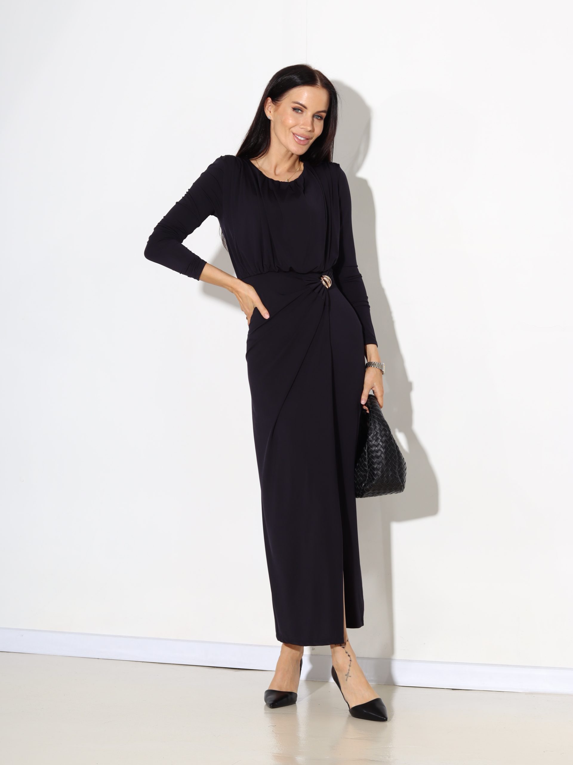 Melna gara kleita ar savilkumu sānā un zelta furnitūras dekoru – 17561
