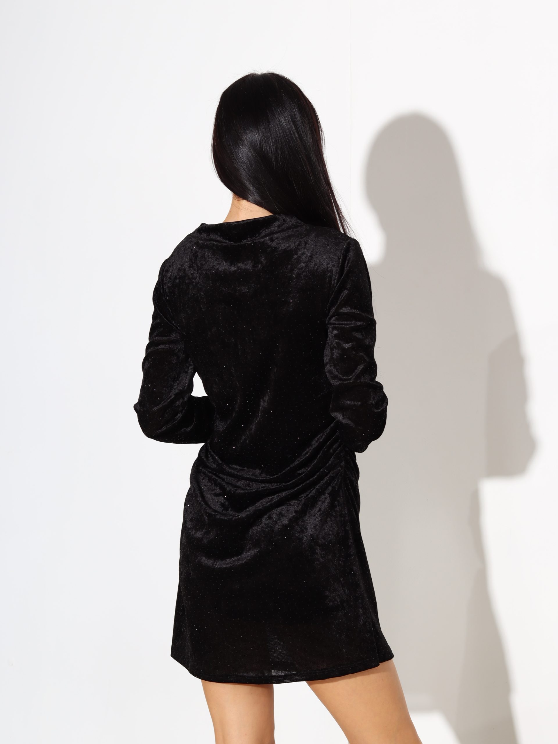 Melna īsa samta kleita ar spīdumiņiem – 17746