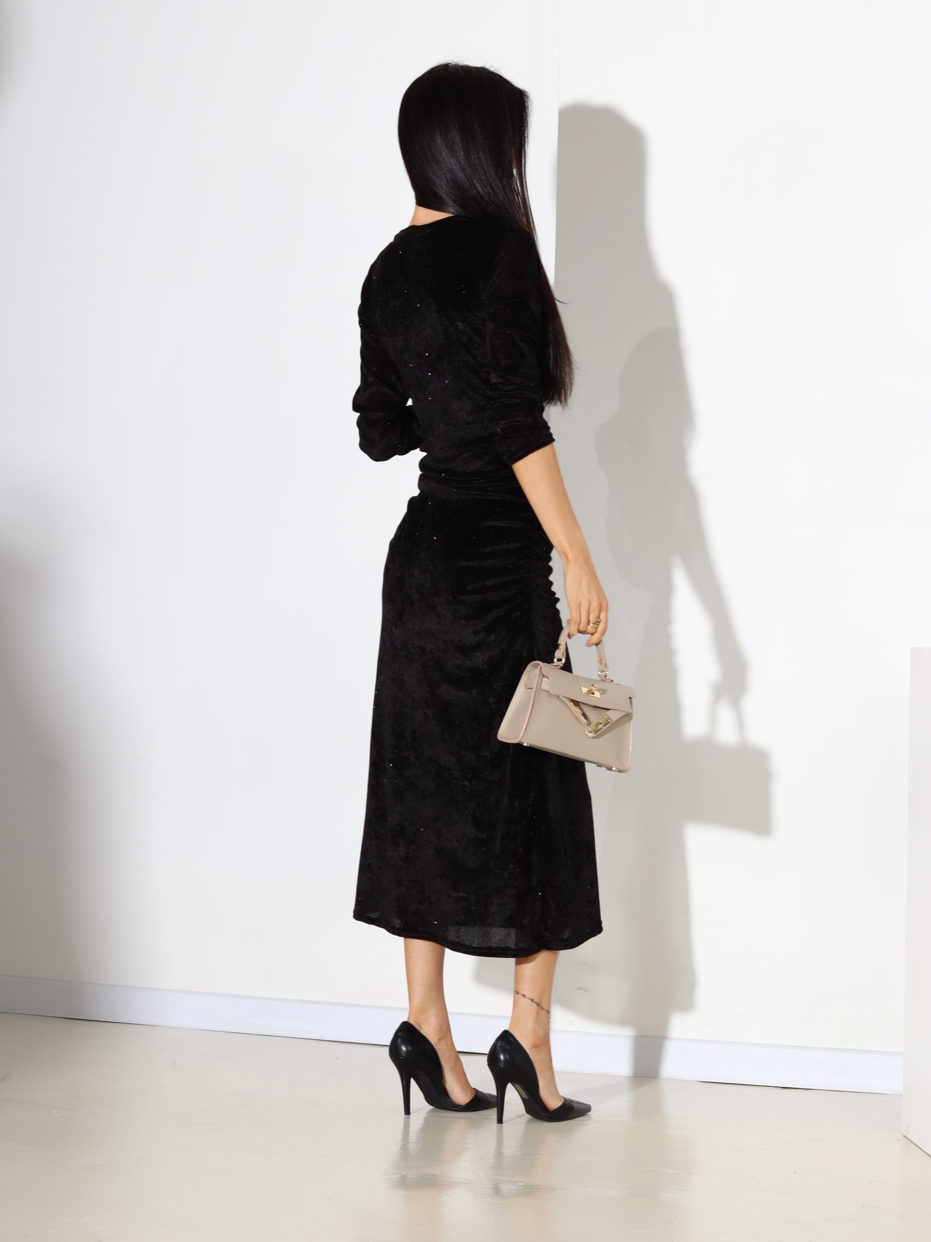 Melna midi samta kleita ar spīdumiņiem – 17739