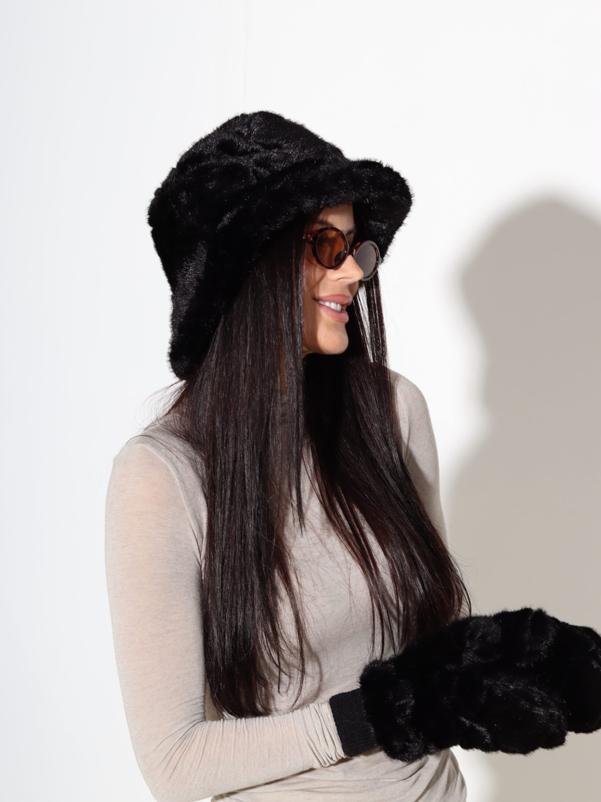 Melna pūkaina cepure ar rakstu – 17374