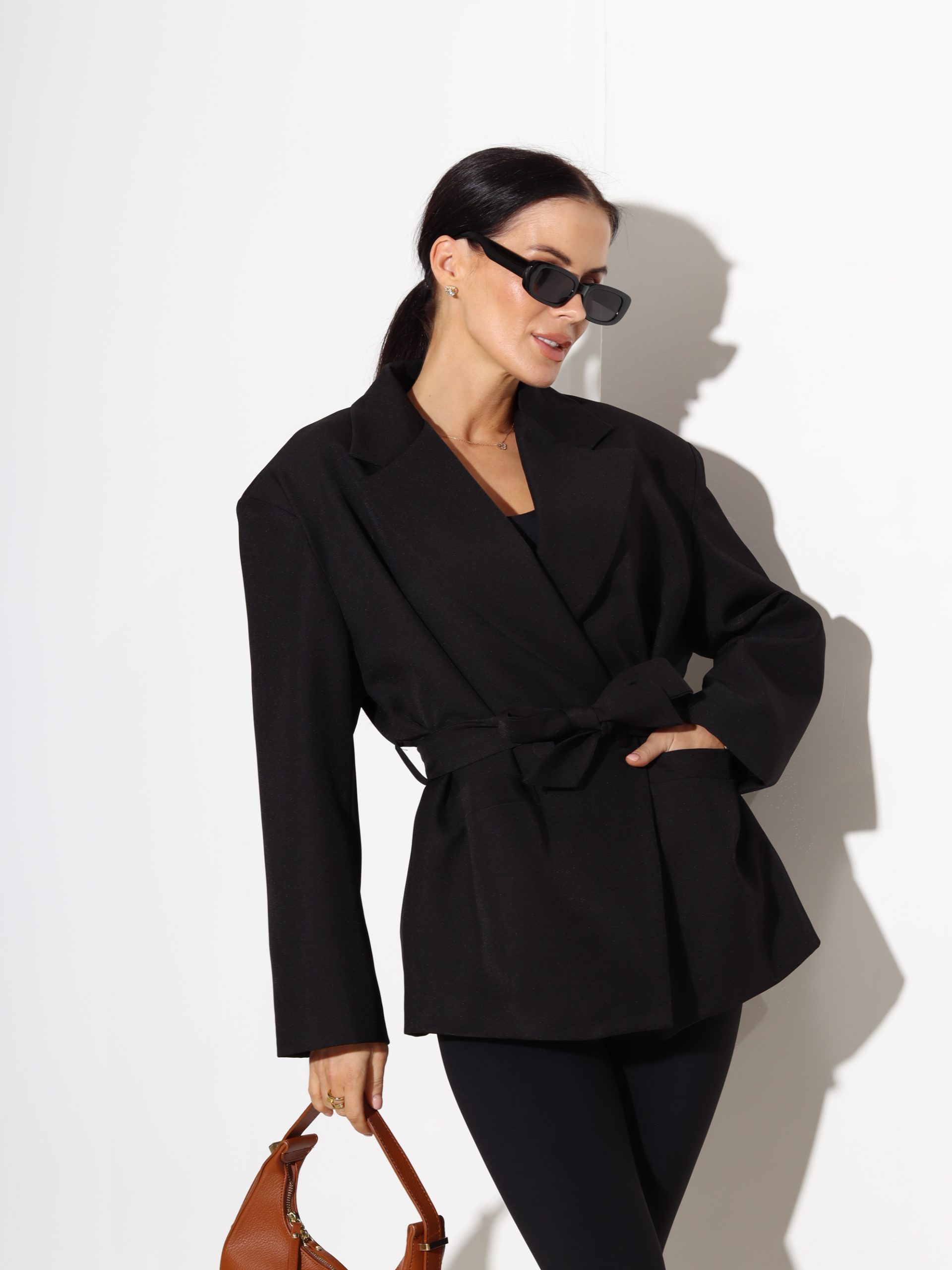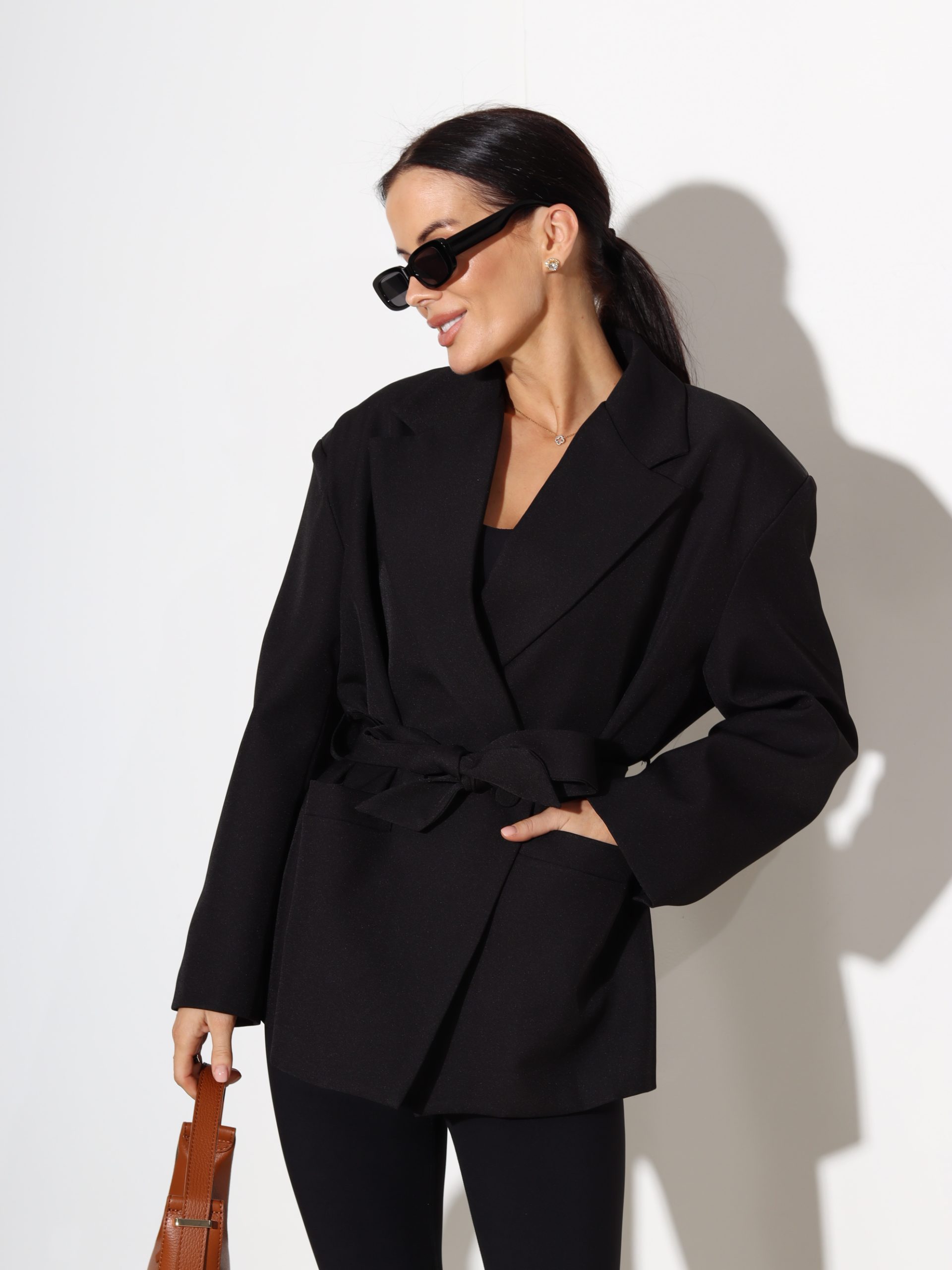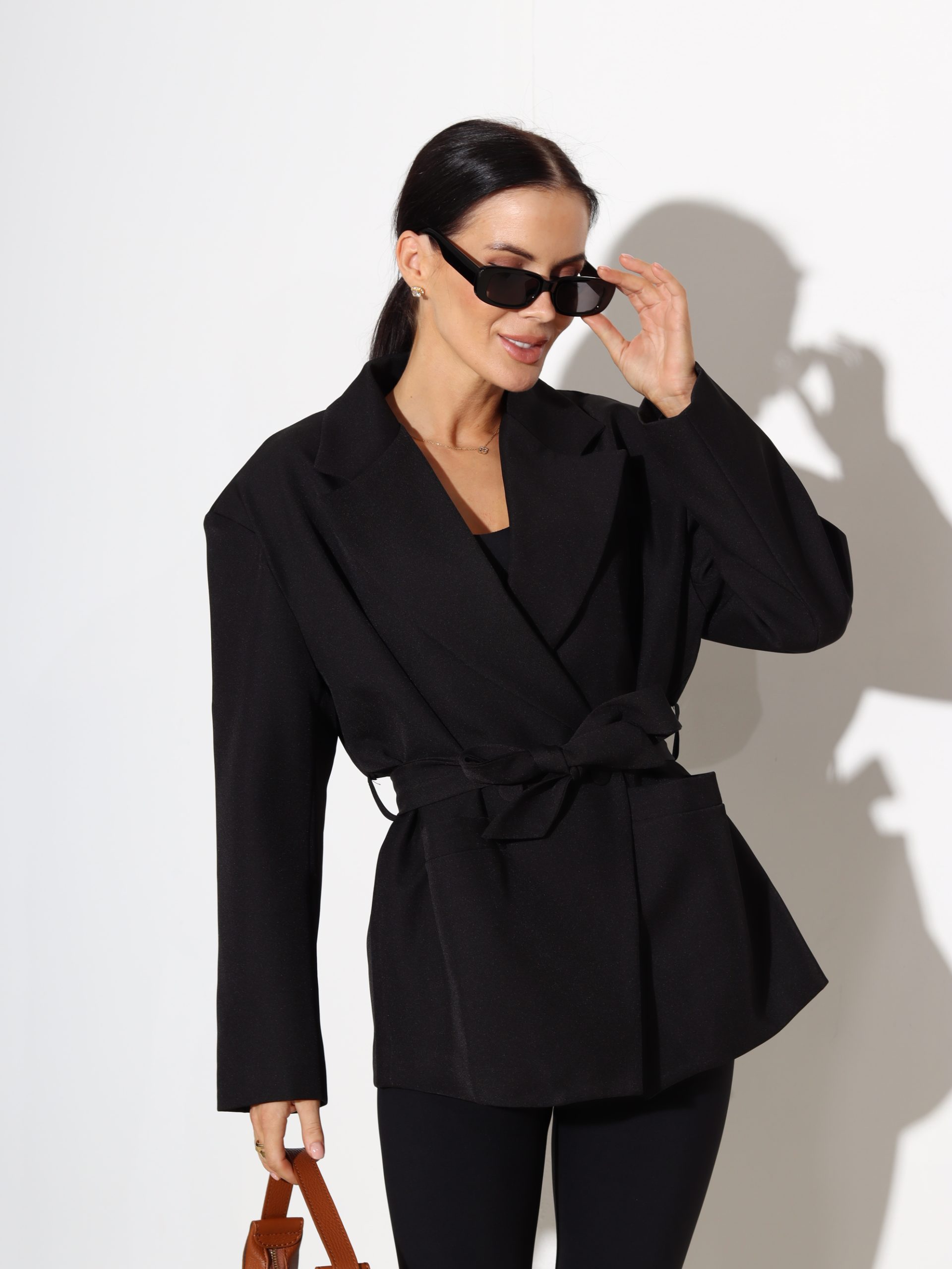 Melna žakete ar jostu – 17497