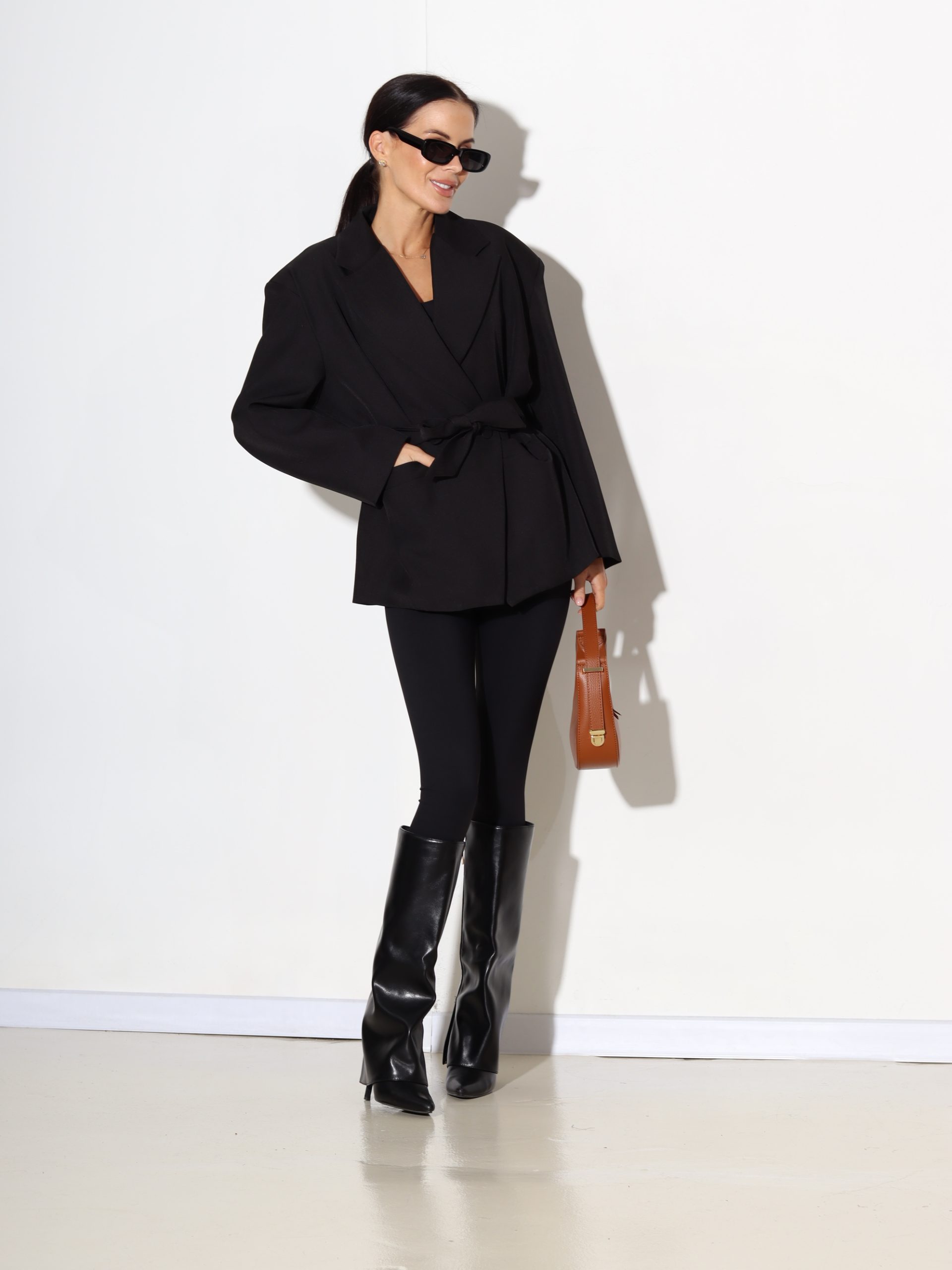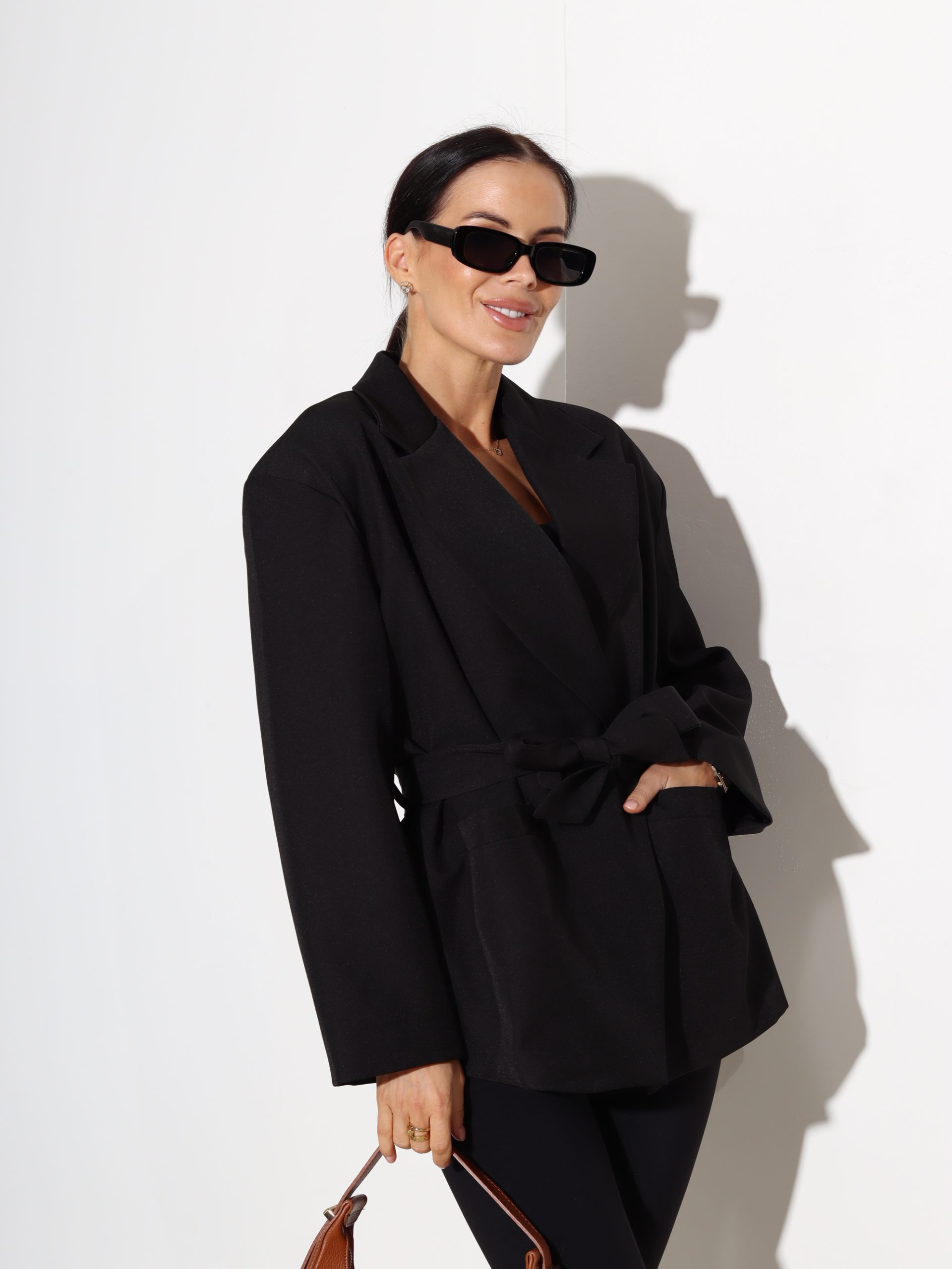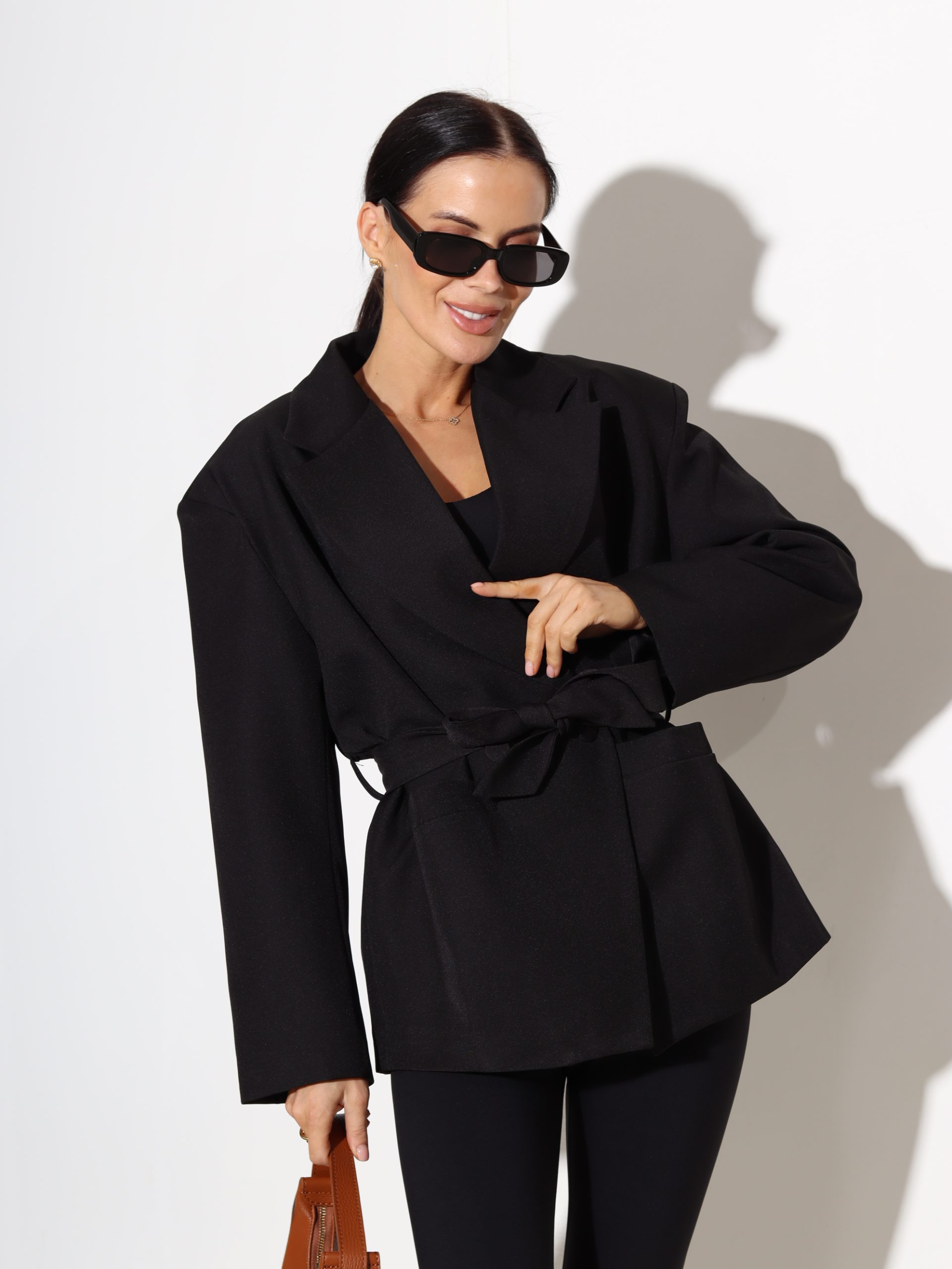 Melna žakete ar jostu – 17497