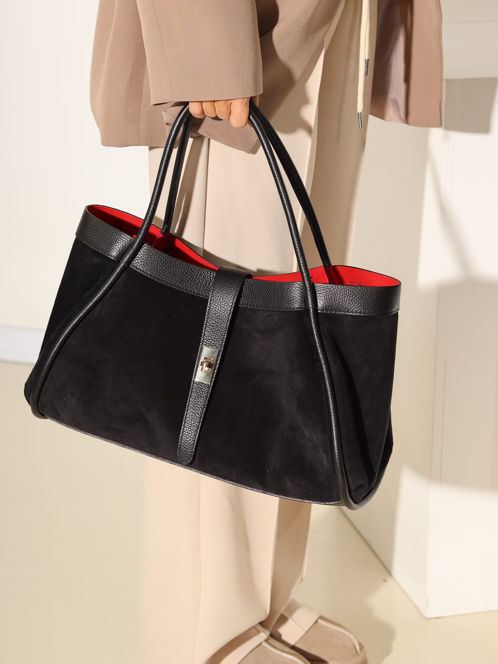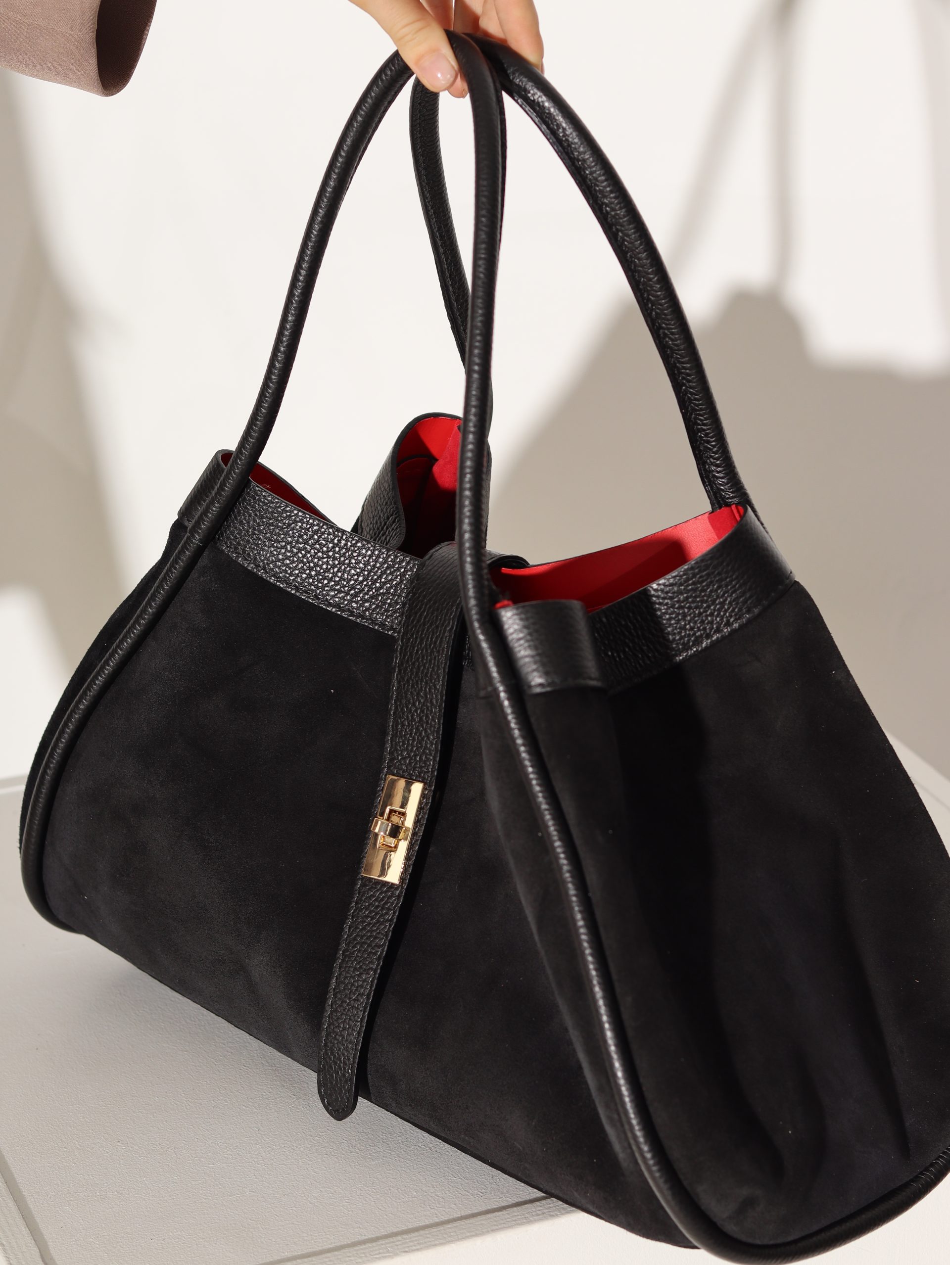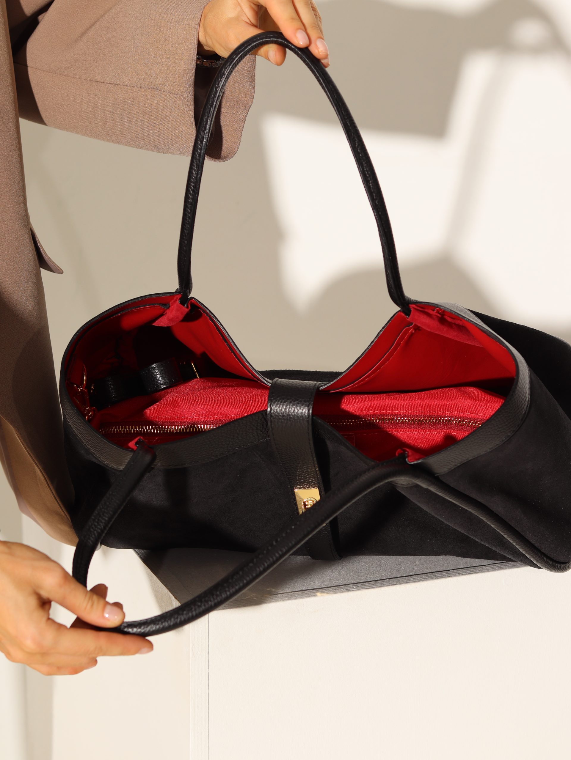 Melna zamšāda soma ar sarkanu iekšpusi – 16389